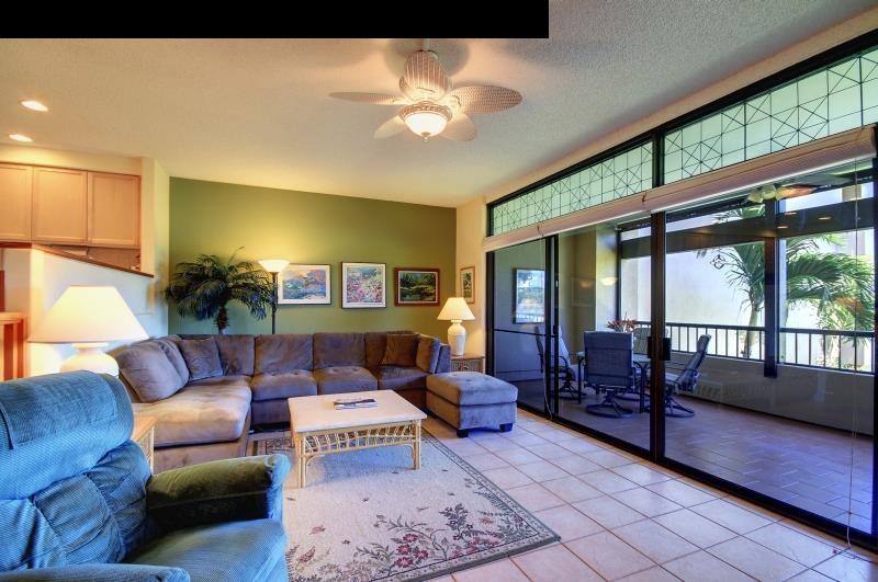 Kaanapali Royal E-201 fronts the Kaanapali golf course 16th. fairway and is in great condition. This spacious two bedroom, two bath features a remodeled open kitchen to the living & dining room. The floors are tiled for easy care. The big covered lanai features automatic screens for cooler afternoons and a gas BBQ. There are no stairs leading to the front door which makes for easy access. This gated community has a large swimming pool, spa, deck & BBQ area plus 2 tennis courts. Just a short walk to world famous Kaanapali Beach, Whalers Village with its fine shops & restaurants.