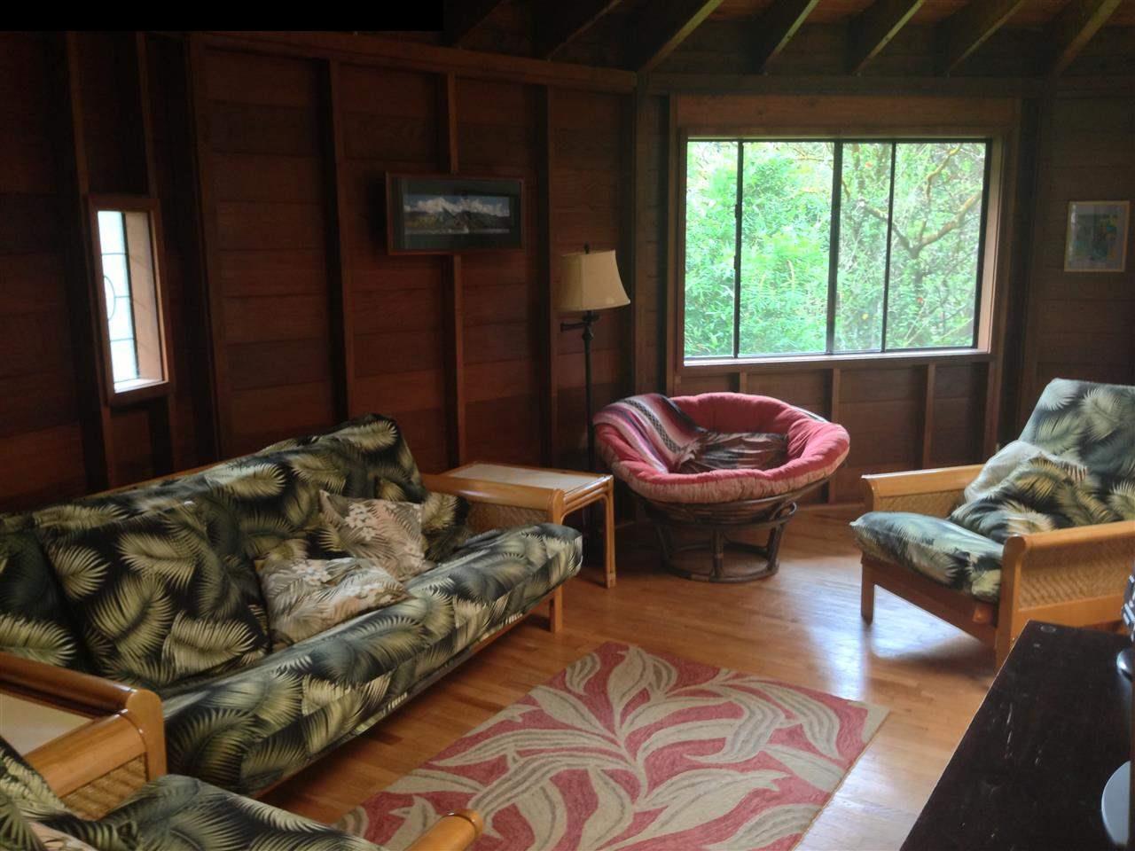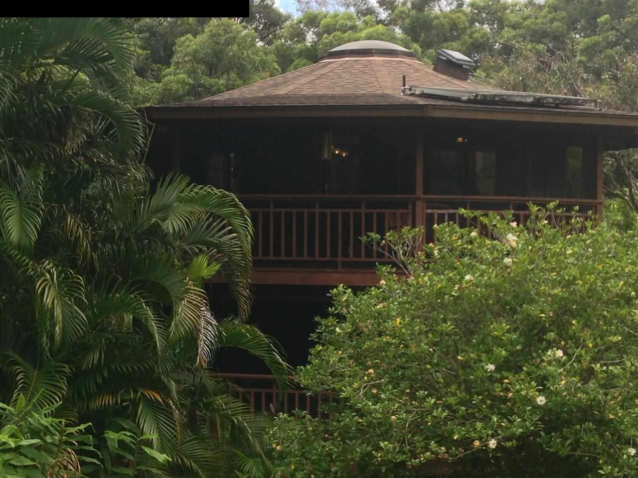 So lush and private lives like Hana without the drive. Very convenient to Makawao, Haiku and Paia. Approach this special property via a lovely, tree- canopied country road and experience the ultimate in rural tropical life style. The only sounds you will hear are the birds singing and the breezes wafting through the trees. This property is amazingly private. A beautiful, mostly level, fenced and cleared 2 acre lot with wonderful perimeter plantings lots of ornamentals, including the granddaddy of all gardenia bushes, plus lovely heliconias, gingers and hibiscus surround the homes. A huge grove of bananas and avocado and citrus trees offer ready fruit and there is plenty of room to add so much more. This special main dwelling a 2 level tree house provides beautiful greenery- filled jungle vistas from the many windows and spacious wrap around lanai on both levels. The 12 sided cedar and redwood home has 2 bedrooms on the first floor with a shared bath and the main space above with a second full bath. A huge skylight over the central core of the structure beams light throughout. A lovely little cottage with a wonderful lanai completes this property. Easy to show subject to occupancy.