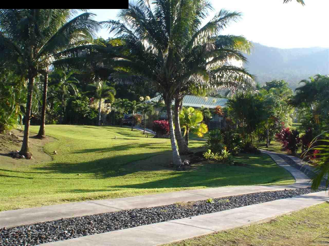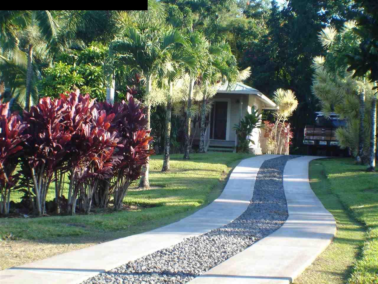 Beautifully crafted 2 bedroom / 2 bath house, w/den or extra room. Built with simple elegance. The front lanai spans the length of the house, with a hot tub on 1 end. This is a fantastic place to entertain or watch the Whales. 2 car detached garage, Separate small building serves as studio or guest room. 2 outdoor showers. A new concrete driveway goes all the way up to the house with a large concrete pad for parking. Situated on 2 well maintained, landscaped agricultural acres, with swaying palms and many fruit trees. Completely fenced. Ocean and mountain views in this quiet, safe neighborhood. Only minutes to Hana Town, world famous beaches and the Hana airport. Sold Turnkey, everything is included and of high quality. First home, second home or rental.