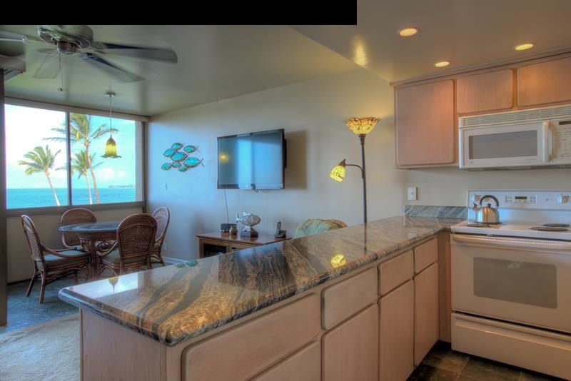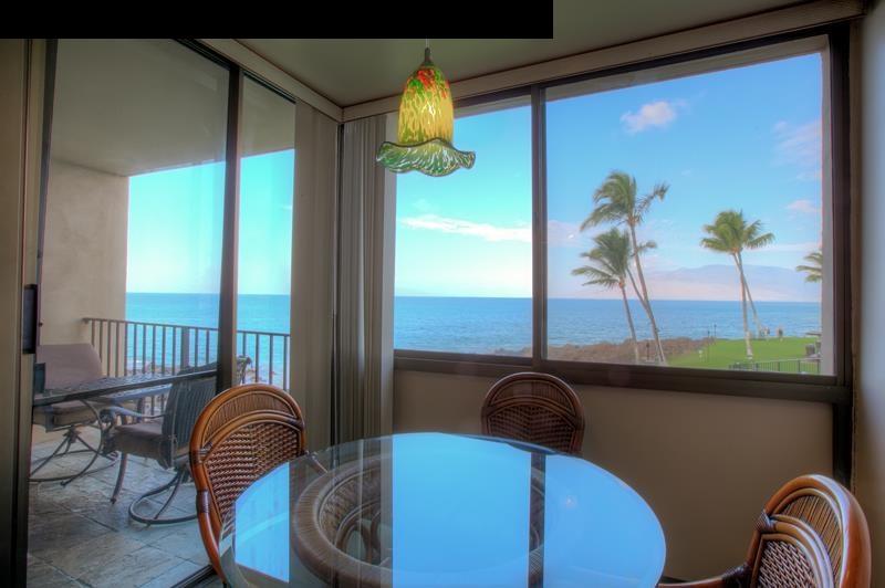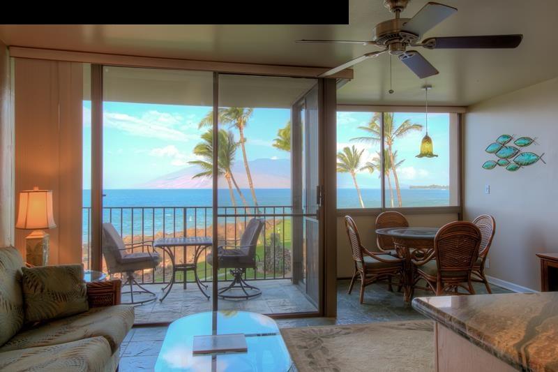 Fabulous OCEAN VIEWS and West Maui mountain views from this beautiful unit which "hangs over the ocean," located just feet from the picturesque shoreline. Units close to the ocean-end of the building are rarely available, and this presents a great opportunity to obtain one of the best-positioned units in the building. The outstanding ocean views from the living area, the kitchen, and the lanai, WILL BE FABULOUSLY ENHANCED BY THE UPCOMING BUILDING RENOVATIONS, WHICH WILL INCLUDE GLASS IN THE LOWER WALL, AND REPLACEMENT OF THE METAL RAILING WITH GLASS! This beautiful one-bedroom one-and-a-half bathroom unit is the largest one-bedroom floor plan available in the building. The Surfside is located only steps from Keawakapu Beach, widely considered the best beach in Maui! The Surfside is one of the most popular vacation rental destinations. Maintenance fees include electricity, phone, and internet!