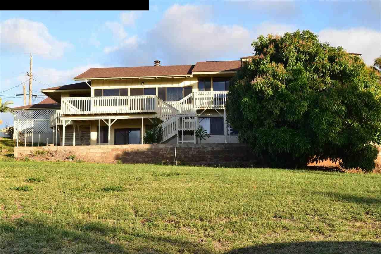 Custom built home on half acre. Spectacular view of West Maui Mountains and the ocean. Large living room with fire place. Finished basement for hobby room plus full bath and bar sink. Patio downstairs and deck upstairs to enjoy the view. Unfinished basement for workshop/storage. 3 Bedroom/2 bath upstairs. Additional bath in washroom in garage. Garage also had another room for storage.