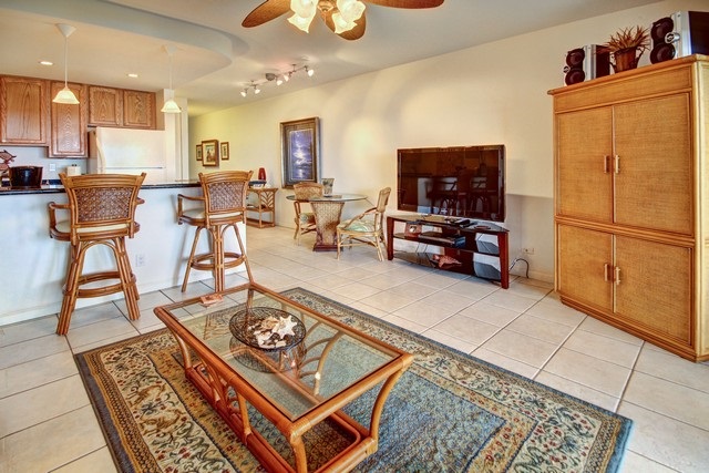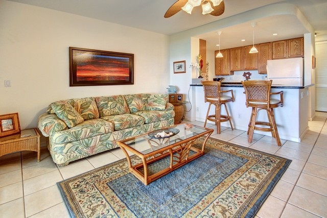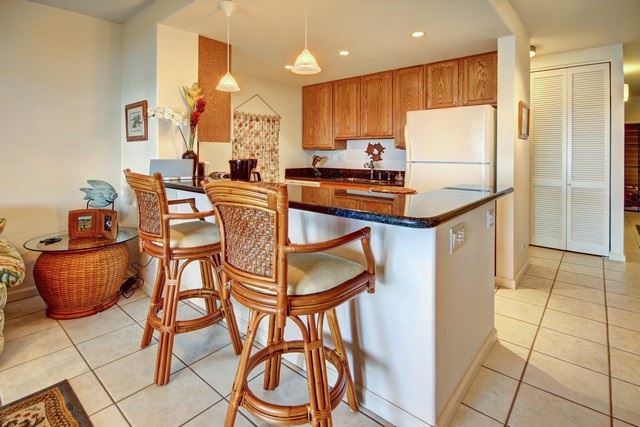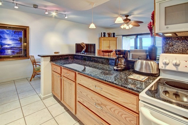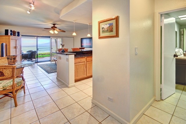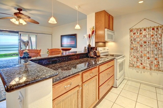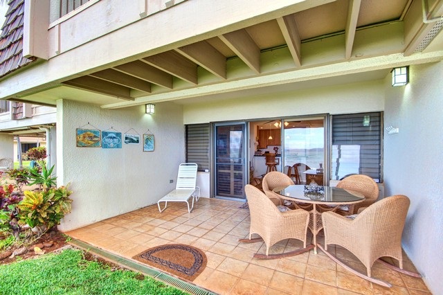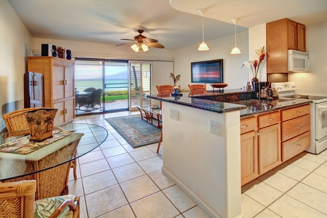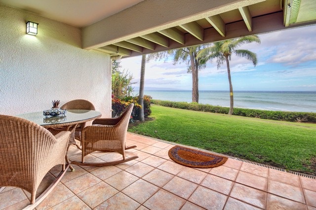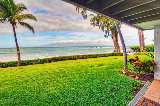 There are only 32 condominiums in this oceanfront resort making it a desirable choice for a residence or second home ownership. Unobstructed wide open ocean and neighbor island views from this upscale one bedroom, 1.5 bath unit. Step from your lanai on to a lush green lawn to access the oceanfront BBQ area and the water. Enjoy watching whale activity during their annual visit and amazing sea turtles frequenting the beach. Spectacular sunsets year round. This home is being offered fully and attractively furnished with the exception of a few selected art works. You will appreciate the spacious bedroom featuring large walk in closet and double sink on suite with shower. An additional bonus is a deeded parking space in the garage level as well as a spacious, personal walk in storage unit with ample space for all the beach chairs, coolers and extras. Please note the photo-voltaic is for the common area electric only.