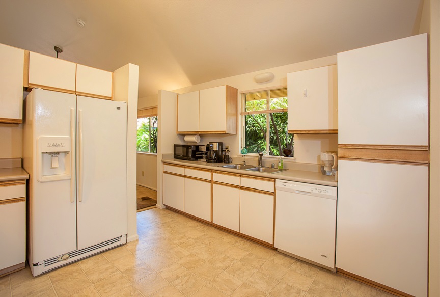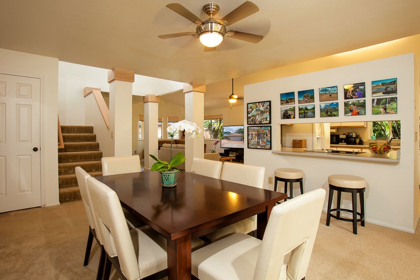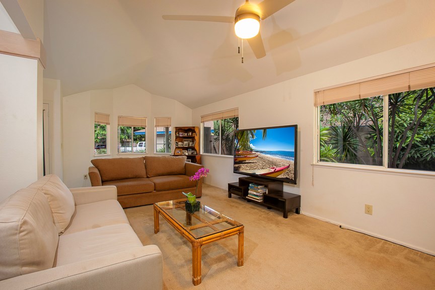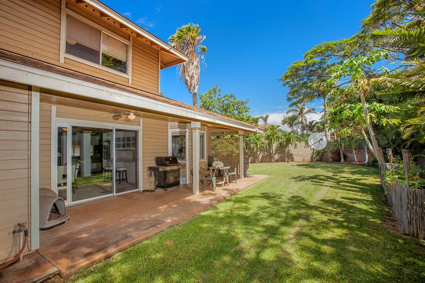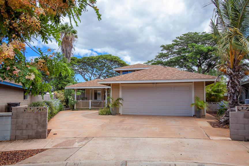 Welcome home to this spacious Kihei residence located on a cul-de-sac in the desirable Piilani Villages neighborhood. Great floor plan.. First floor has a living room, dining room, kitchen, three bedrooms, and a full bath. The entire second floor is a master suite with high ceilings, nice natural light, large closets, double vanity sinks and skylight. Other features of this home include a separate laundry room, two car garage, off street parking, split a/c units, solar water heater, front and back lanais. Recent upgrades include a new garage door, new stove and dishwasher, ceiling fans, newer flooring and interior paint throughout. Tropical yard and garden has an irrigation system in place and is fully fenced and gated, creating a very private setting. Piilani Village is a charming neighborhood with tree lined streets conveniently sitiauated in South Maui, near Piilani Shopping Village, Kihei Community Center & Pool and the white sands of Sugar Beach!