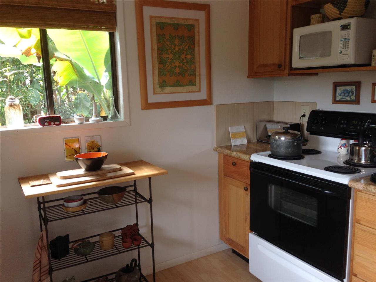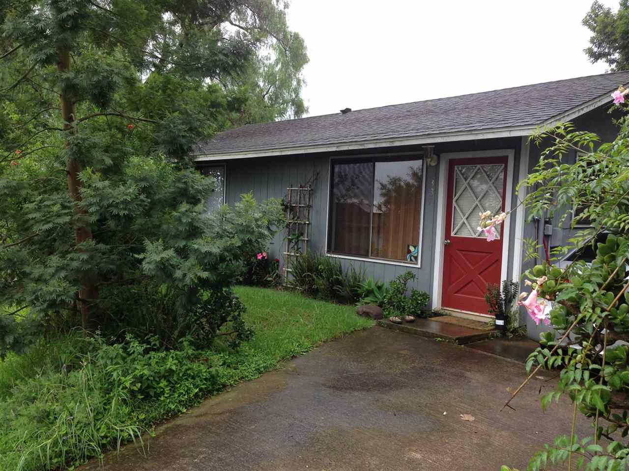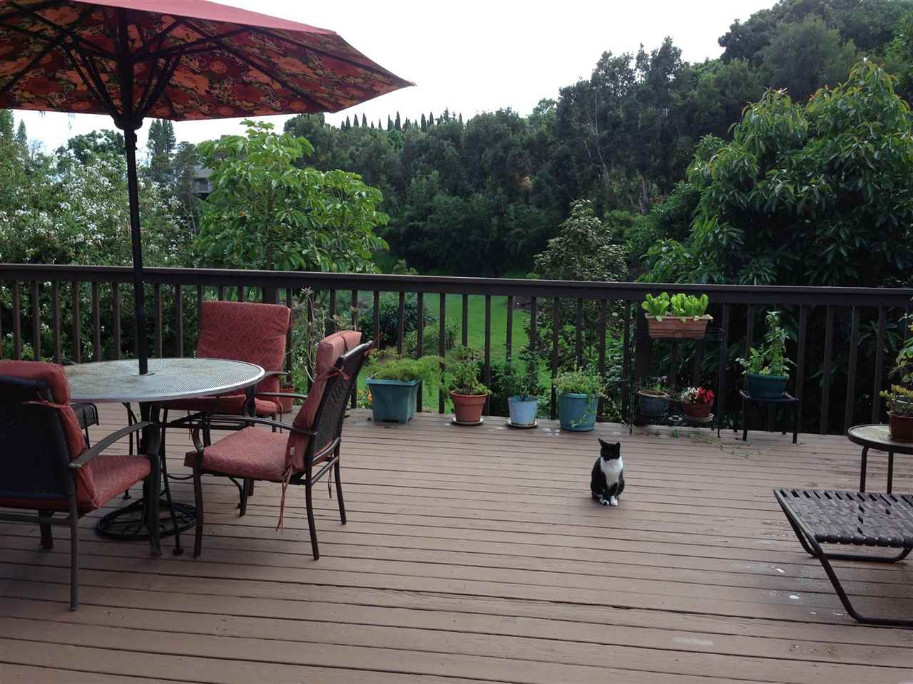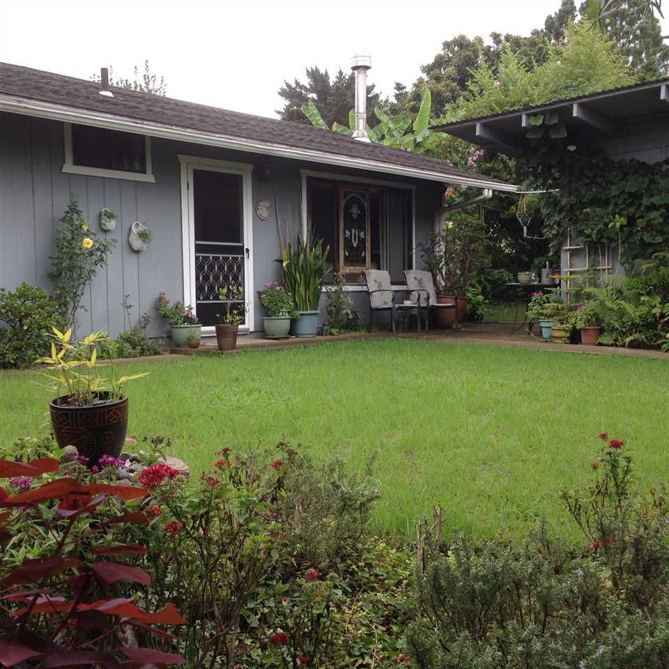 2 + bd, 1 ba house with 1 bd, 1 ba detached rental or in-law cottage (ohana) on 11,375 sq ft lot. $689,000 Beautiful front garden. Lots of light. Gigantic deck overlooking lush green gulch. Detached garage, storage shed. New kitchen counters, recently repaired and painted deck, new refrigerator and washer/dryer in ohana. Views of Maalaea Bay and Haleakala peak from front yard.