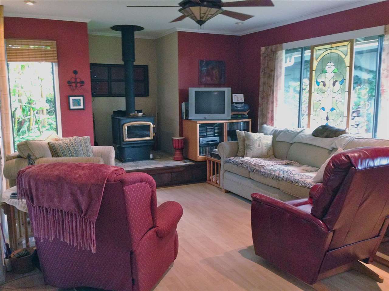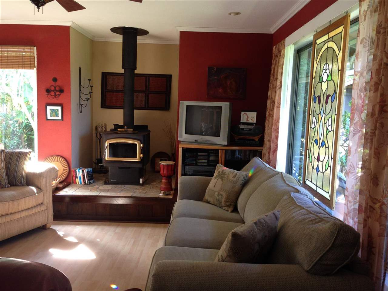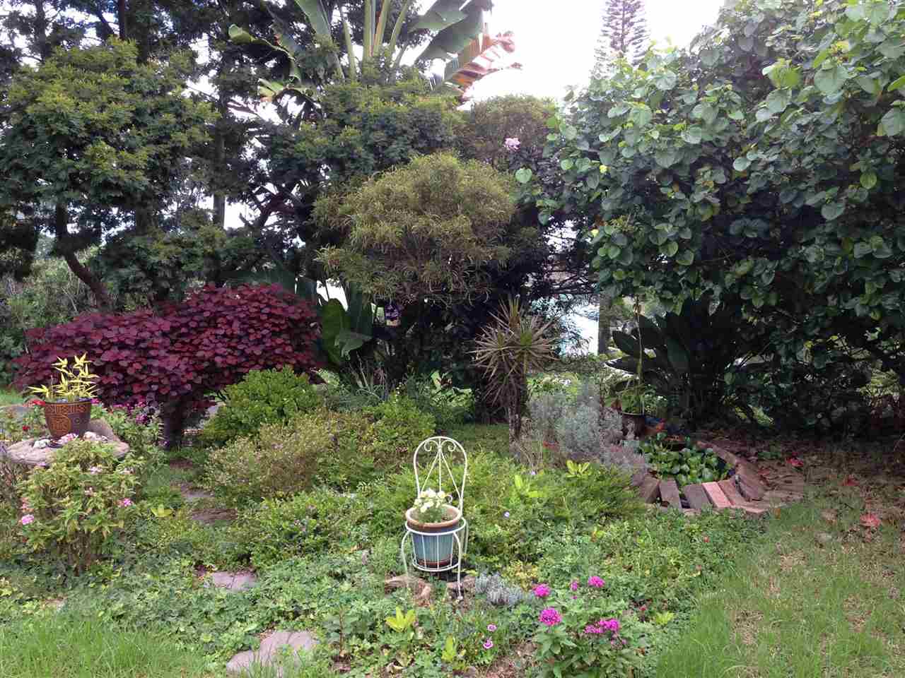 2 + bd, 1 ba house with 1 bd, 1 ba detached rental or in-law cottage (ohana) on 11,375 sq ft lot. $689,000 Beautiful front garden. Lots of light. Gigantic deck overlooking lush green gulch. Detached garage, storage shed. New kitchen counters, recently repaired and painted deck, new refrigerator and washer/dryer in ohana. Views of Maalaea Bay and Haleakala peak from front yard.