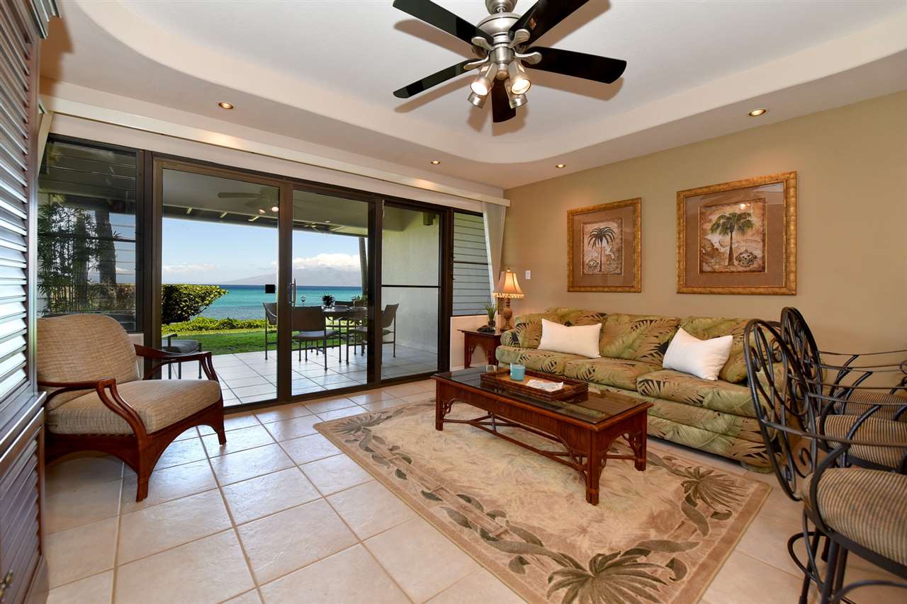 Imagine Maui. Relax to the sights and sounds of oceanfront living in this renovated condo. The owners chose this location in the building for the spectacular views and casual oceanfront lifestyle. Mahinahina Beach Resort is a pet friendly residential community of only 32 units conveniently located in Kahana close to sandy beaches, shopping, and restaurants. Amenities include covered parking, security gates, private pool and spa, BBQ area, lush tropical gardens, easy ocean access for snorkeling with the turtles , kayaking, and paddle boarding. Deeded secure storage units and larger storage for bicycles and surfboards are another added bonus. Make Maui your home.!