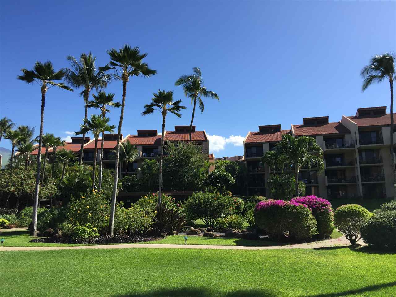 Located across the street from World Famous Kamaole Beach Park III. Enjoy beautiful ocean views and stunning sunsets from your private lanai. Surrounded by lush tropical landscaping, this condo has two spacious bedrooms, two baths and feautres an oak spiral staircase. Has been renovated and tastefully furnished and is being offered turnkey. Condo is situated on the north side of complex with less density and close to visitor parking spaces. TWO deeded parking stalls are included and the seller has already paid in full the special elevator assessment. Fantastic South Kihei location, close to restaurants, shops, Wailea and parks. Kamaole Sands amenities include, pool, Jacuzzi, tennis courts, BBQ's, cafe, fitness center, clubhouse and a designated car wash area. Interior photos to follow.