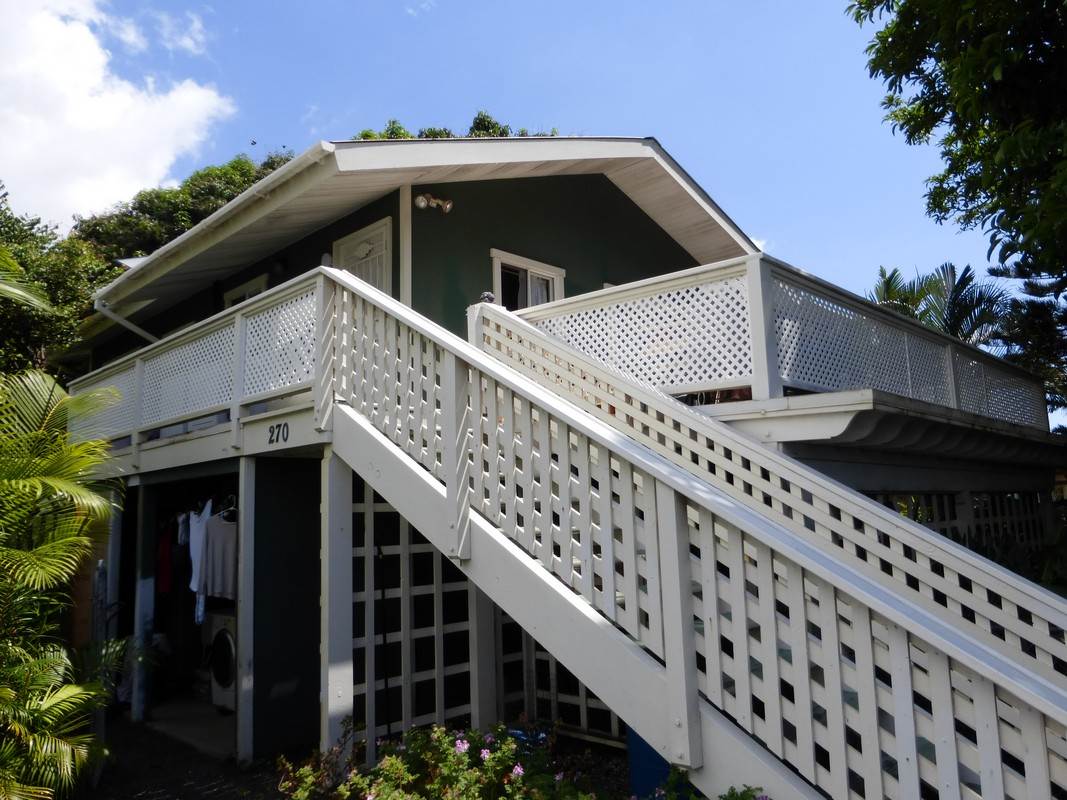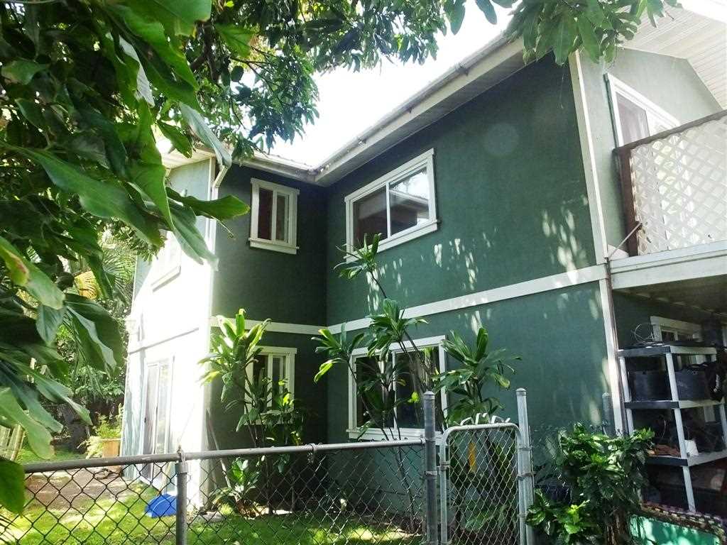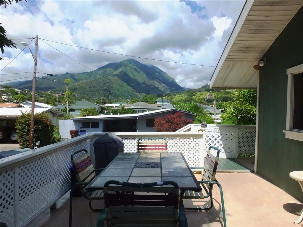 Special opportunity in Wailuku. A total of 1,340 sf of interior living area, 4 beds, 2 full baths, 2 half baths split among two floors in this property. Upstairs includes 2 bedrooms, 1.5 bathrooms, a den/study, cathedral ceilings and a large 375 sf lanai with stunning mountain views. The downstairs offers 2 beds/1.5 baths and a covered lanai, as well as fenced-in yard. Many kinds of trees, including mango, avocado, lemon, lime, ti leaf, banana, plumeria, gardenia, areca palm and more. New solar water heater in 2015. This is 1 unit of a two-unit CPR called Iao Condominium 3, with no maintenance fees.