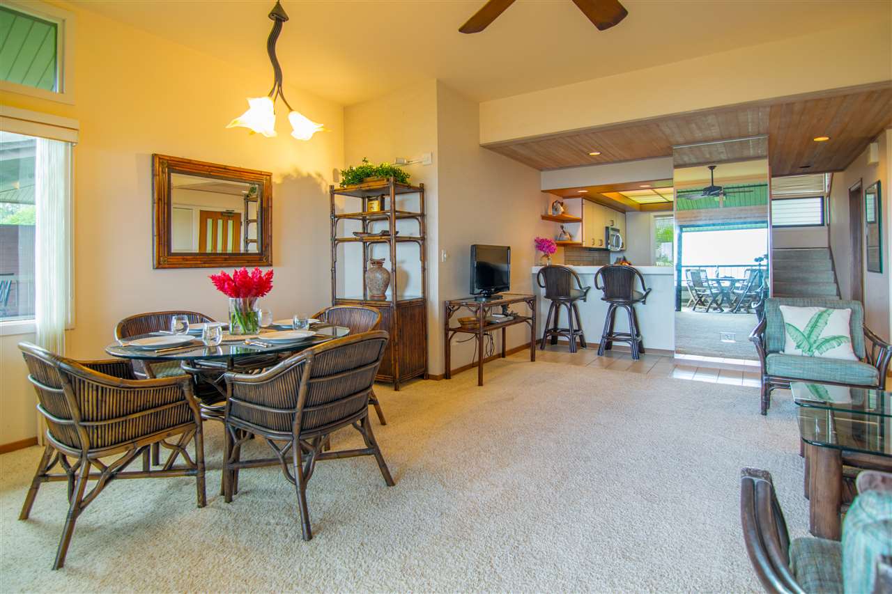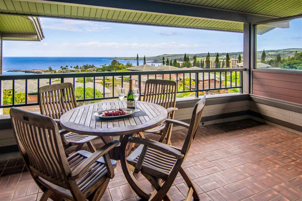 Rarely available, this is a highly desirable townhouse floor plan. Perched overlooking the blue waters of the Pacific Ocean, the location also has sweeping views of the Plantation Course and the Kapalua Resort. Downstairs is a spacious lanai, the living room, kitchen, and bathroom, while upstairs is a private lanai, bedroom, laundry and master bath. Offered furnished and turn-key, the Ridge 1623 is located in the heart of the Kapalua Resort, and is close to restaurants, spa/fitness, beaches, golf and tennis.