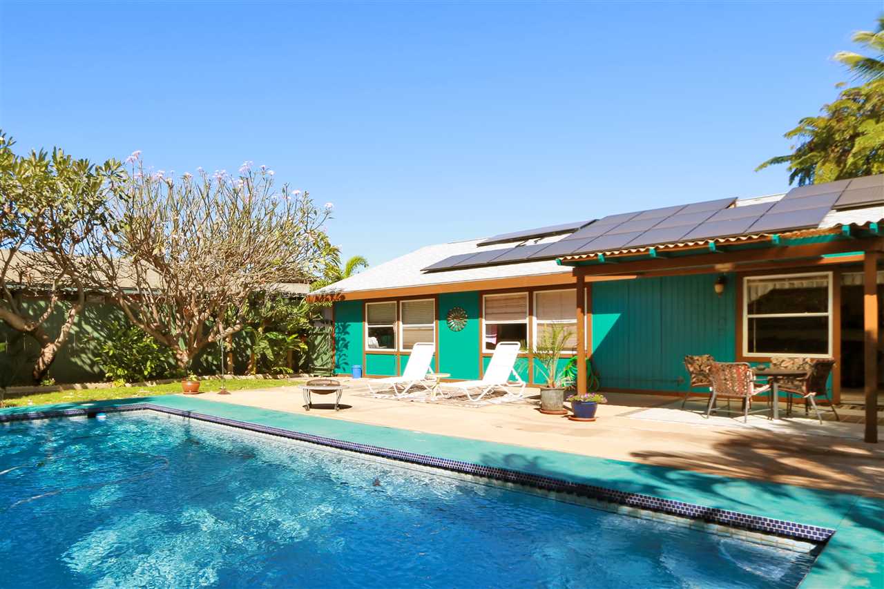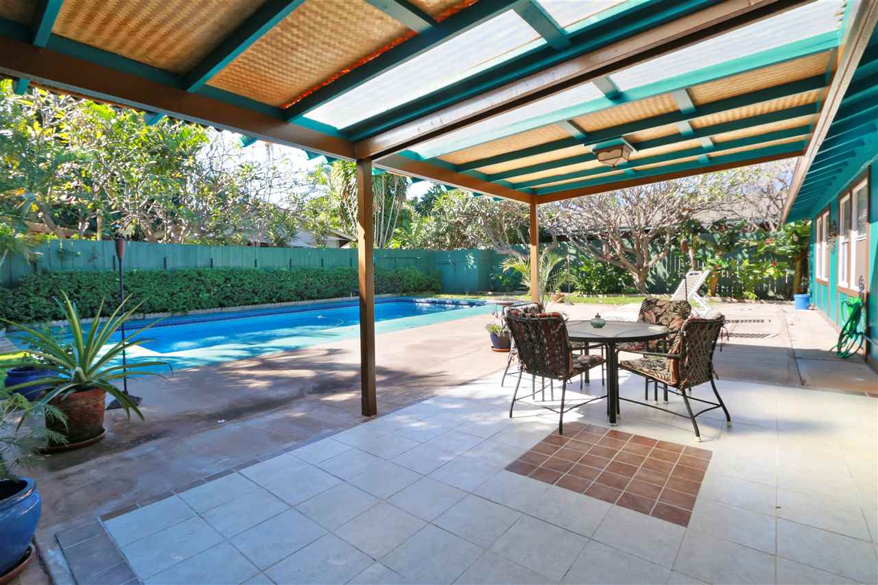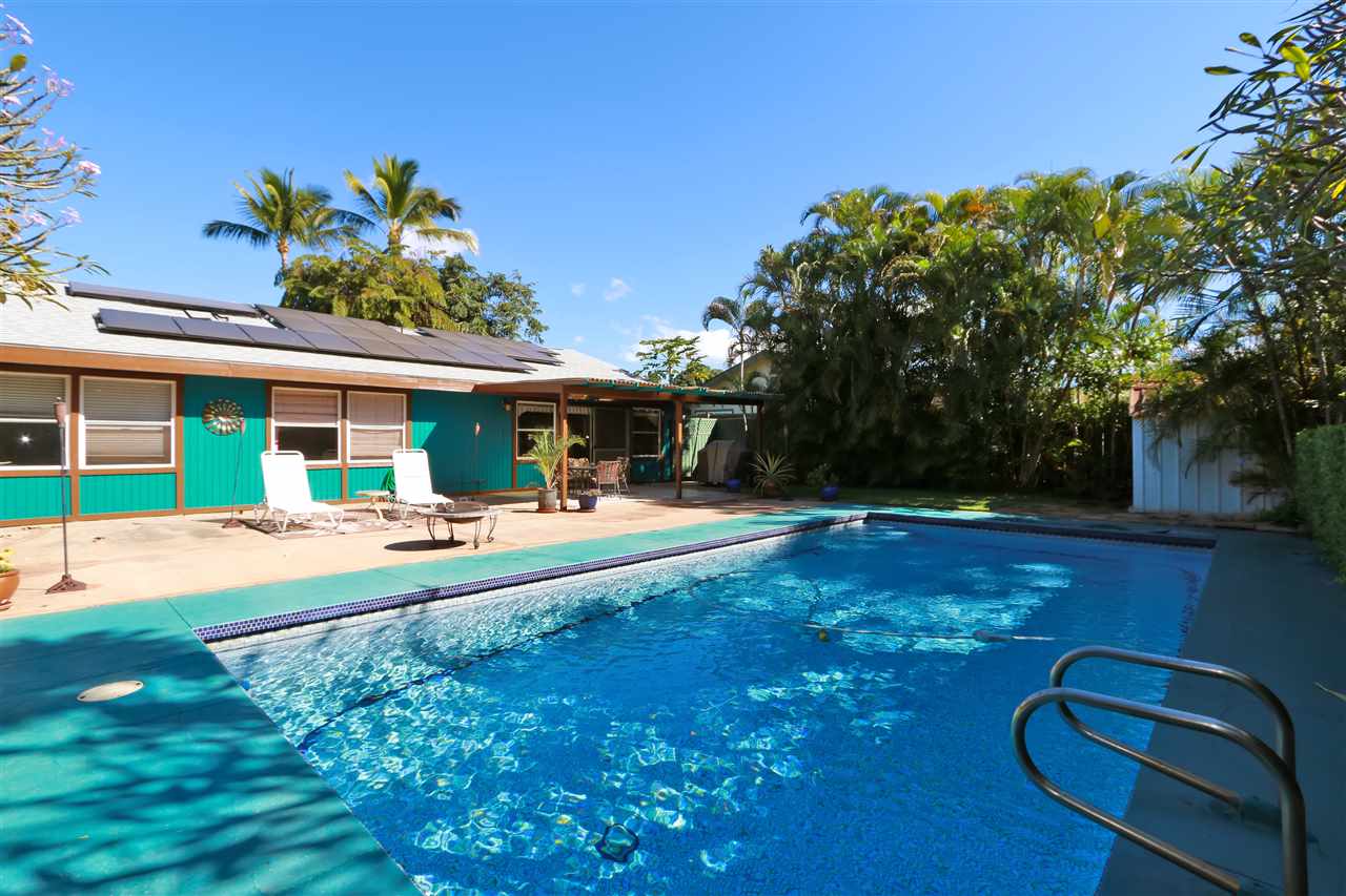 You'll love this freshly painted ranch style home with a sparkling pool on a quiet cul-de-sac, just a short walk from The Cove Beach Park, Kalama and Lipoa Parks, a neighborhood grocery store, shopping and restaurants. Enjoy your homegrown bananas, papayas, mangoes and figs – just pick them off the trees in your back yard! Plus, a new roof was installed in 2014; new central AC in 2014; new garage door and automatic door opener; three new windows to replace the old jalousie windows; new water efficient toilets; new insulation in the attic and a solar attic fan; new bamboo privacy fence in front yard, new pool filter and pump, and new paint inside and out. Plus, stay cool under your newly roofed lanai with bamboo matted ceiling and tile floor. 18 years remaining on 20 year leased solar PV system that covers most of the bill, even with central AC, in-ground pool and an electric car! The full term of the lease has been pre-paid!