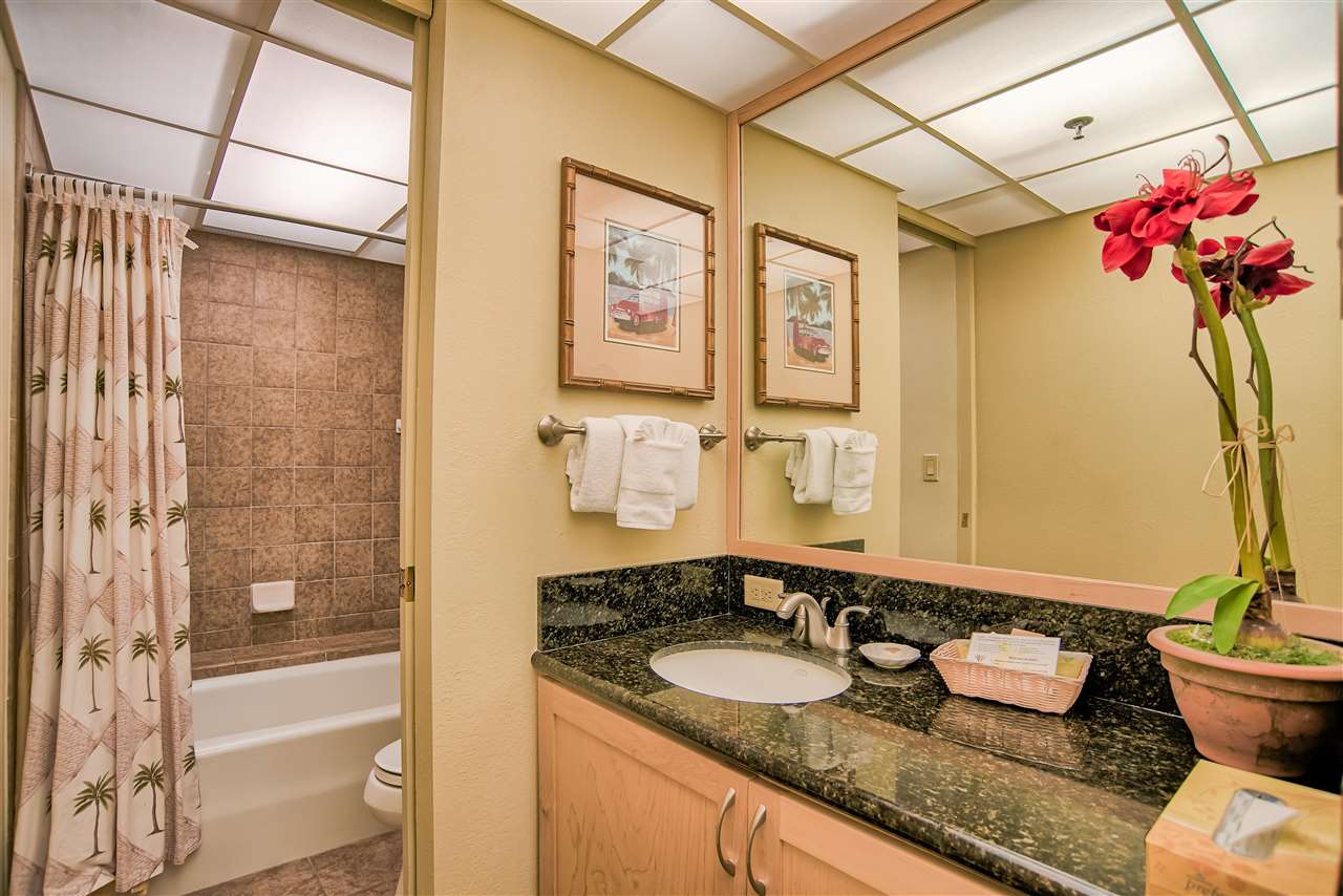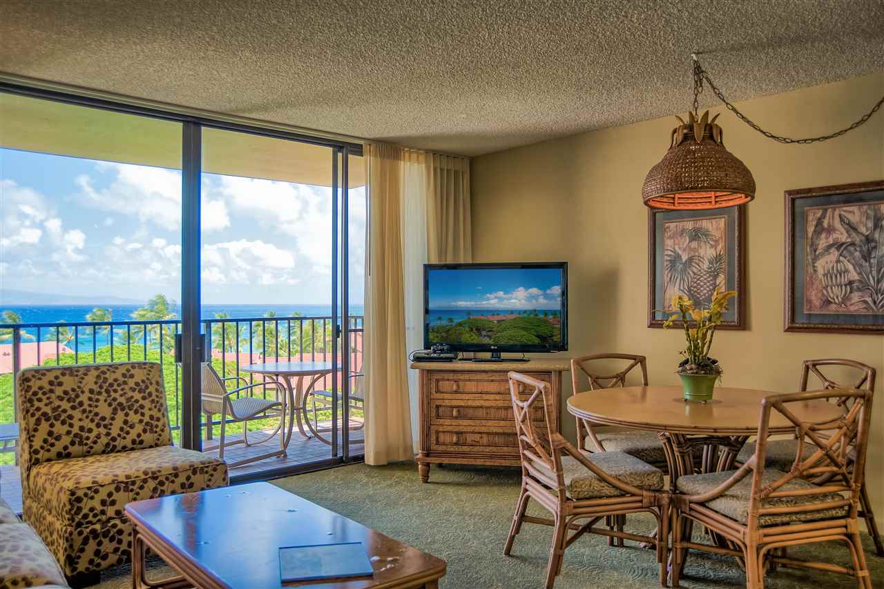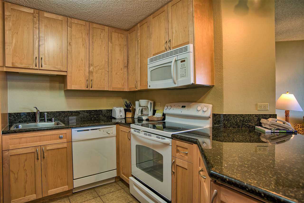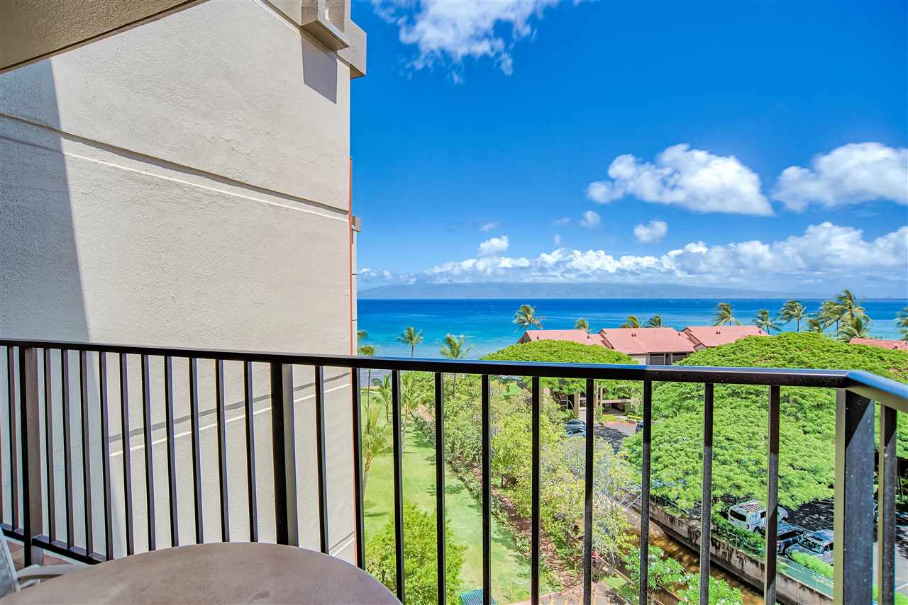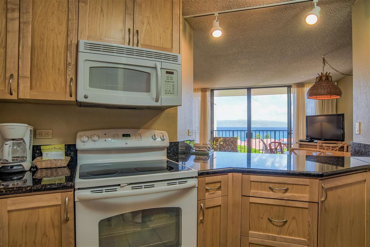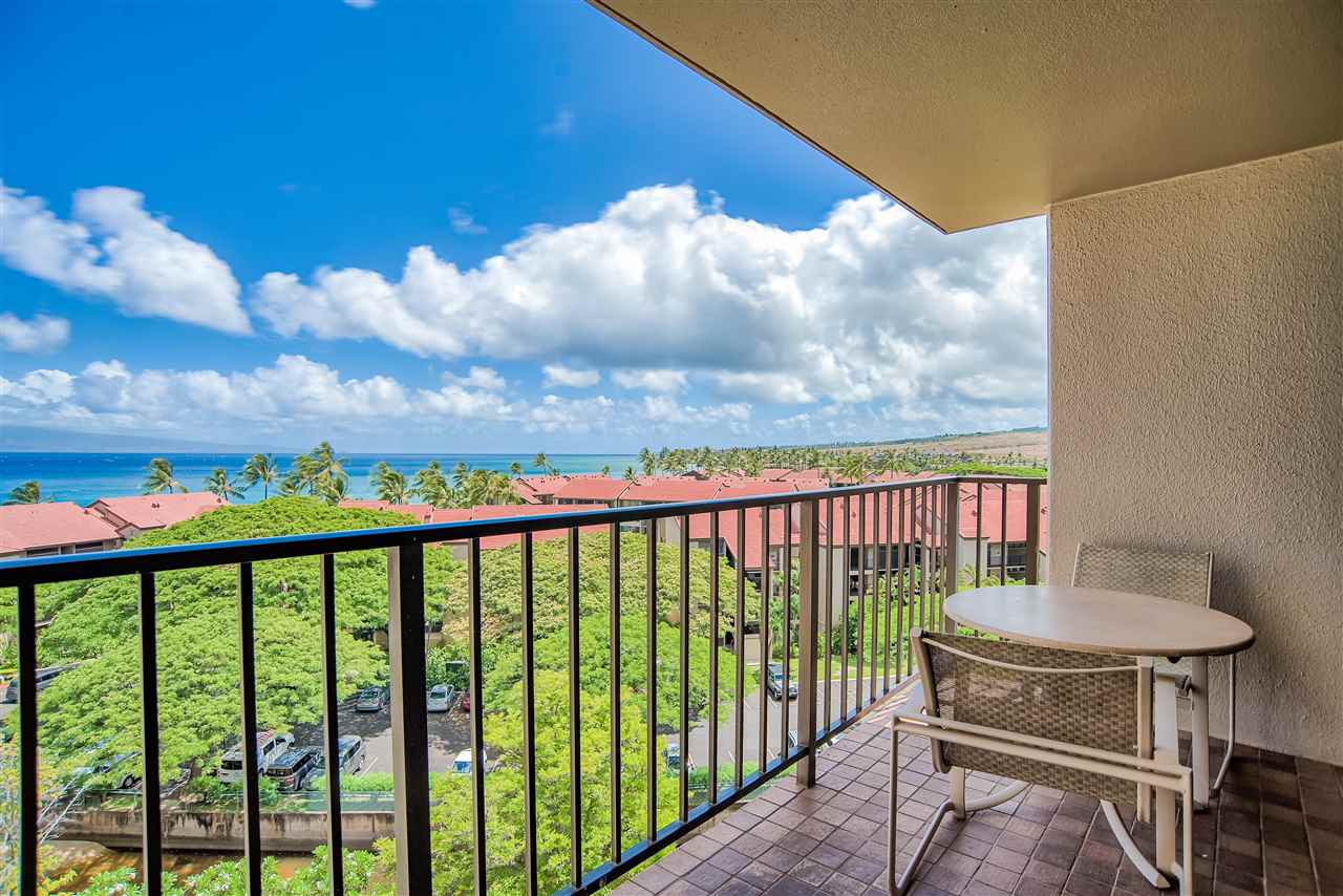 The sweeping ocean views from the quiet side of Kaanapali Shores are perhaps the first thing to grab your attention as you step into this stunning 2 bedroom 8th floor condominium. And thats just the beginning. Kaanapali Shores 816 actually has not one, but three ocean views. You can lounge on the living room lanai and watch whales in the winter. The view takes in the length of Molokai and stretches along Mauis west side shoreline to the treetops at Kapalua. The guest room has 2 twin beds and a window almost as wide as the room. You can lay in bed and look out at the ocean. The master suite is huge. There is a king size bed with plenty of room for a comfortable reading area. It also has a unique little, very private, lanai that offers those same stunning views, but from the privacy of your suite. The owners lovingly renovated this beautiful hideaway just a few short years ago. The kitchen has all newer appliances, custom made cabinets and dark granite with a black background and flecks of chocolate coloring that create a striking contrast to the light cabinets.