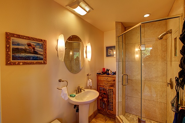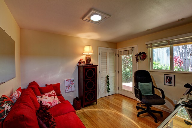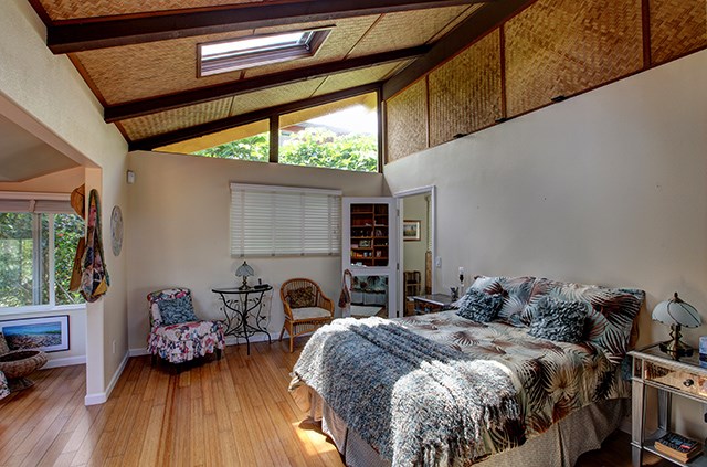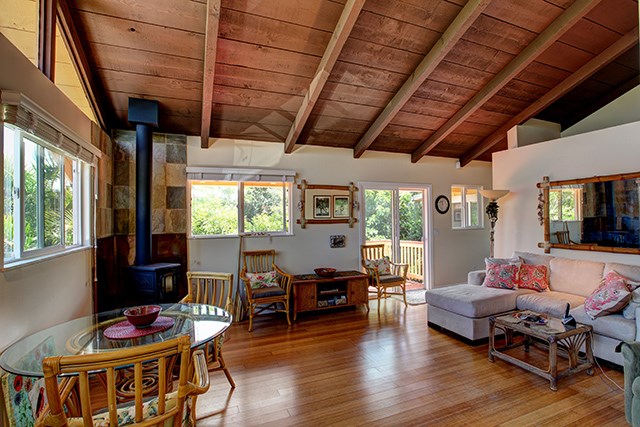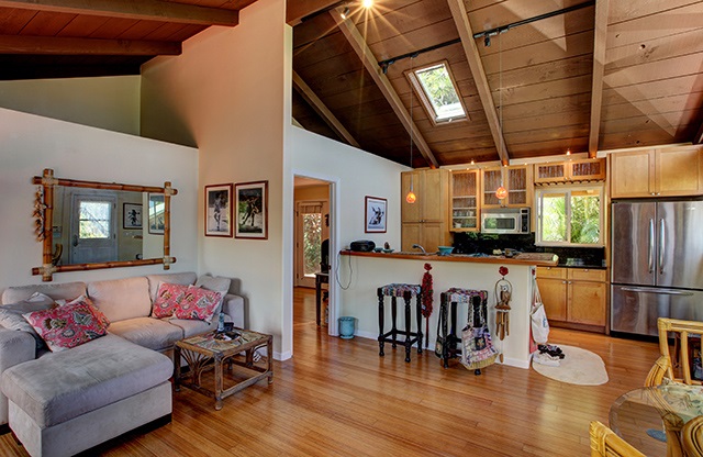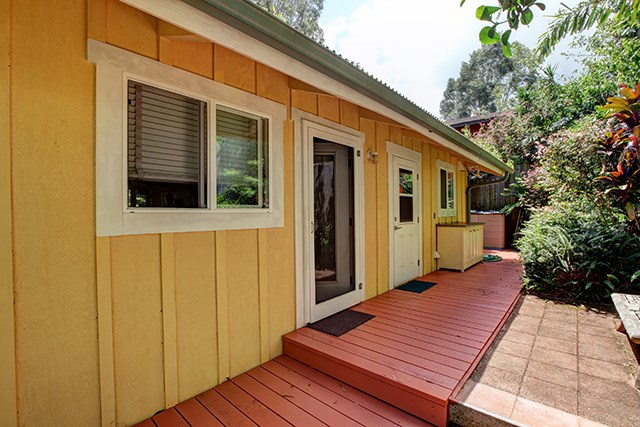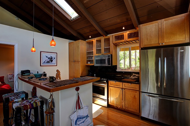 Tucked away, this beautiful totally remodeled 2 bed 2 bath home sits right in Town of Makawao. Bamboo flooring provides a warm feel and the wood burning stove is cozy during colder winter months. The kitchen boasts maple cabinets, granite counters and backsplash, high-end appliances including Fisher Paykel two drawer dishwasher and slide-in stove/range. Custom bar made of mahogany wood, perfect for entertaining. The master bedroom was extended by enclosing the former lanai, creating a relaxing sitting area; built-in mahogany bookcases, large walk-in closet, adjoining laundry room, attic storage above. Master Bathroom with marble floors, soaking tub, and walk in shower. Guest bath with custom made Mango cabinet, marble, walk-in shower. Decks and outside areas for entertaining and enjoying Upcountry living.Also for sale unit D ~ MLS 370578 ~Seller holds inactive Real Estate Brokers license in the State of Hawaii