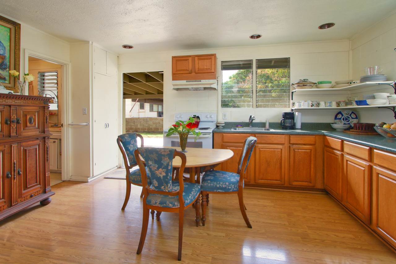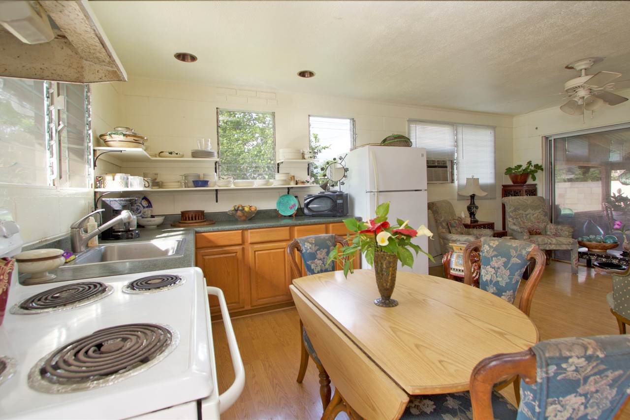 410 Kahiki is truly a must see property with so much to offer. Multigenerational family compound or great prospect for the savvy investor! Main home has been divided into 2 separate living spaces. Each with their own private entrances! A 3 Bedroom/1Bath house and a 1Bedroom/1Bath attached division. The detached ohana is a 2 Bedroom/1Bath cottage with a screened in outside lanai. From the moment you step foot on this property, you will immediately notice the pride of ownership. Mature fruit trees, great separation of space, lots of off street parking, and the nostalgic feeling of old Hawaii. Recent owner upgrades include a new roof, a new water heater, a gorgeous walk in shower, a new range, a new dishwasher, and 2 sheds with abundant storage! The indoor/outdoor living arrangement also makes 410 Kahiki the perfect place for entertaining your friends and family. Located on a well-established street in a good neighborhood, this property is very convenient to Central Mauis medical facilities, professional offices, schools, and shopping. With inventory this low in Kahului, you do not want to miss out on this opportunity!