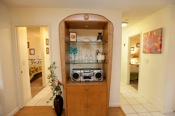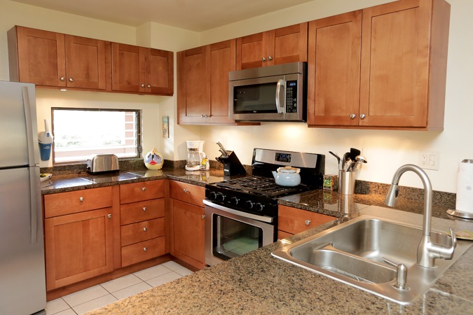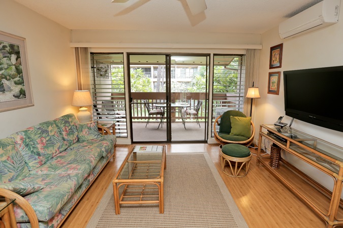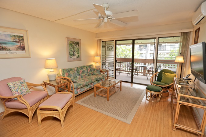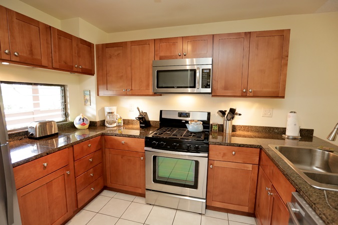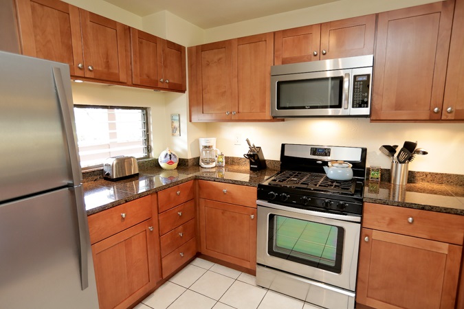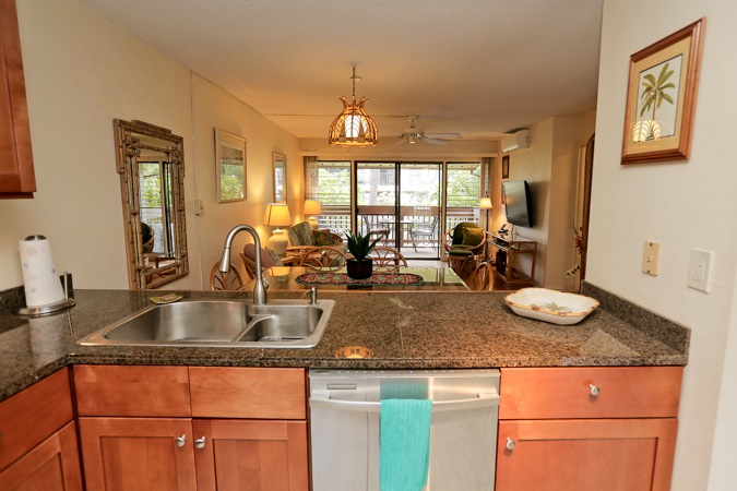 Kihei Akahi B-203 is where your great Maui life-long vacation begins! Located upstairs in the intimate Hale Mauna Loa Building (ten units on two floors), you will have a leisurely 500' stroll to Kamaole Beach Park II, one of Maui's best beaches, known for exceptional swimming, snorkeling & sunsets! This beautifully renovated walk-up unit is the perfect location in the ideal building in the complex: close to the beach, pool, gas grills, and parking, yet not in the monolithic C- & D-towers. The fully equipped kitchen offers clean Shaker-style cabinetry, granite-tile counters & quality stainless-steel appliances (yes, a gas range-chef's delight!) Recent improvements include a new high-capacity stacked washer/dryer, new bedroom carpeting. Prevailing trade winds offer gentle breezes nearly year-round; the new split-system air conditioner in the living room & master bedroom ensure comfort for all. The ample lanai overlooks a lush tropical garden and will be your go-to place for cocktails, meals, curling up with a good book or simply daydreaming in our balmy Maui climate. Beautifully landscaped with mature flowering trees & tropical plants, Kihei Akahi's grounds provide cool tranquility; amenities are nearby & plentiful, with lots of shops & restaurants within walking distance. Priced to sell, your Maui home awaits!