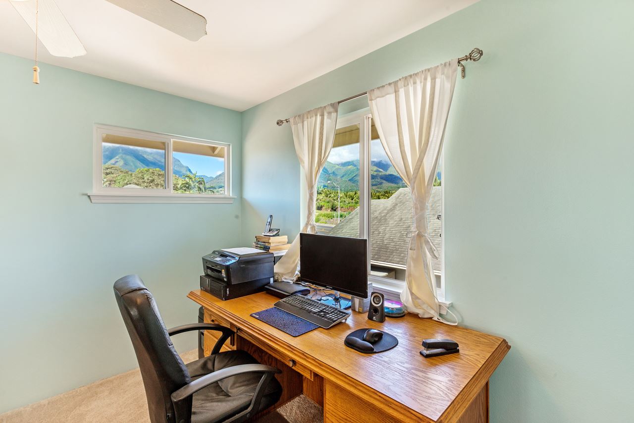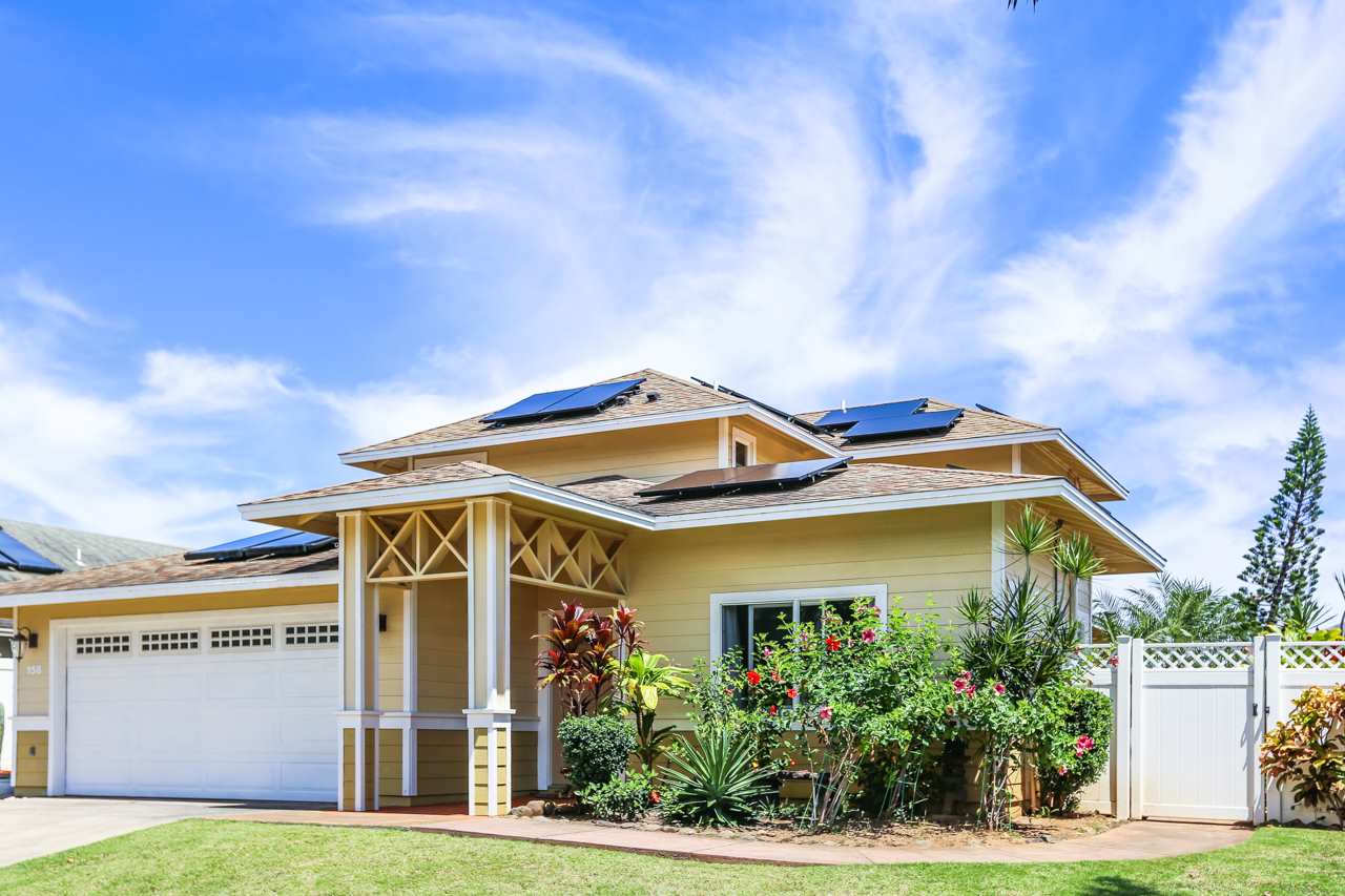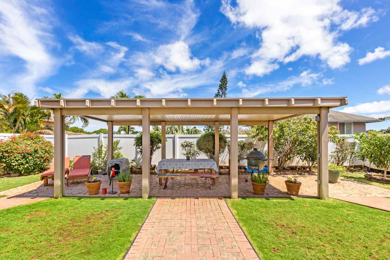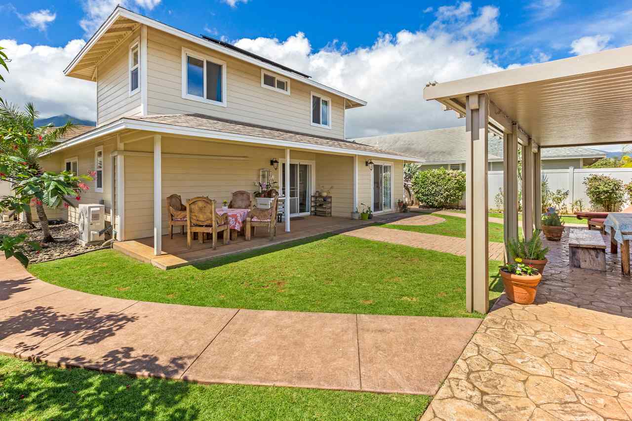 This immaculate 4 bedroom, 2.5 bath home is a delight! You will enjoy the location: close to everything in Central Maui yet quiet with views of the West Maui Mountains, Haleakala, and even the ocean from 2 of the bedrooms upstairs. Being one of the few larger 2 story homes of the neighborhood, it has the Master Bedroom Suite downstairs and the other 3 bedrooms upstairs. Low electricity bills result from 14 owned PV panels with net metering agreement and solar water heating (both done in 2015). Also in 2015, 3 split level AC systems were professionally installed to keep you comfortable: in the kitchen/dining area, the living room, and the master bedroom. And what a joy are the newly (2016) and beautifully remodeled bathrooms and kitchen! Washer and Dryer are in the garage and the property has vinyl fencing in place. The low maintenance backyard features a detached, permitted, covered, large (325sf) patio – great for entertaining or simply relaxing – 2 storage sheds, a mango and a lime tree as well as mature flowering hedges. Low HOA dues are $65/month. There is a small park in the neighborhood. If you are looking for a comfortable home in the central area that may bring you lots of joy, this property is a must see.