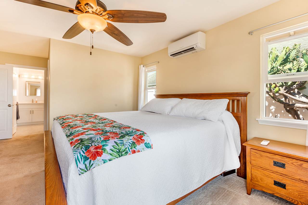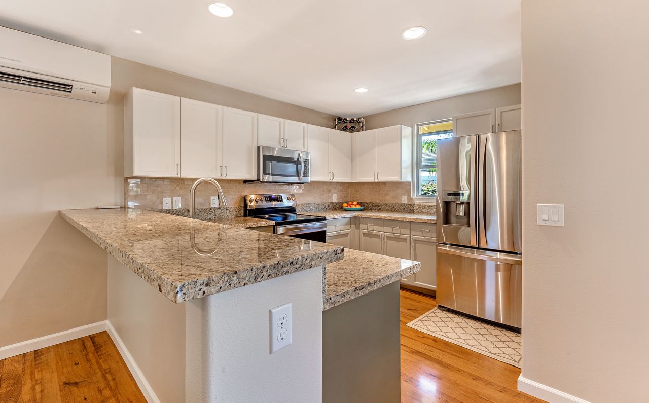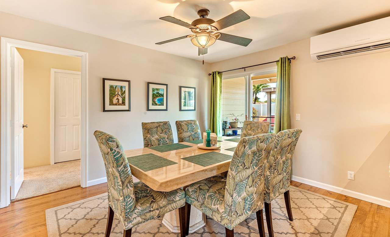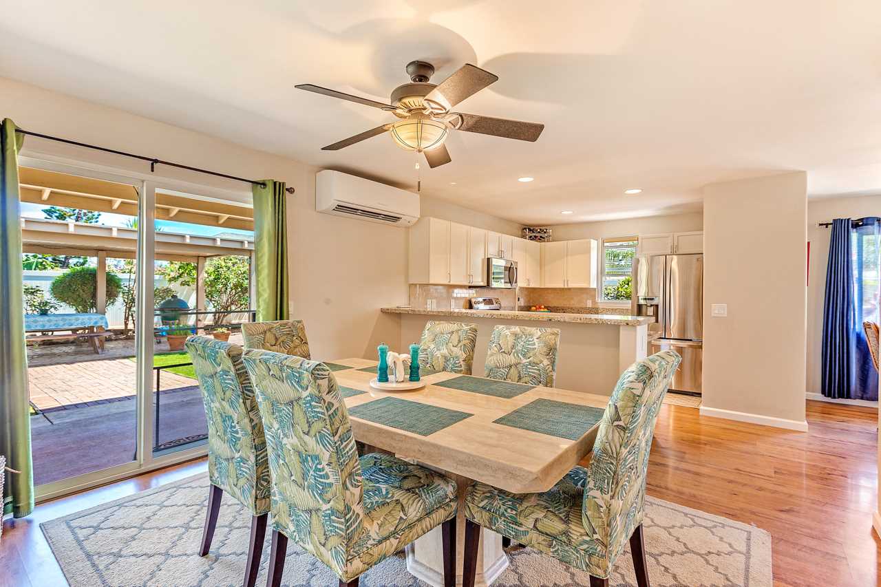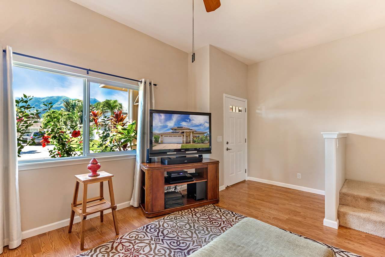 This immaculate 4 bedroom, 2.5 bath home is a delight! You will enjoy the location: close to everything in Central Maui yet quiet with views of the West Maui Mountains, Haleakala, and even the ocean from 2 of the bedrooms upstairs. Being one of the few larger 2 story homes of the neighborhood, it has the Master Bedroom Suite downstairs and the other 3 bedrooms upstairs. Low electricity bills result from 14 owned PV panels with net metering agreement and solar water heating (both done in 2015). Also in 2015, 3 split level AC systems were professionally installed to keep you comfortable: in the kitchen/dining area, the living room, and the master bedroom. And what a joy are the newly (2016) and beautifully remodeled bathrooms and kitchen! Washer and Dryer are in the garage and the property has vinyl fencing in place. The low maintenance backyard features a detached, permitted, covered, large (325sf) patio – great for entertaining or simply relaxing – 2 storage sheds, a mango and a lime tree as well as mature flowering hedges. Low HOA dues are $65/month. There is a small park in the neighborhood. If you are looking for a comfortable home in the central area that may bring you lots of joy, this property is a must see.
