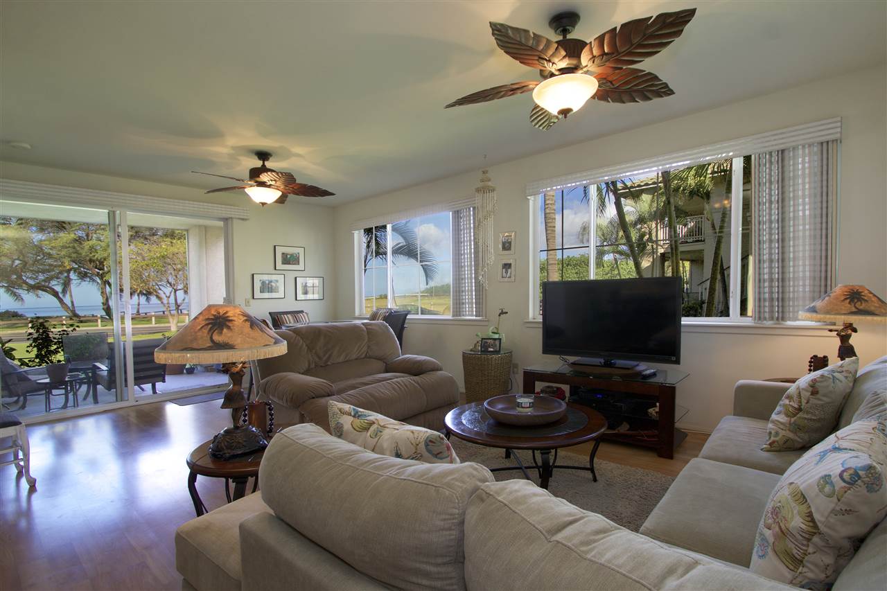 Once in a lifetime does a gorgeous ocean view 3 bedroom, 2 bath come along that is perfect to enjoy a carefree Maui lifestyle. Open plan living with granite counters and wood cabinets throughout. Laminate flooring in the main area with tile in kitchen/baths and carpets in bedrooms. Master suite features an en-suite bath with a spacious walk-in closet big enough for two. The best location in the complex as this condo is situated across from a beach park that has miles of sandy shore to enjoy. Sunsets year round and even view our whales in season. Kai Makani offers unparalleled amenities including swimming pool, jacuzzi and fitness center. The condo even comes with extra separate 10×5 storage space great for beach chairs/toys. Kai Makani is located in the North Kihei Beach area that is laid back and a place you would be proud to call home. Owner is an Inactive HI Real Estate Licensee.