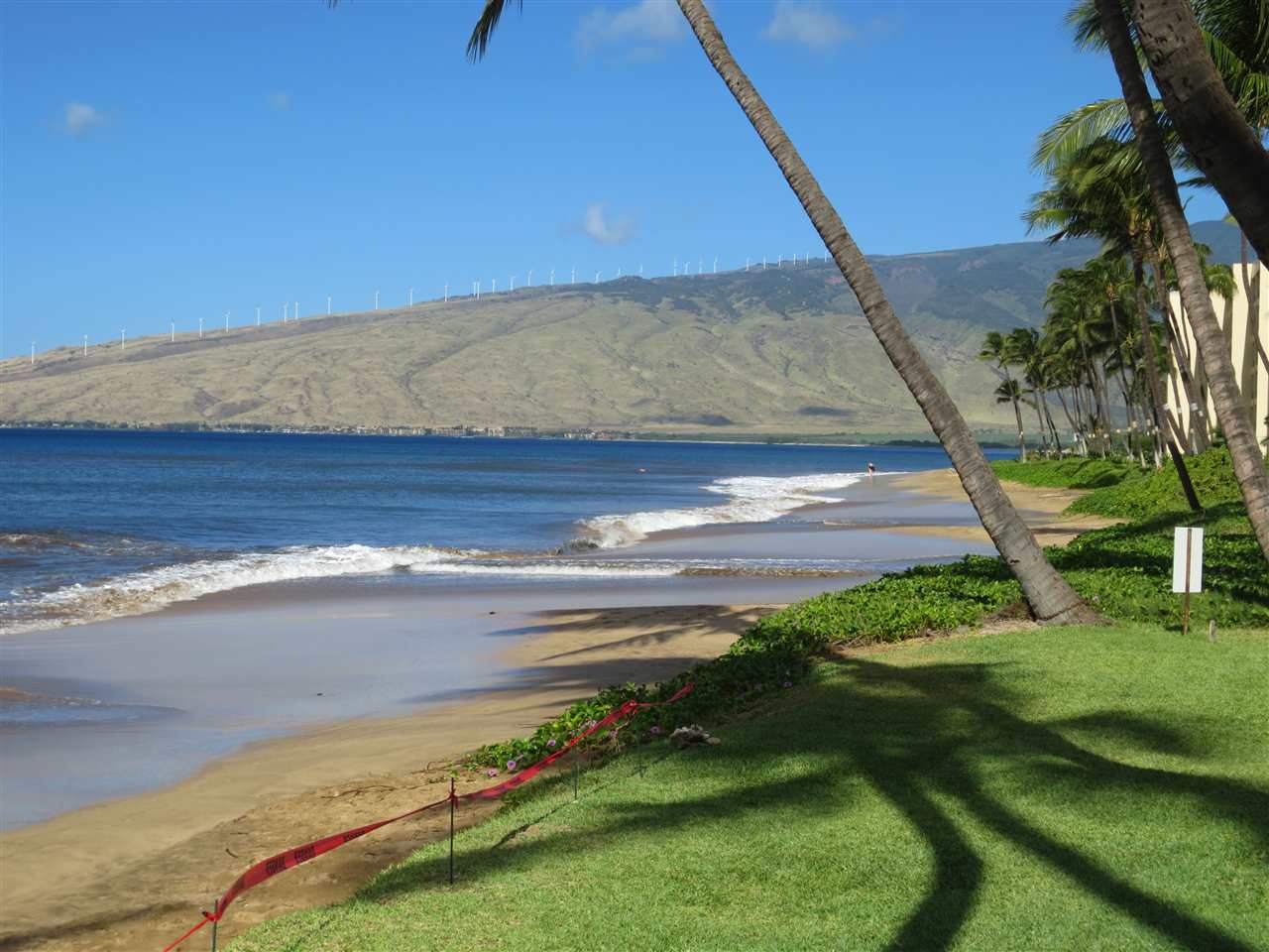 Incomparable views of Maalaea Bay, West Maui mountains and the Kealia NWR from your living room and lanai. Step directly into the warm Pacific or stroll the white sandy beach for miles. Nani Kai Hale is a 46 unit complex with amenities including PV heated swimming pool, full BBQ and beach showers. Watch whales and canoe racing from your private lanai. Tiled floors throughout, upgraded cabinets and counters in kitchen. Baths done in tile and glass. New wall a/c in living room. This unit is perfect for a new homeowner or to book for future vacation rentals. Situated in North Kihei a quick 15 min. drive to airport and easy access to everything. Nani Kai Hale is a Smoke Free Property.