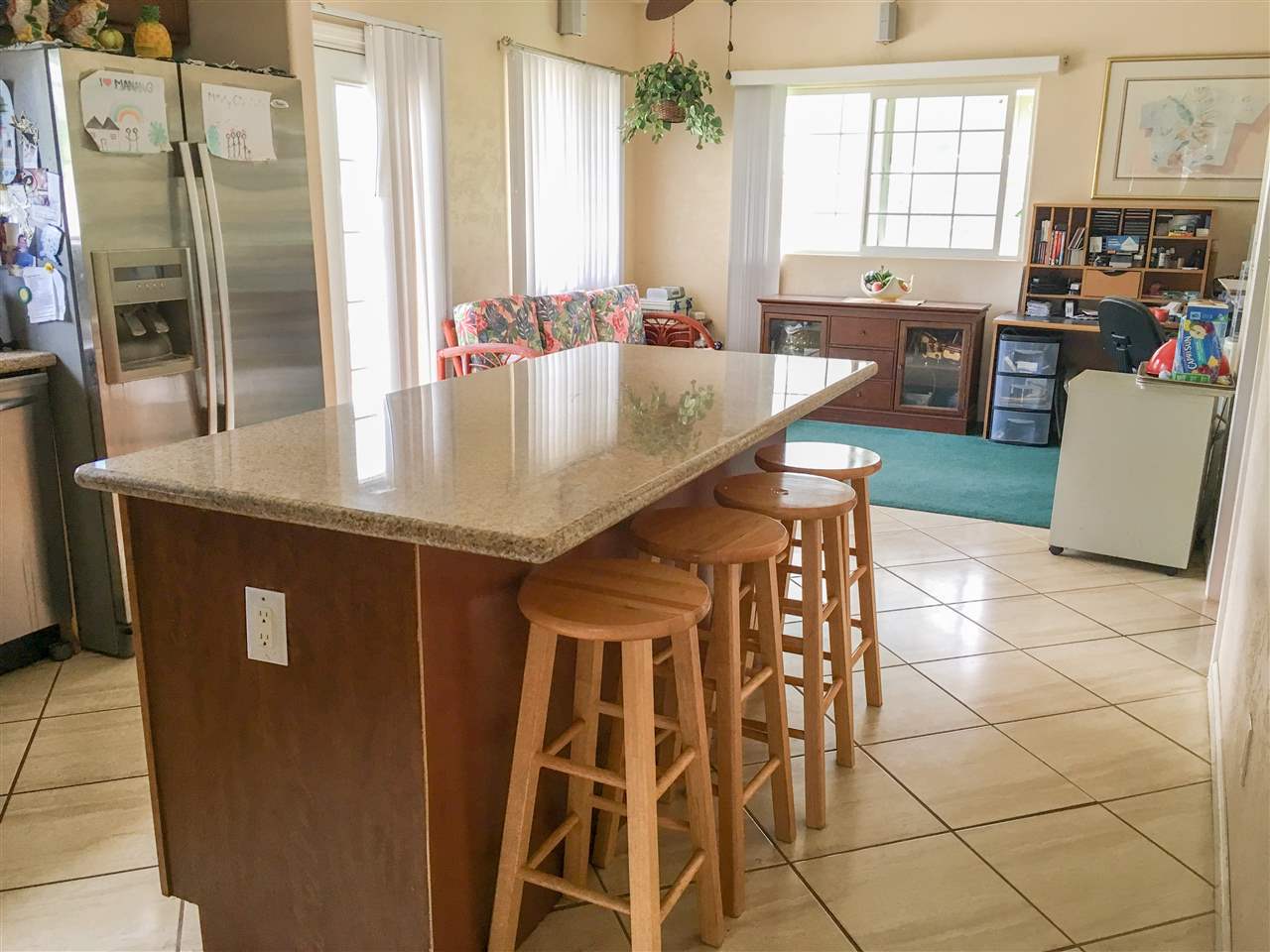 The tiny town of Waikapu boasts favorable year round weather and is the perfect location for families and professionals. This spacious 3BD/2.5BA stucco home is situated on a quiet street and features vaulted ceilings, granite counter tops, stainless steel appliances, 18X18 porcelain tile floors, a concrete block perimeter wall, and second-story views of Haleakala and the West Maui mountains. The master bedroom has a private lanai and a walk-in closet. This home also contains a family area, which could easily be converted into a private bedroom or office space; a 2-car garage; and a long driveway, which fits up to 3 vehicles. Conveniently located near two of central Mauis best golf courses, this property is within walking distance to public transportation and is minutes away from the Kehalani Village Center. Property will be sold AS-IS. Listor is related to seller.