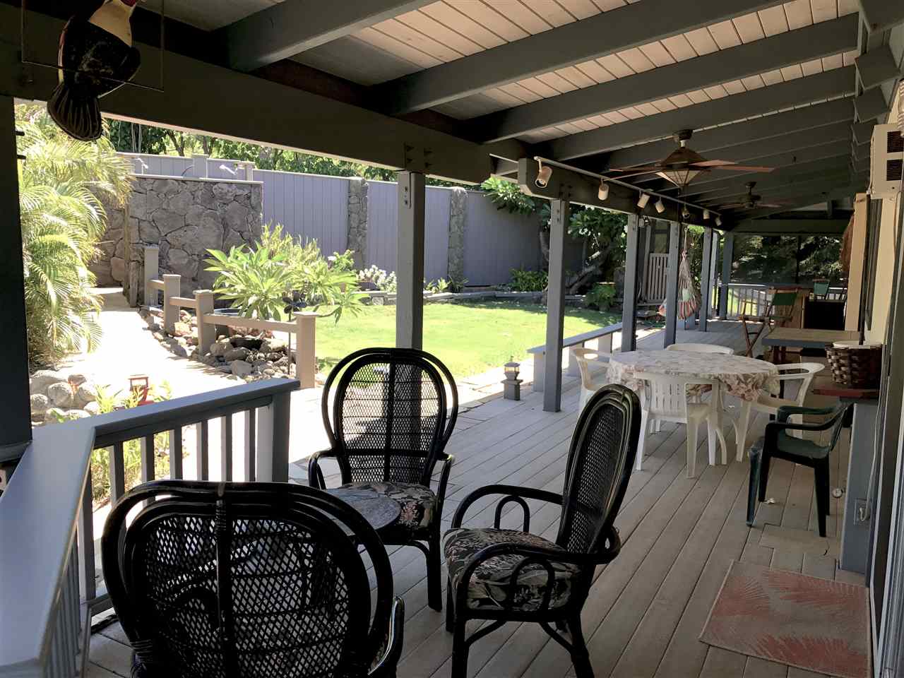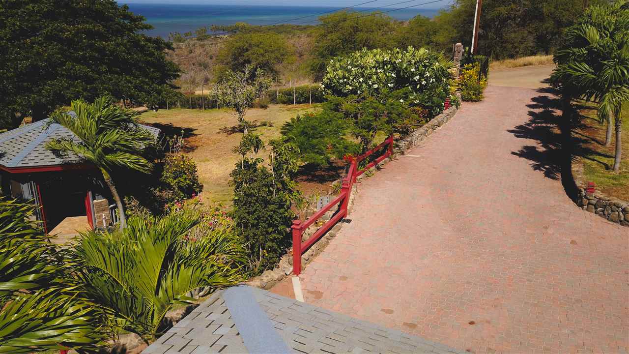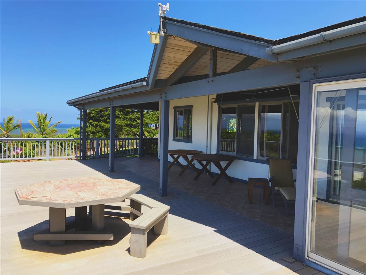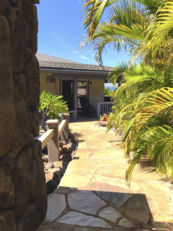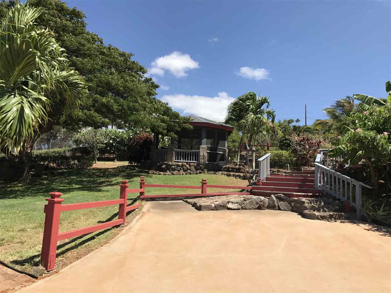 The front row location of this property allows you a panoramic view of the ocean from sunrise to sunset. Custom throughout with beautiful wood finishes.There is so much that sets this property apart from others. Solar air conditioning and hot water, high beam ceilings and wrap around covered decks. Gorgeous stonework and pathways take you along to various additions of the property such as the custom Gazebo, stone shower, orchid garden house, work shed and upper carport. Gated paved driveway takes you along the manicured irrigated fenced yard. Well groomed and maintained with mature fruit trees. On the lower level there is a large two car garage complete with it's own covered patio, attached living room, bed and bath room and kitchenette. Perfect for extended family or visiting guests.