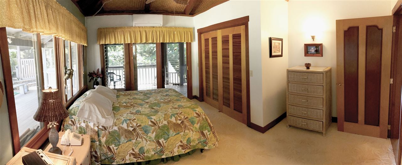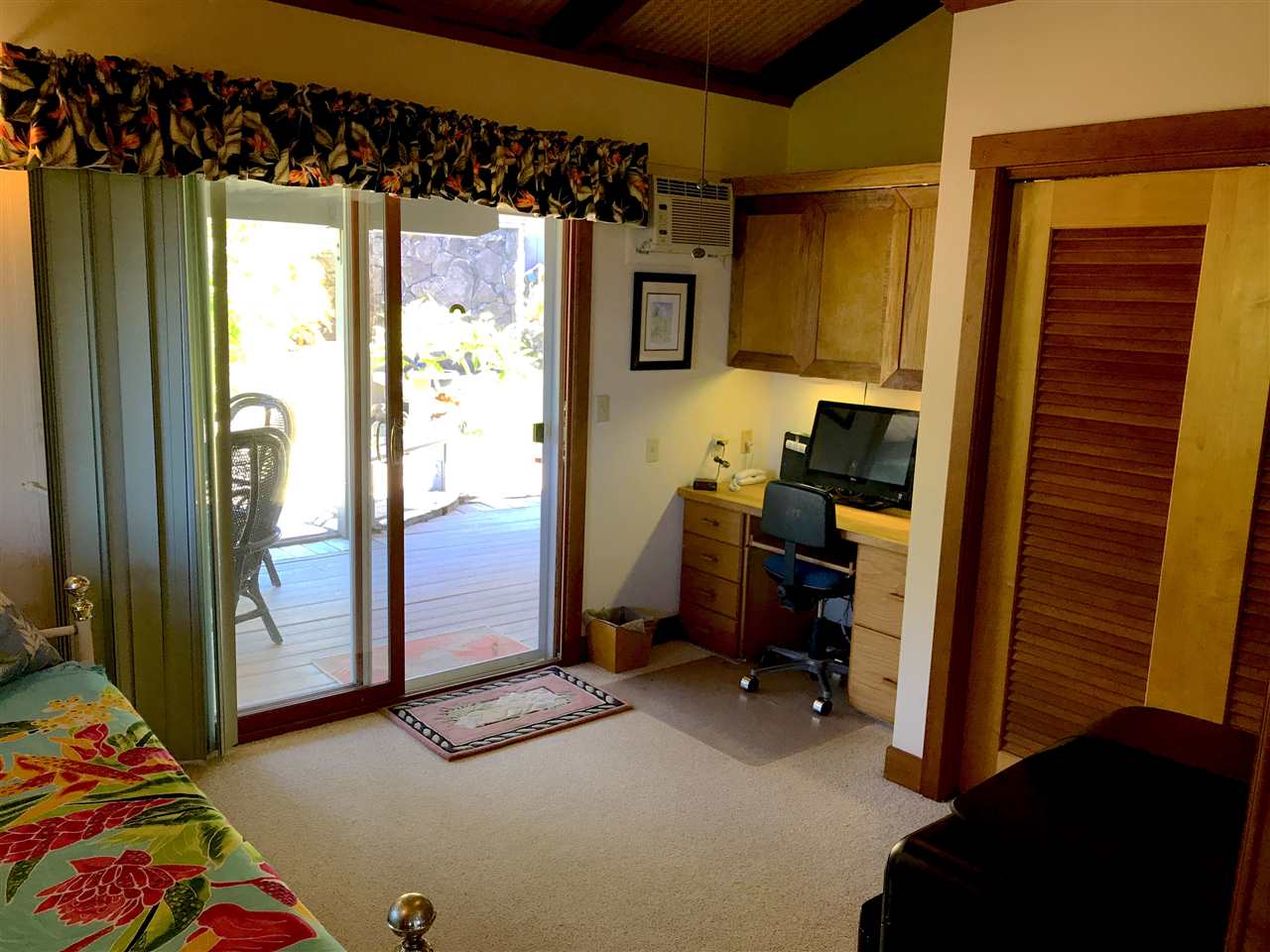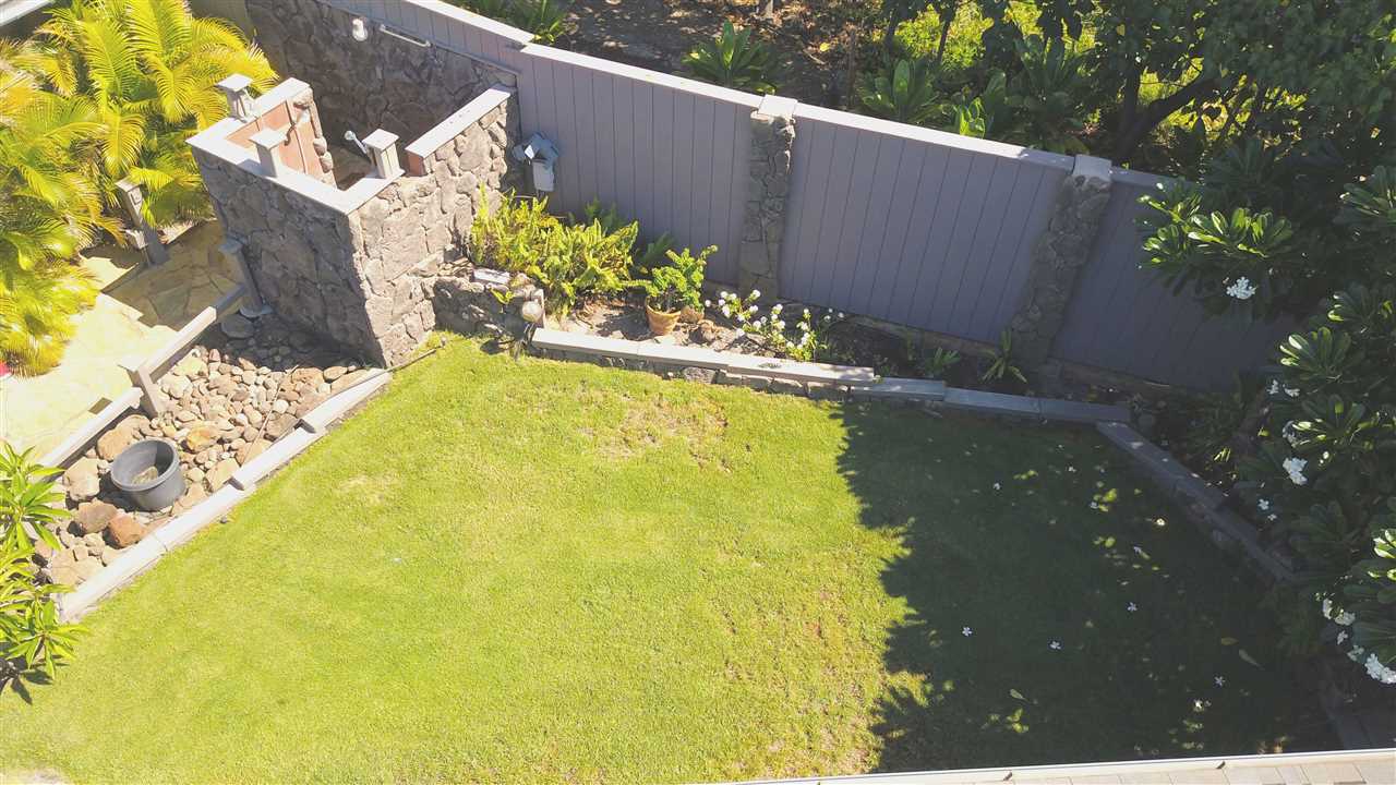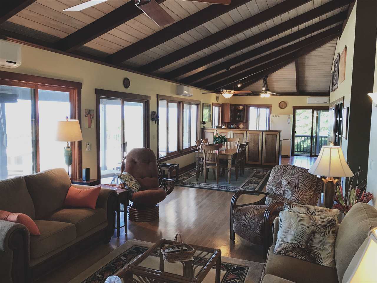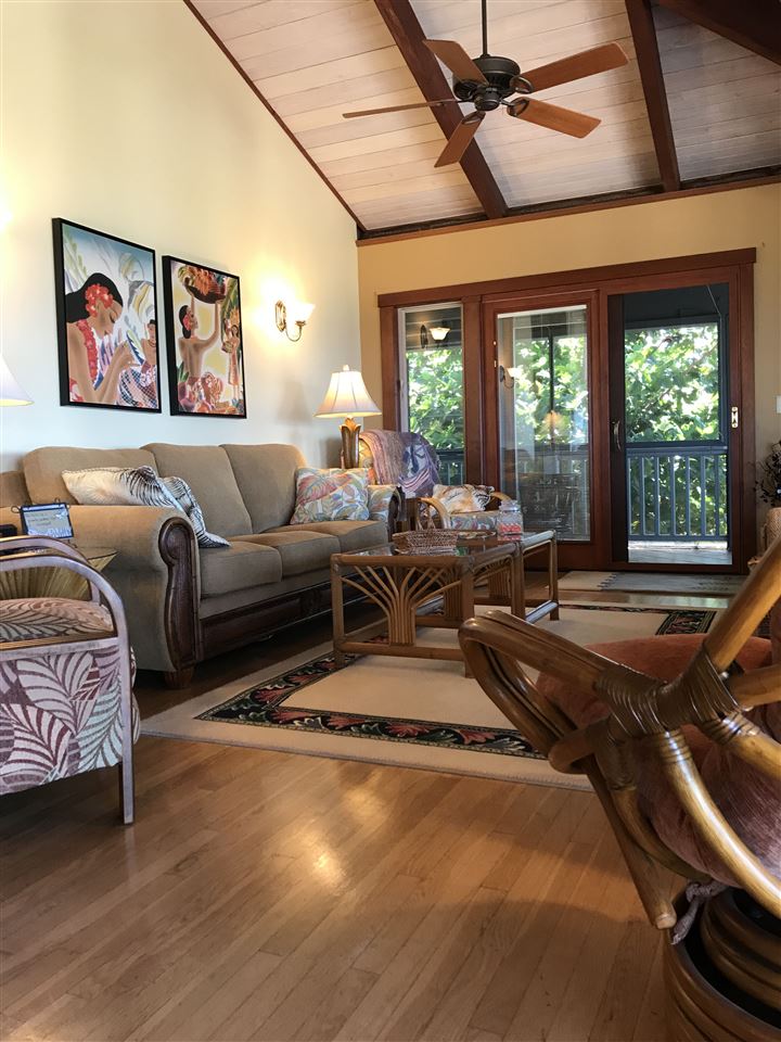 The front row location of this property allows you a panoramic view of the ocean from sunrise to sunset. Custom throughout with beautiful wood finishes.There is so much that sets this property apart from others. Solar air conditioning and hot water, high beam ceilings and wrap around covered decks. Gorgeous stonework and pathways take you along to various additions of the property such as the custom Gazebo, stone shower, orchid garden house, work shed and upper carport. Gated paved driveway takes you along the manicured irrigated fenced yard. Well groomed and maintained with mature fruit trees. On the lower level there is a large two car garage complete with it's own covered patio, attached living room, bed and bath room and kitchenette. Perfect for extended family or visiting guests.