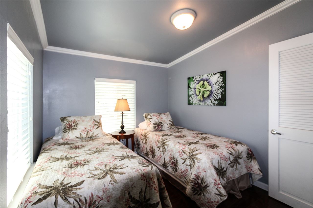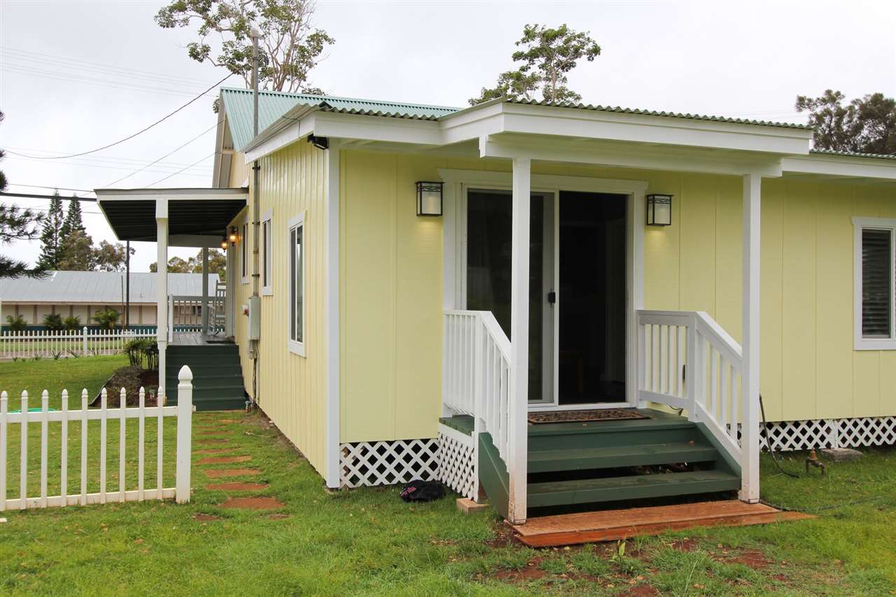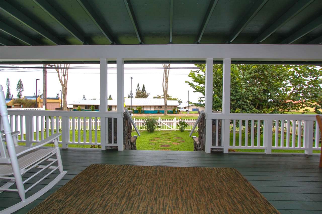 This spectacular plantation style home is definitely one of a kind. Not only is in perfect condition and has a spacious wrap around deck for relaxing but the location is ideal One block from town, shopping and restaurants this two bedroom two bath home sits on a lot of 7500 square feet. The house is on the front portion of the property and allows a 500 square foot ohana to be added to the back of the lot if one wishes. The interior finishes are beautiful, from the distressed hard wood floors, granite counter tops and crown molding throughout the attention to detail is impressive. This home is double wall construction and comes fully furnished. The house is turnkey and is being sold with all kitchen items, linens newly purchased furniture and flat screen TV. The four wonderful over size rocking chairs on the front deck make for a great spot to watch the world go by. This property is only minutes away from the community pool, library and Cavendish golf course. For those who love the feel of the old plantation style homes but want a well built house with custom finishes this property for you.