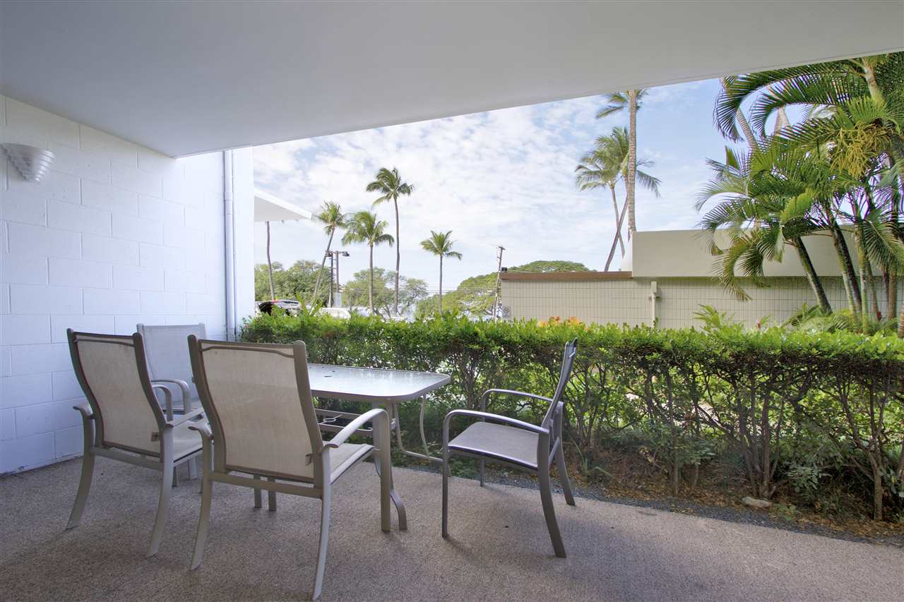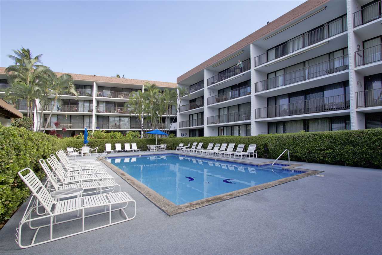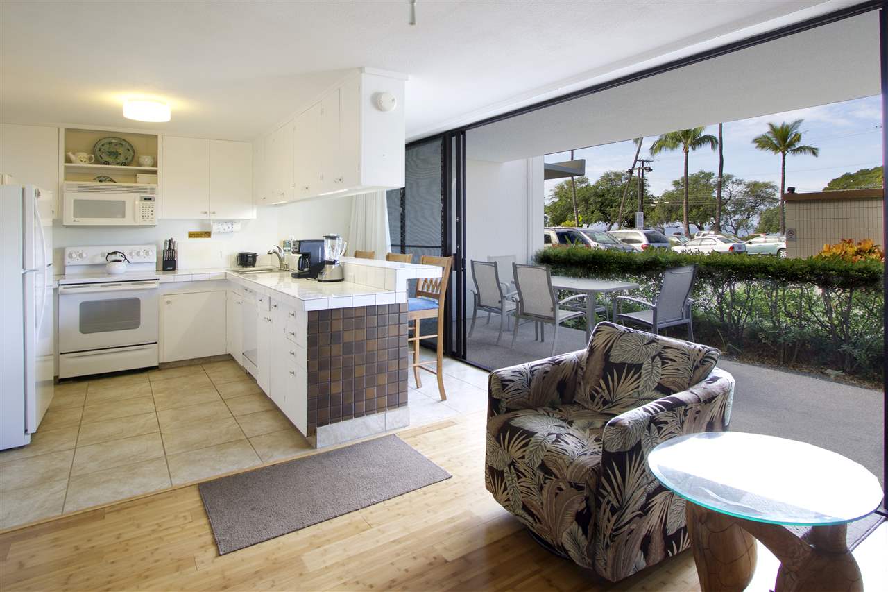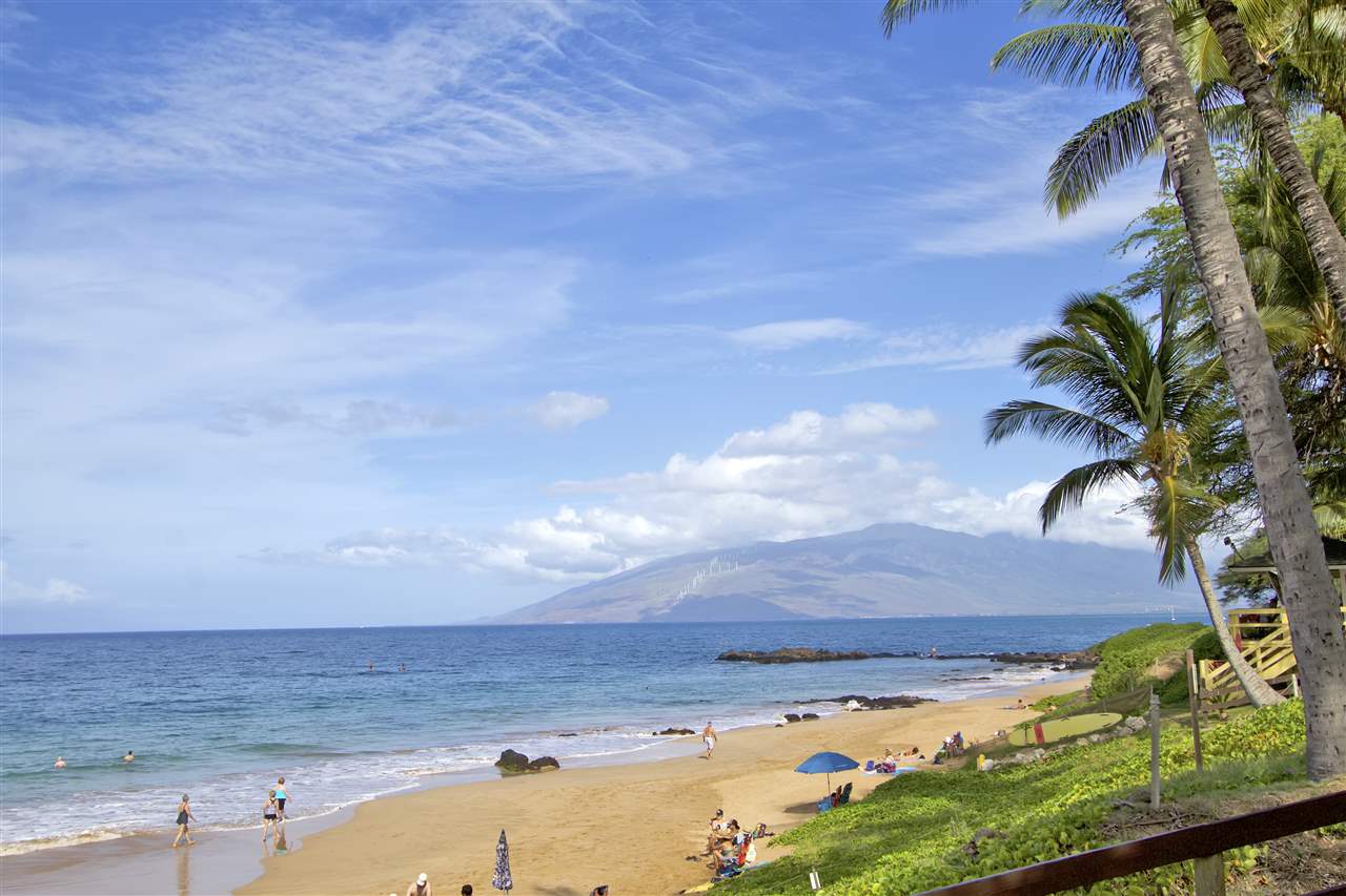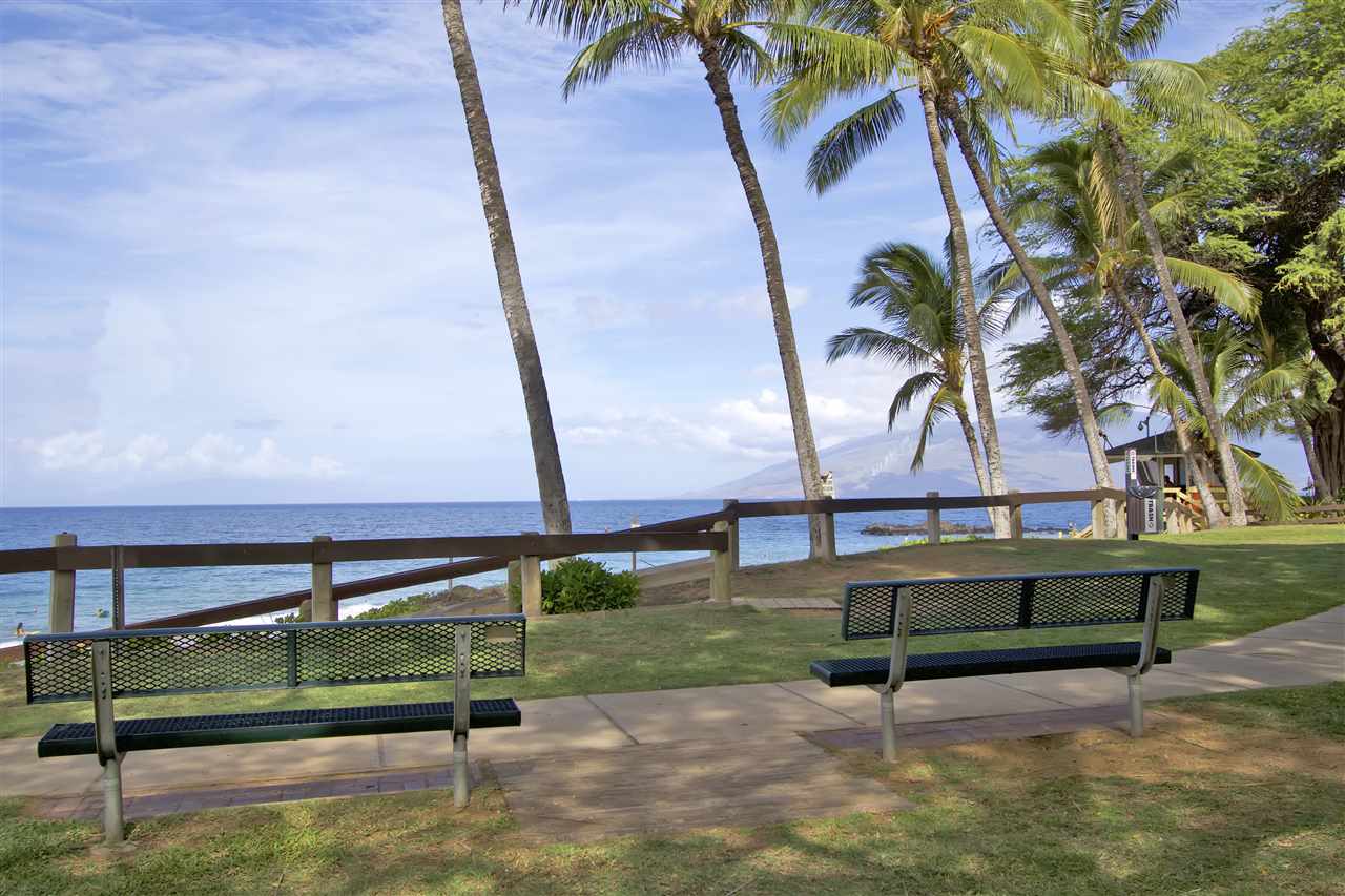 2 bedroom, 2 bathroom vacation rentable condo directly across the street from popular Kamaole III Beach Park! Fantastic ground floor location (no stairs and easy walk from the car)! Relaxing pool and BBQ area just steps from your unit! Shopping, dining and amenities nearby! Over $10,000 in recently installed bamboo flooring in the main living area, tile flooring in the kitchen and window coverings throughout! Totally furnished and turnkey! ALL of this AND a partial ocean view. Here is your opportunity for a South Kihei BEST BUY well below $500K!