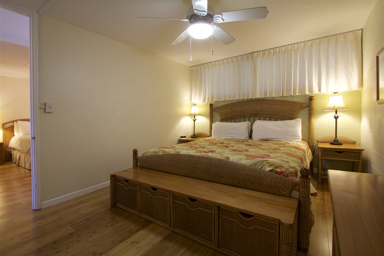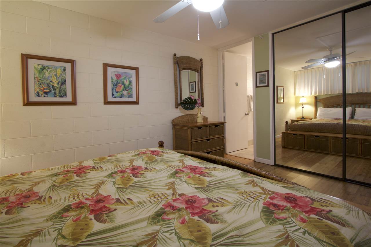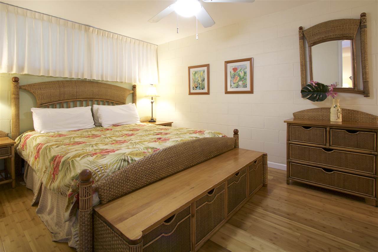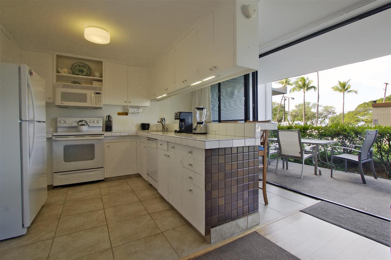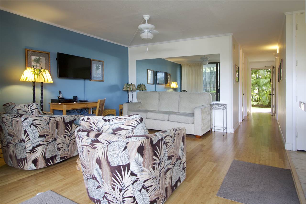 2 bedroom, 2 bathroom vacation rentable condo directly across the street from popular Kamaole III Beach Park! Fantastic ground floor location (no stairs and easy walk from the car)! Relaxing pool and BBQ area just steps from your unit! Shopping, dining and amenities nearby! Over $10,000 in recently installed bamboo flooring in the main living area, tile flooring in the kitchen and window coverings throughout! Totally furnished and turnkey! ALL of this AND a partial ocean view. Here is your opportunity for a South Kihei BEST BUY well below $500K!