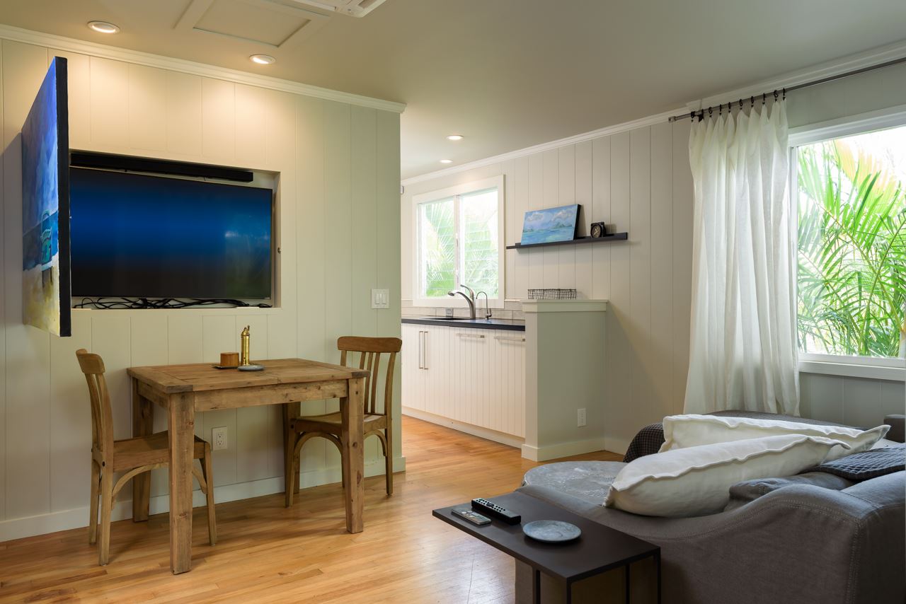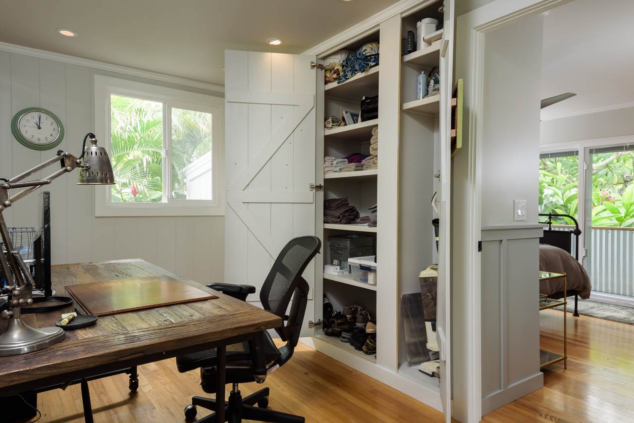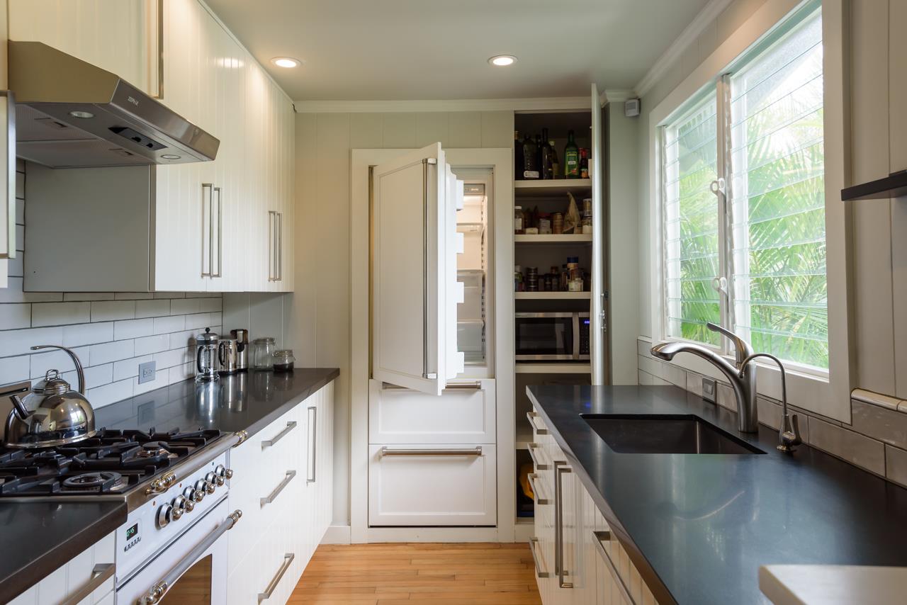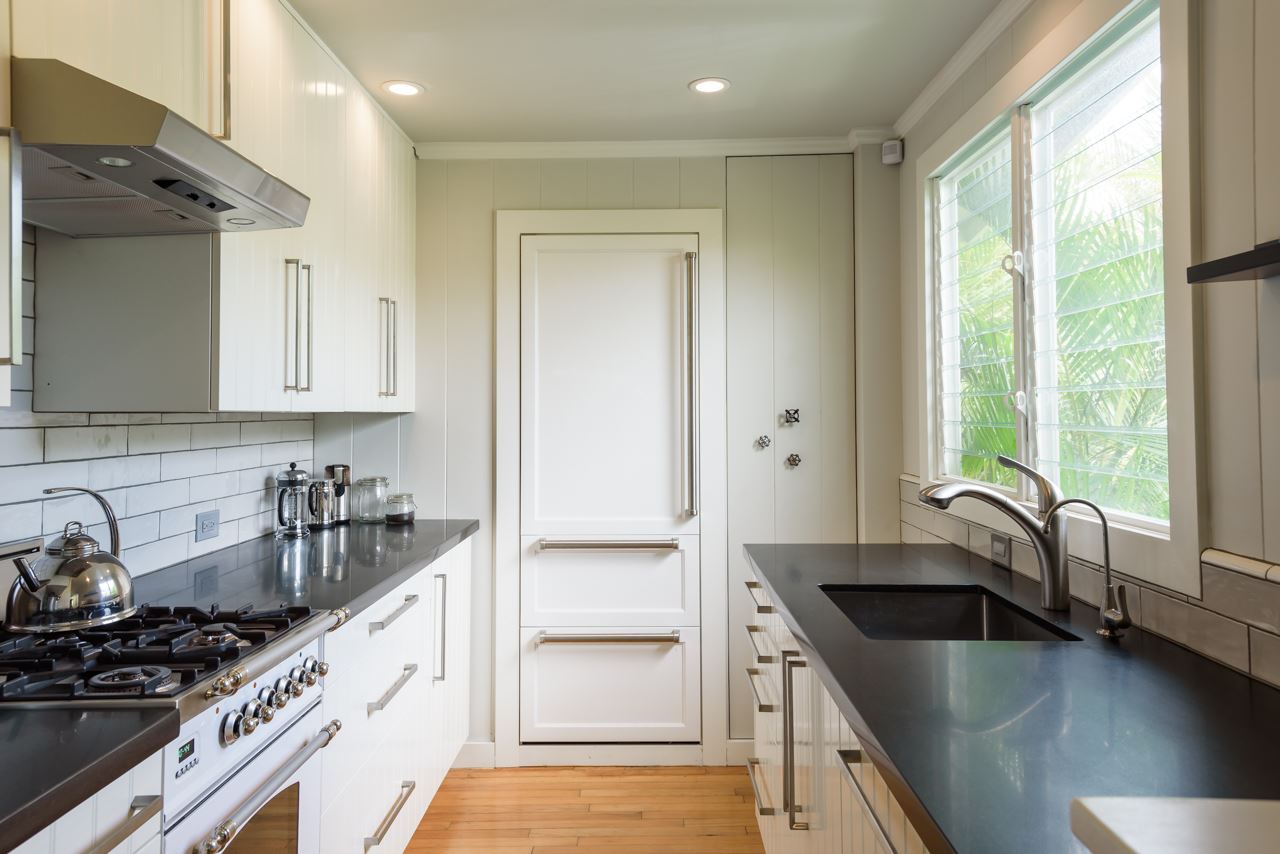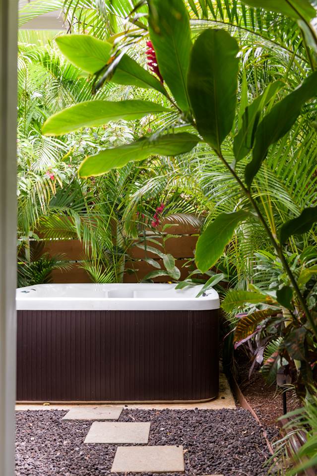 This is the quintessential island style cottage. Located in Kuau, on Mauis North Shore, this beautiful home has been completely transformed on the inside and out to maximize comfort and functionality all within an aesthetic that is unparalleled. With impeccable attention to detail in the materials and finishes, the cottage offers wainscot paneled rooms, crown moulding and numerous hidden built-ins to maximize space. The all new designer kitchen includes an integrated Subzero refrigerator, Bosch Dishwasher, an Ilve Gas Range, honed absolute black granite counters, Catalina Tile backsplash and a water filtration system. The all-new bathroom features beautiful cararra marble on the floor and shower as well as an ample, hidden built in cabinet. This smart home offers earth and wallet friendly features like the owned photovoltaic system, an on-demand water heater, an Insteon Lighting System, a Rachio powered sprinkler system, as well as security system. The fenced and private outdoor space is truly extraordinary. The lush landscape provides a tropical backdrop for the covered lanai area that is a great space to entertain friends or to just enjoy the trade winds. Rinse off in the outdoor rain shower after the beach or relax in the new spa or freestanding bathtub under the moonlight. The home is well situated within walking distance to Mamas Fish House and surf spots. Downtown Paia is only a short drive away. This great condo cottage in this idyllic gated setting, is the perfect North Shore getaway.