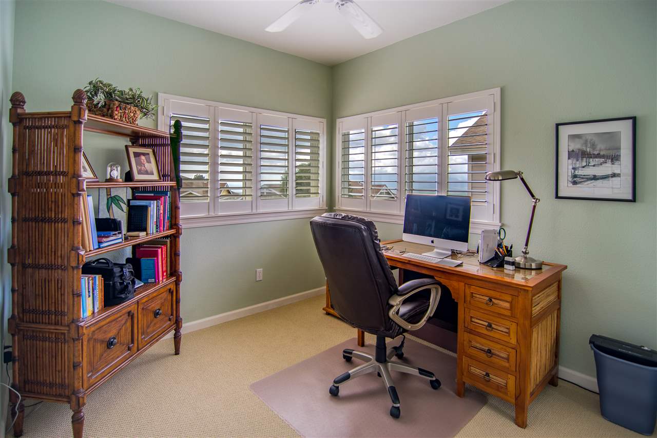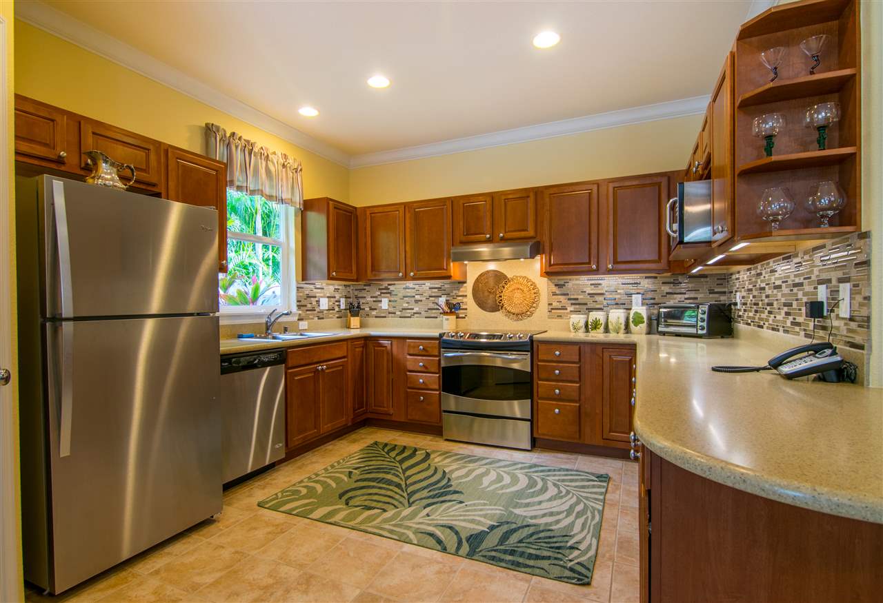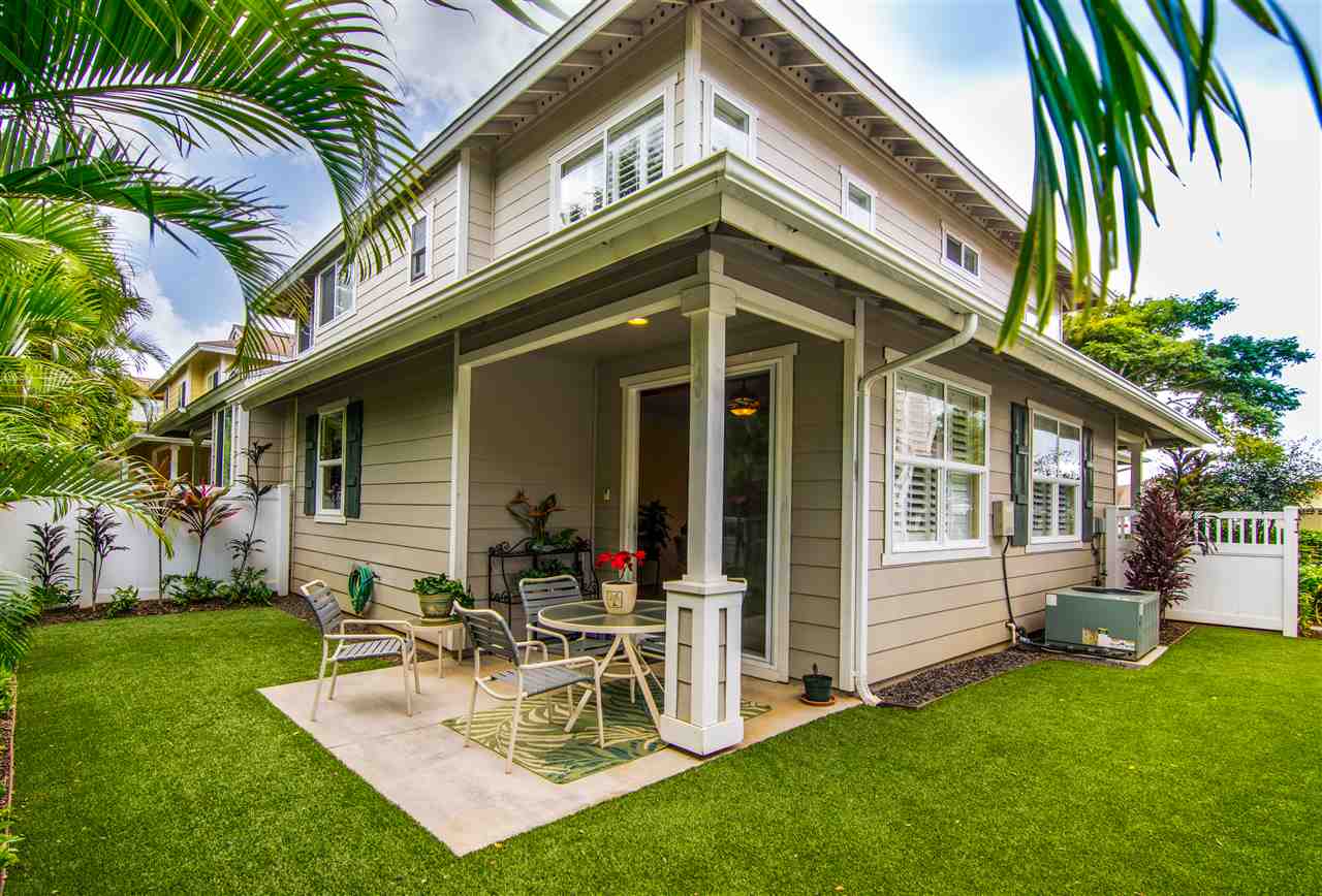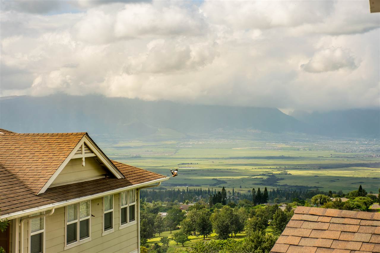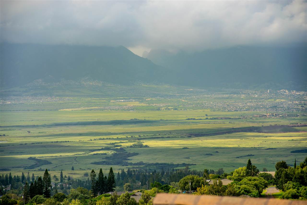 Perfect! This pristine, peaceful home enjoys a great location in the popular Cottages at Kulamalu complex in upcountry Maui. Tucked back against the gulch, this unit offers quiet privacy plus ocean and central valley views from upstairs. Remodeled in 2014, the home features porcelain tile downstairs framed by base and crown moldings added by the seller. The spacious kitchen has stainless appliances, Corian counters, new tiled backsplash and an open concept to the living area. All windows are framed by beautiful new plantation shutters. Central AC throughout when needed. Seller's pride of ownership evident in the immaculate condition of this home. Designer ceiling fans included. A remodeled ensuite master bath features new tile and additional cabinetry. Upstairs bedroom/office has panoramic views of the central valley. Backyard is fenced and private with easy maintenance synthetic lawn. Staircase includes a stairlift recently installed by owner which can be easily removed if desired. Two pets are allowed. Maintenance fee covers exterior building maintenance including roof, water, sewer, refuse collection and common areas. Repainting of this unit is scheduled for March 2018. Attached DOUBLE GARAGE. Close to guest parking. Located close to Central Maui and fine schools with the ideal Lower Kula climate. Walk to the Saturday Farmers Market and Long's Pharmacy.