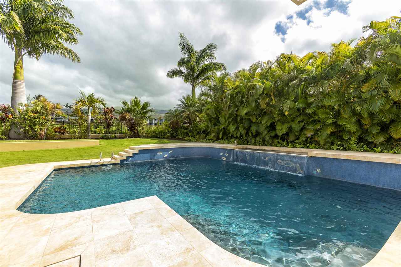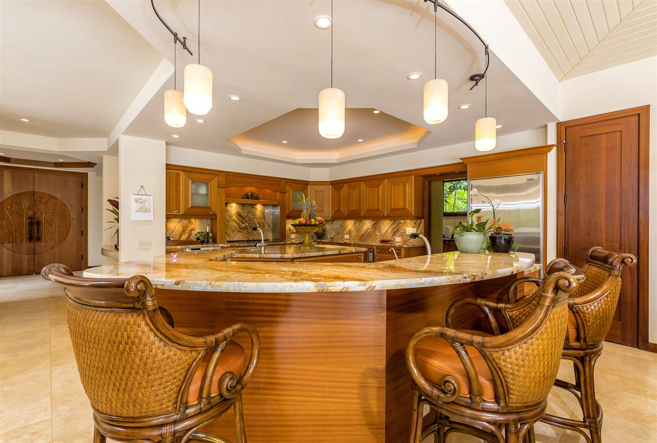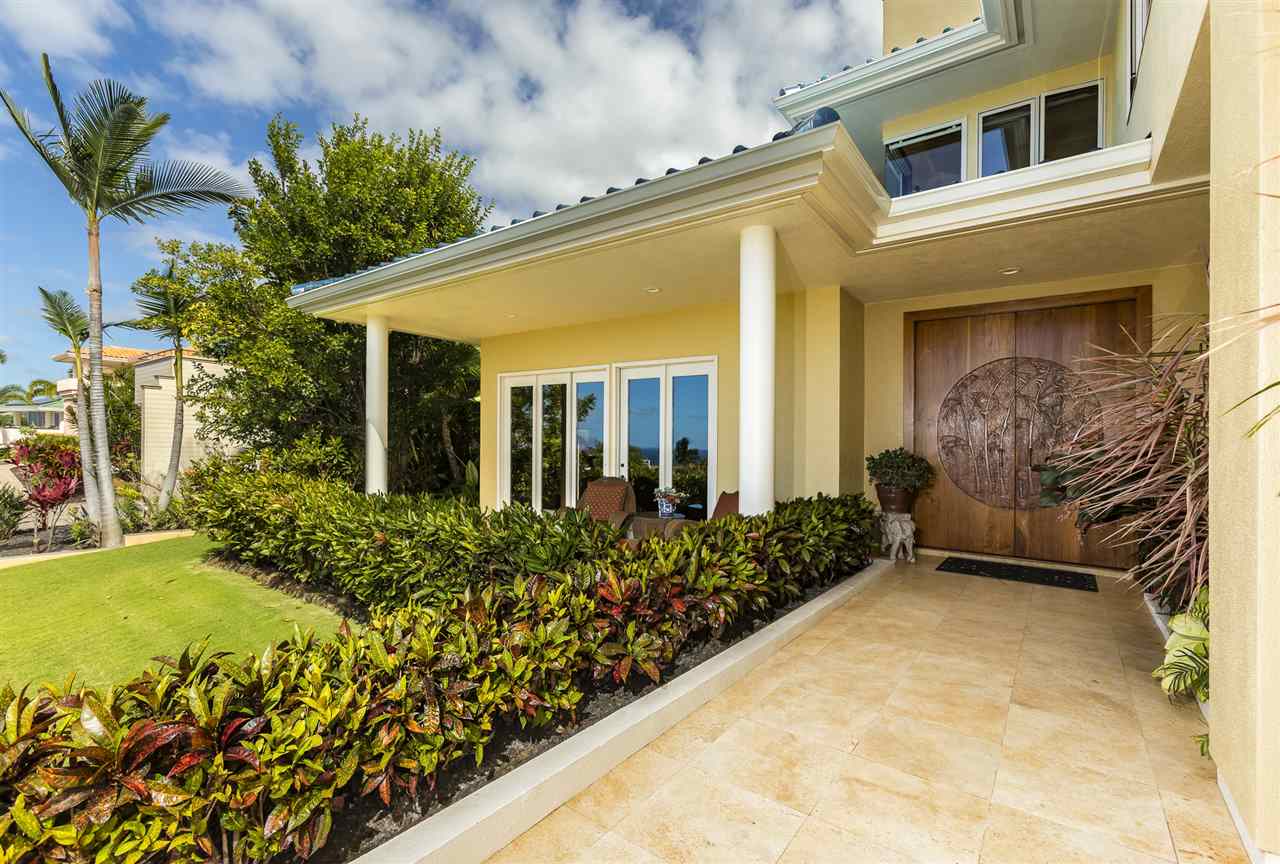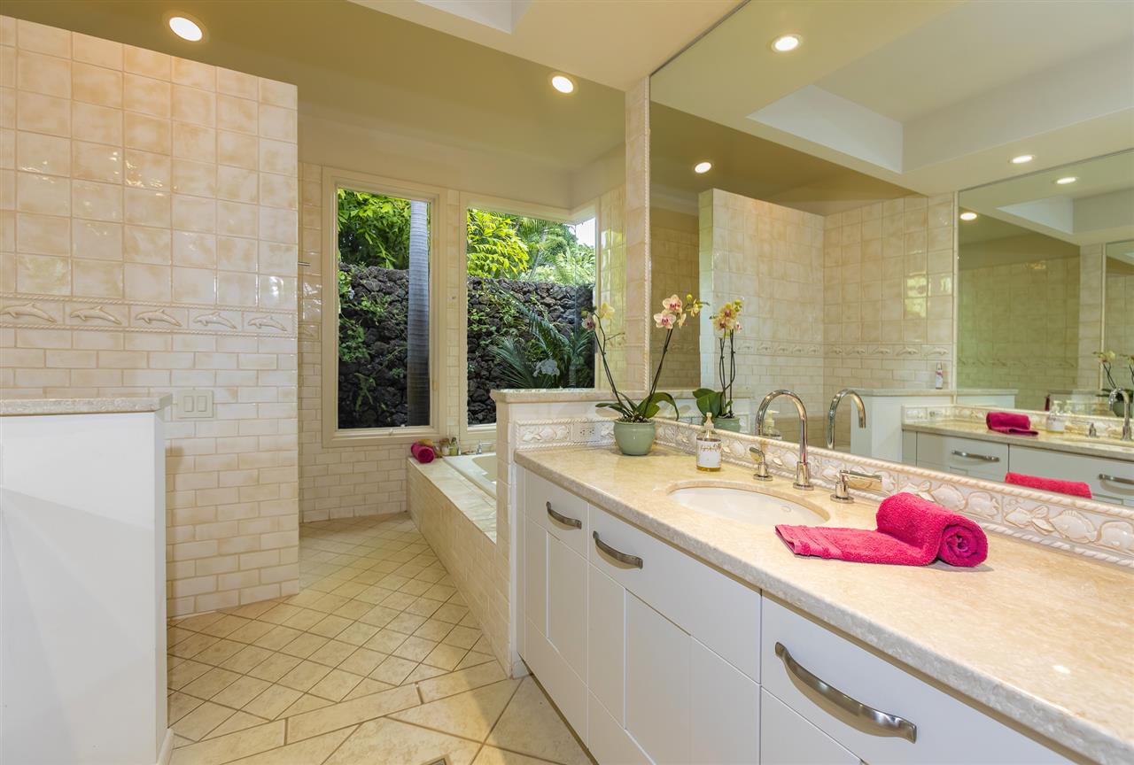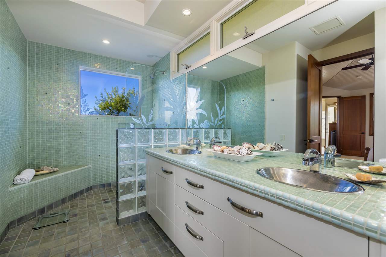 Lift your eyes to the Mountains! Look to the east from the open family room and see the sun rise over Haleakala and fill your beautiful kitchen with morning sun. Look to the west from the upstairs Master Bedroom lanai to the majestic West Maui Mountains as the sun sets over the Pacific. So many living areas in this home to be alone or together. Two bedrooms (each with an ensuite bath) and open office area upstairs with separate lanais, one with Haleakala view and one with ocean views. Lovely living room for reading or watching TV and another bedroom with ensuite bath downstairs if anyone has trouble with stairs. Elevator might be possible. But where you end up living is in the kitchen, family room – so warm and welcoming with its window seat. The heated pool is beautifully designed as it is protected from the tradewinds by the bedroom wing. This home designed by Tim Farrington, is on the mauka side of Wailea Ekolu Place and has the beautiful Wailea Blue Golf Course as its backyard. It is elegantly and tastefully furnished. Move in and start living in wonderful Wailea!