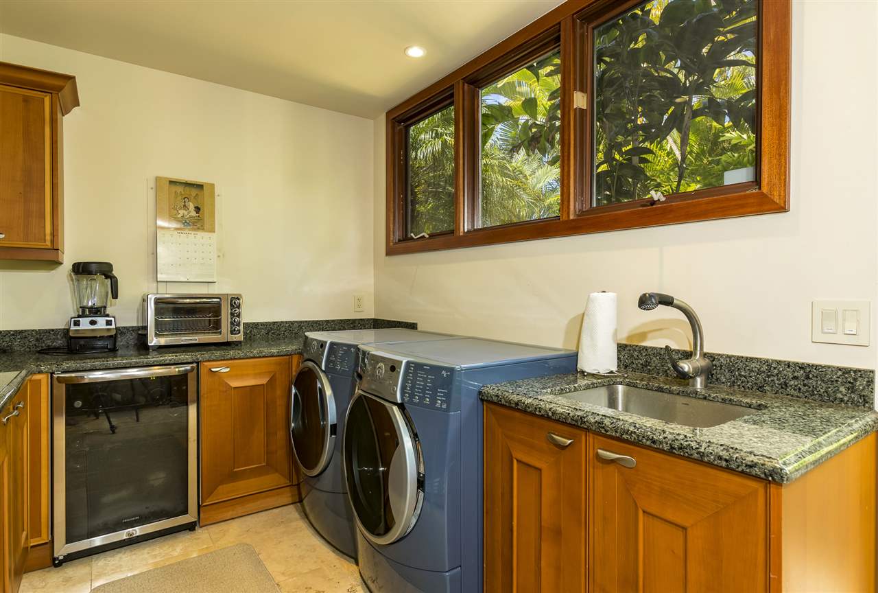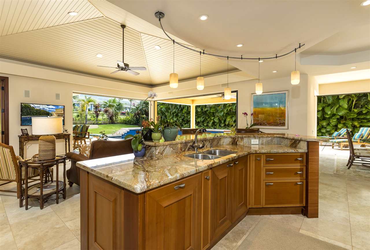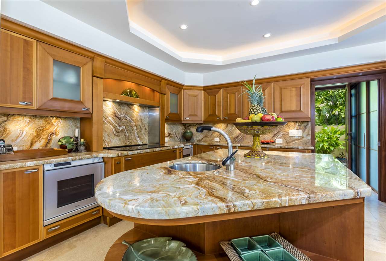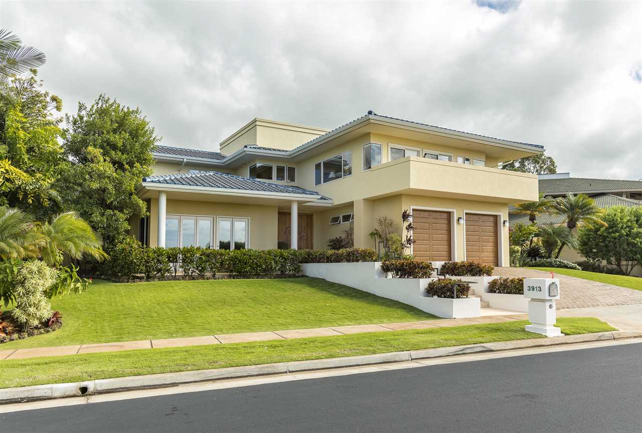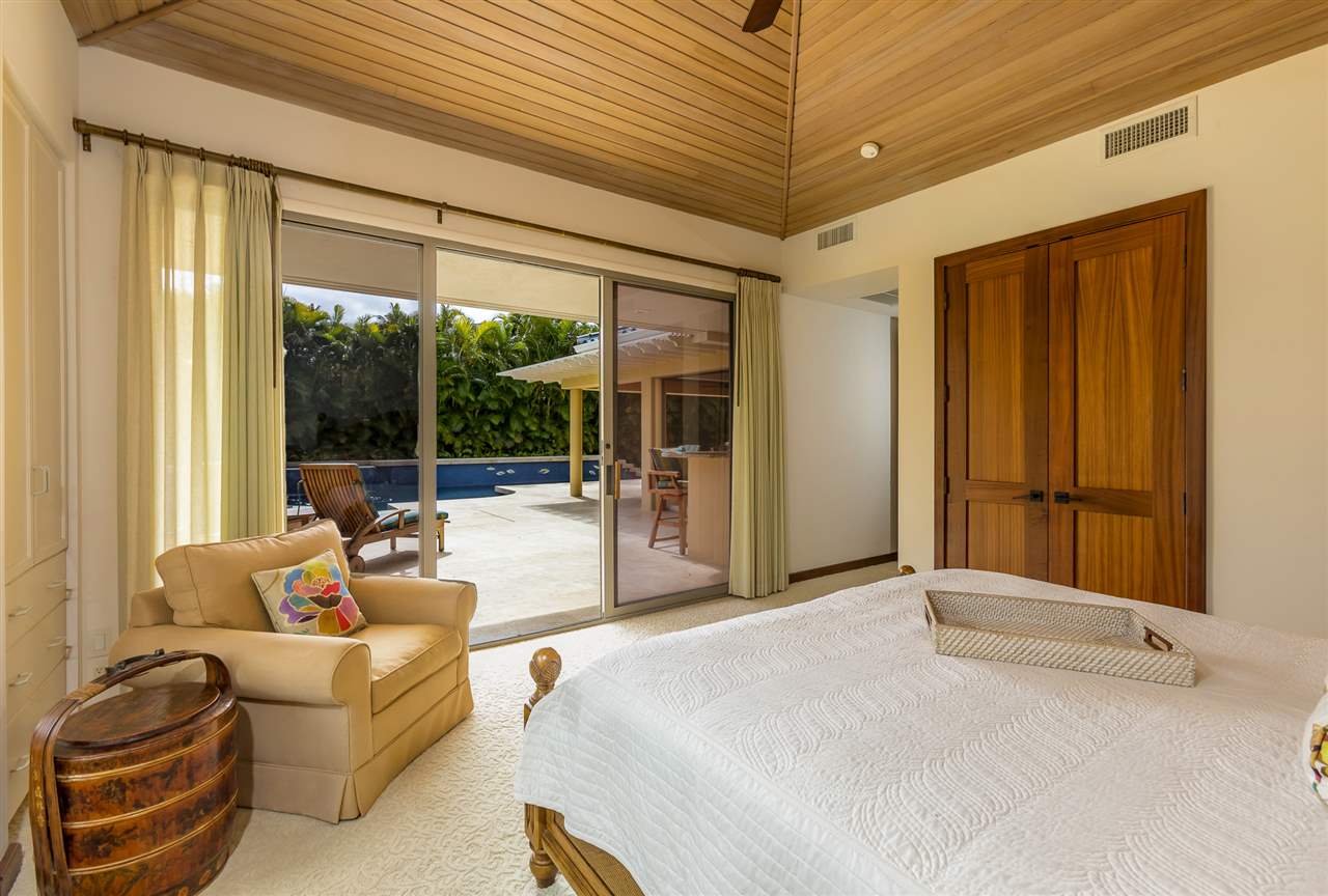 Lift your eyes to the Mountains! Look to the east from the open family room and see the sun rise over Haleakala and fill your beautiful kitchen with morning sun. Look to the west from the upstairs Master Bedroom lanai to the majestic West Maui Mountains as the sun sets over the Pacific. So many living areas in this home to be alone or together. Two bedrooms (each with an ensuite bath) and open office area upstairs with separate lanais, one with Haleakala view and one with ocean views. Lovely living room for reading or watching TV and another bedroom with ensuite bath downstairs if anyone has trouble with stairs. Elevator might be possible. But where you end up living is in the kitchen, family room – so warm and welcoming with its window seat. The heated pool is beautifully designed as it is protected from the tradewinds by the bedroom wing. This home designed by Tim Farrington, is on the mauka side of Wailea Ekolu Place and has the beautiful Wailea Blue Golf Course as its backyard. It is elegantly and tastefully furnished. Move in and start living in wonderful Wailea!