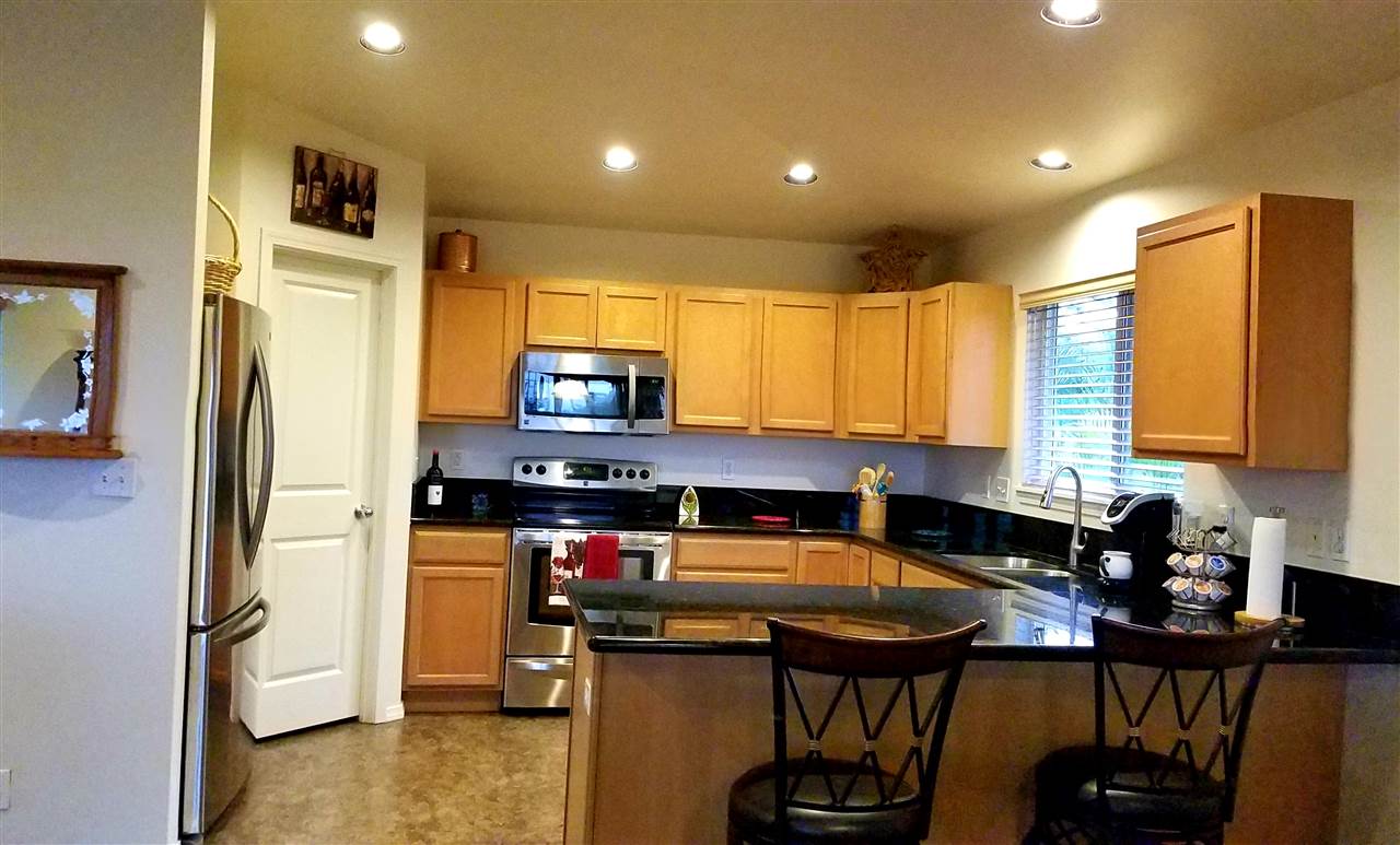 This 3 bedroom, 2.5 bath wonderful home is situated on the very top corner lot that offers beautiful ocean views from Kitchen and the extended living room lanai. The kitchen opens up to the dining and living area with vaulted ceiling. Granite counter top, big size pantry. The permitted extended deck is an enclosed look out living area and a perfect place to enjoy the ocean, sunrise in the morning and city light view in the evening. The master bedroom suite offers amazing mountain, moon and stars lights view, especially at sunset. Downstairs are two additional bedrooms, a full bath, and extra living room to covered lanai with new seven seat Jacuzzi. Enjoy family time, spa or with your pet in all round vinyl fenced, private. Spacious back yard with mature papaya, lemon, lime and mandarin fruit trees. Waikapu Gardens is a lovely subdivision within the central corridor that offers easy access to airport, upcountry, Wailea and even to Lahaina. The hospital, schools, shopping, dining and more are just minutes away.This home has so much to offer and great location! Credit to buyer $2500 for flooring.