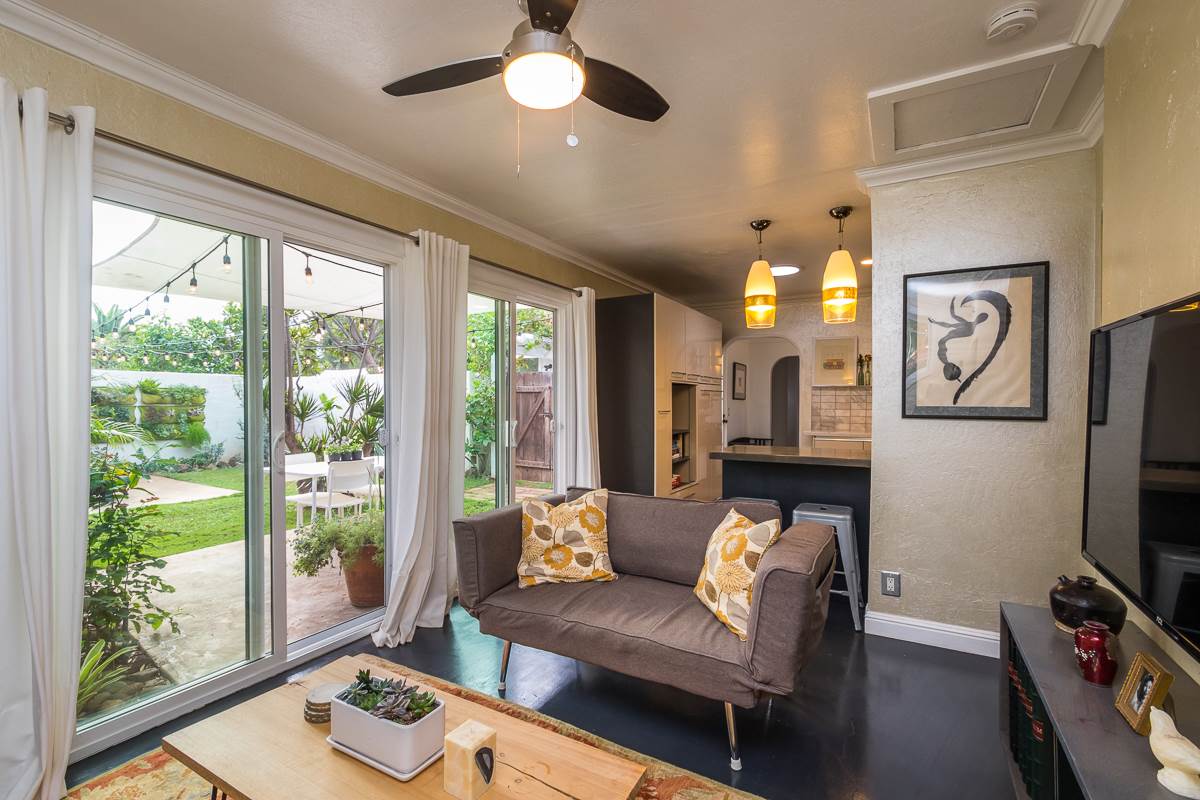 Stunning single level home tucked away behind a gated entrance in its own private oasis. This home has been beautifully remodeled and features Quartz counters, stainless steel appliances, glass tile, designer lighting and ceiling fans, and attractive painted concrete floors. Relax outside in the private courtyard while reading a book or star gazing by the fire pit. The garden has fresh lemons, limes and a multitude of mature vegetables. The location is exceptional, with shopping, restaurants and the beach all nearby.