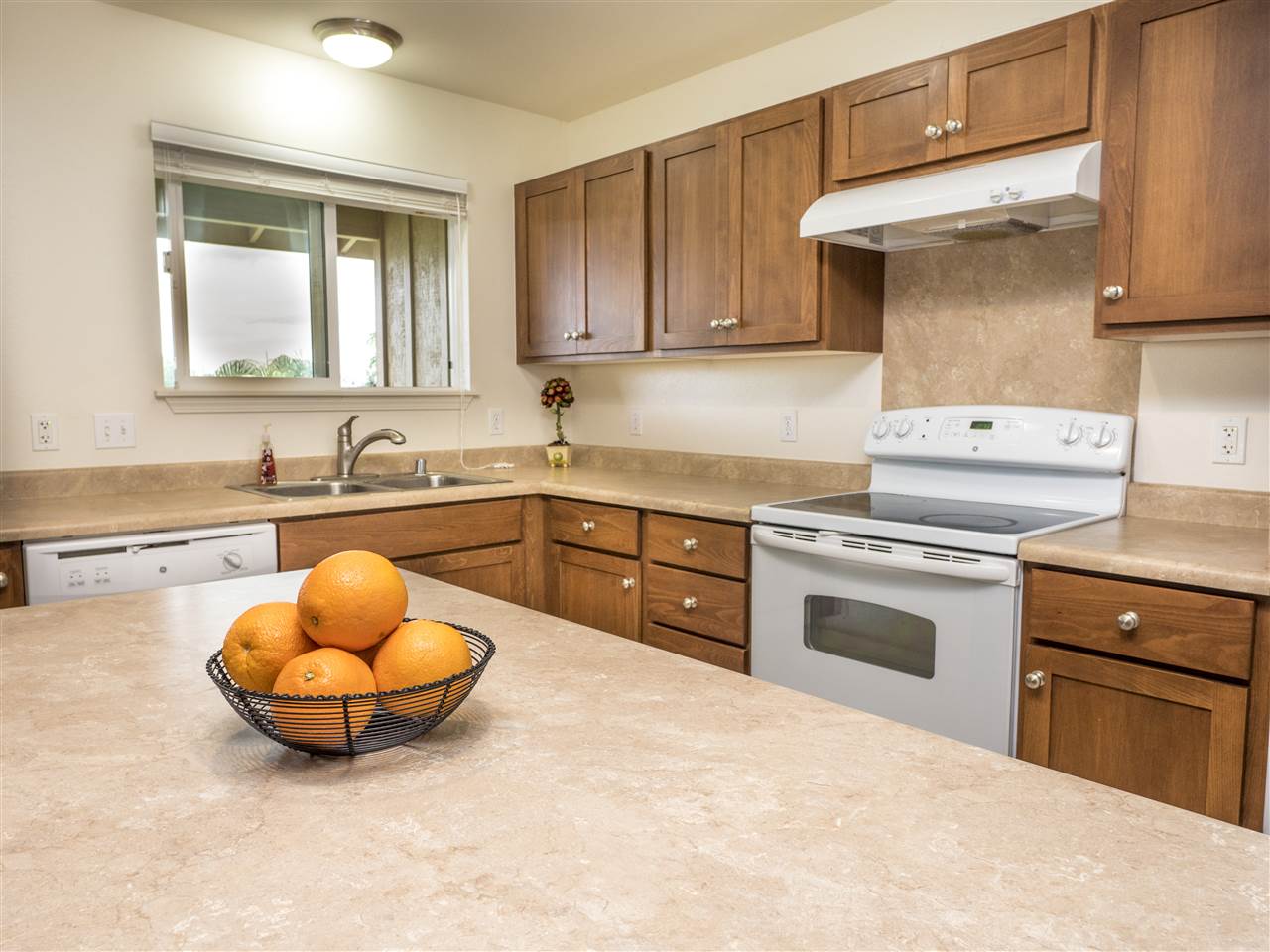 Welcome home to a very desirable open floor plan at Milo Court. This home offers the kitchen and living area on street level with bedrooms and baths on the level below. Convenience at it's best! Every room is cable ready including the 2 car garage. There are split air conditioning units servicing 2 of the 3 bedrooms. Offering a nicely manicured back yard with an extended lanai including a concrete side walk around the exterior highlights your outdoor experience. This home comes with all appliances and a front load washer & Dryer. This is a Wailuku gem, so please schedule a private showing to experience this great unit.