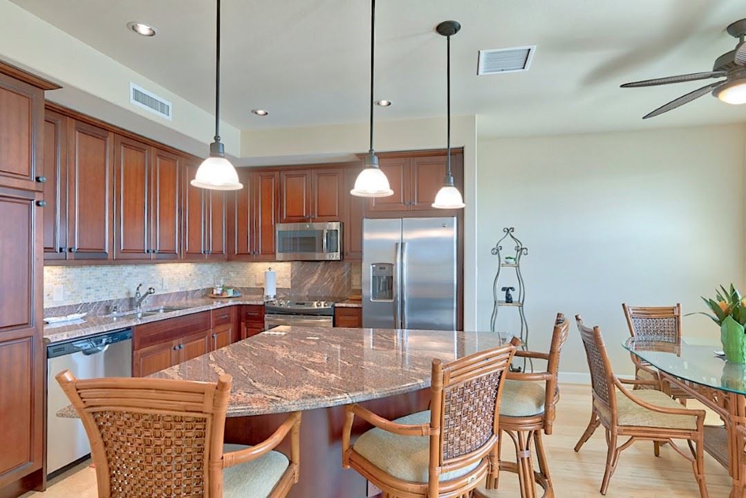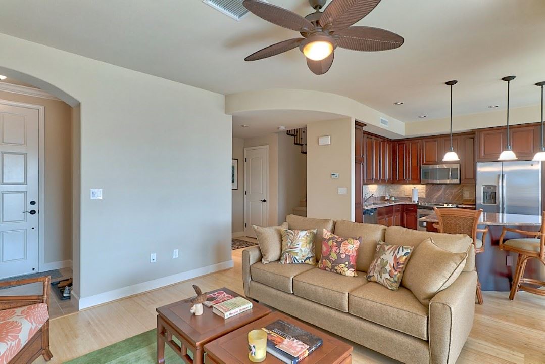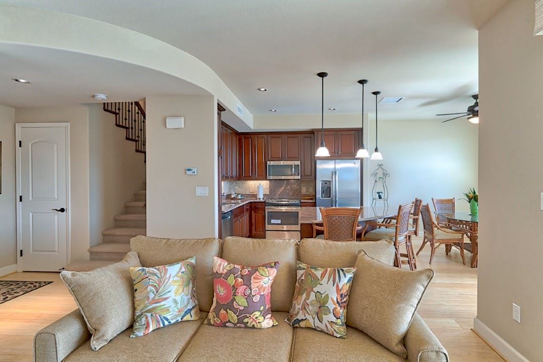 If you are looking for new construction, this is the ONE. Capture gorgeous HUGE harbor views from the kitchen window, lanai and upstairs master bedroom form the top row in the development. This special, brand new, never been lived in townhouse style unit has a 2-car attached garage and is ready for the refined buyer with impeccable taste. A turnkey residence with brand new high-end appliances, tasteful furnishings, and developer upgrades include lush carpet and tile. Sophisticated finishes include bamboo floors, tile and granite. Feel at home in the bright spaces with tropical touches. Capture privacy and light from your Hunter Douglas window treatments throughout, or relax comfortably in the central a/c. Well located near the hospital, airport and conveniences of central Maui, with big views from the Wailuku hillside. The Villas at Kehalani is a well built development and a special place to live and call your Hawaiian home.