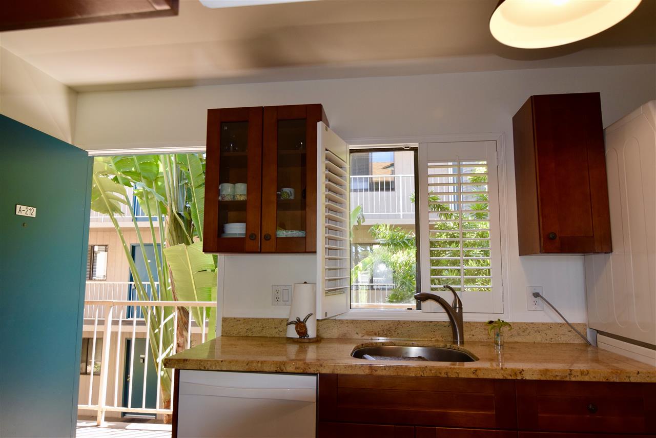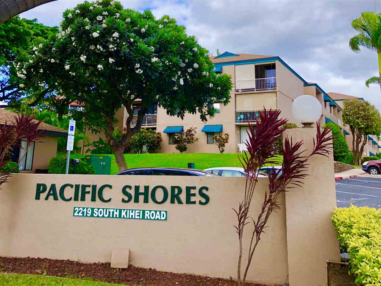 You found it! This Pacific Shores 2-bedroom 2-bath, fee-simple condo in South Kihei is priced under $500,000 and allows vacation rentals. Has AC. Across the street from the ocean and world-class Kamaole I and Charley Young beaches. Completely remodeled and updated in 2016. You will love the smooth walls and ceilings, custom shutters, cherry stained cabinetry and granite counter-tops in the kitchen and bathrooms, tiled walk-in shower, large-tile flooring throughout, Casablanca remote ceiling fans, French doors covered with beautiful Cambodian Silk curtains and custom-made Indonesian Teak furniture. Did I mention the nearly-new Tempur-pedic queen-size mattress? This little piece of paradise is located on the quiet, cooler side of "Building A" – nearest the ocean – away from the parking lot. Enjoy the lush tropical foliage in the courtyard as you approach your front door and the expansive garden views and stunning sunsets from your lanai. Two deeded parking spaces are included. Pacific Shores is a pet friendly complex nestled on 4.75 acres with an onsite security guard. Inviting recreational facilities include a pool, Jacuzzi/Hot Tub and barbecues. Desirable location in the midst of dining and shopping. Owner Occupied/No vacation rental history. Easy to show. Call your favorite agent for showing.