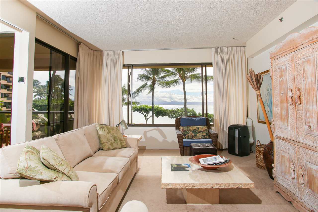 Fall Time period 9/17 to 11/16 (Fixed 60 days every year). Fractional Ownership at its Best! Oceanfront, 2 bedroom 2 bath with terrific views of the Islands of Molokai and Lanai from this 1st floor location. You get the West Maui Sunsets all year, the Humpback Whales in the winter, plus Sea Turtles, Surfing, Stand-up Paddling and they are all right in front of your condo!! Or better yet walk down a flight of stairs and drop into the Beach House Restaurant for a cool beverage for breakfast, lunch, or dinner. If you want to get some more exercise try one of the 3 Lighted Tennis Courts, or 2 Fitness Rooms, or try the large heated Swimming Pool. Also there is a fabulous separate Kids Pool. Amenities galore at this property….try and find a property with more at this price!! Quarterly Maintenance Fee's are $2,010.00 which include all expenses except capital improvements or non-budgeted items. Ask your Agent regarding the existing Master/Sandwich Lease that ends 6/30/2036 which is incorporated into the Quarterly Fee.