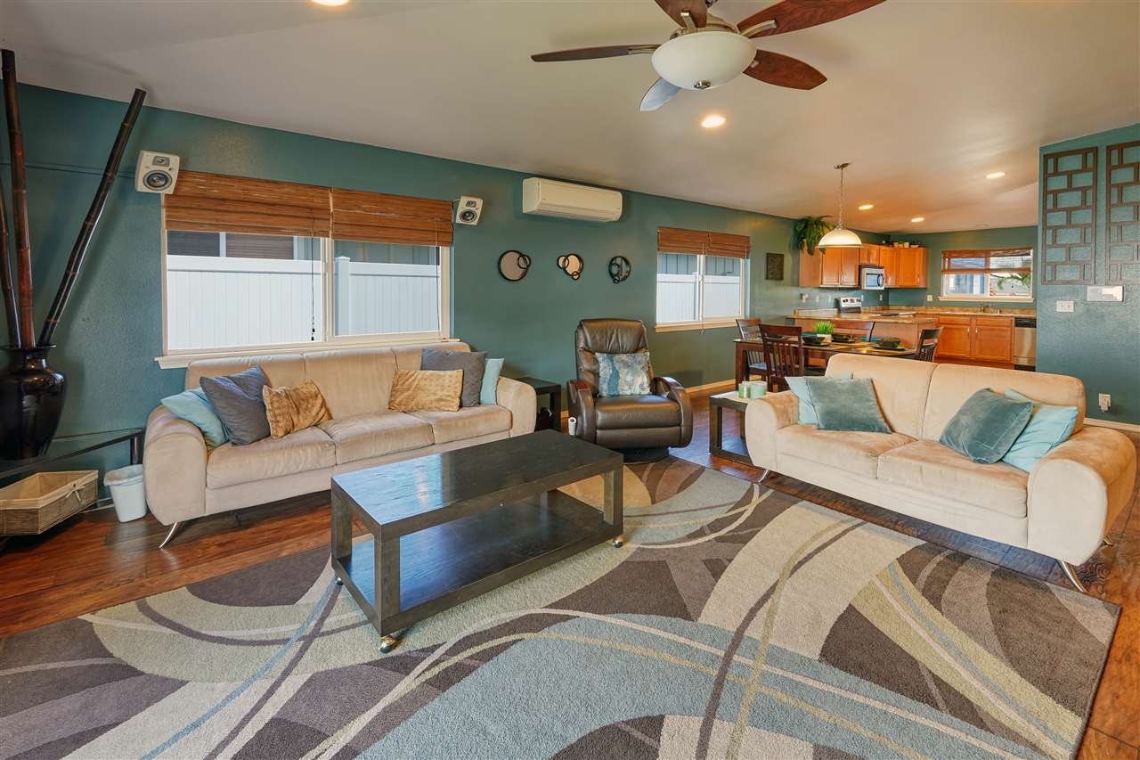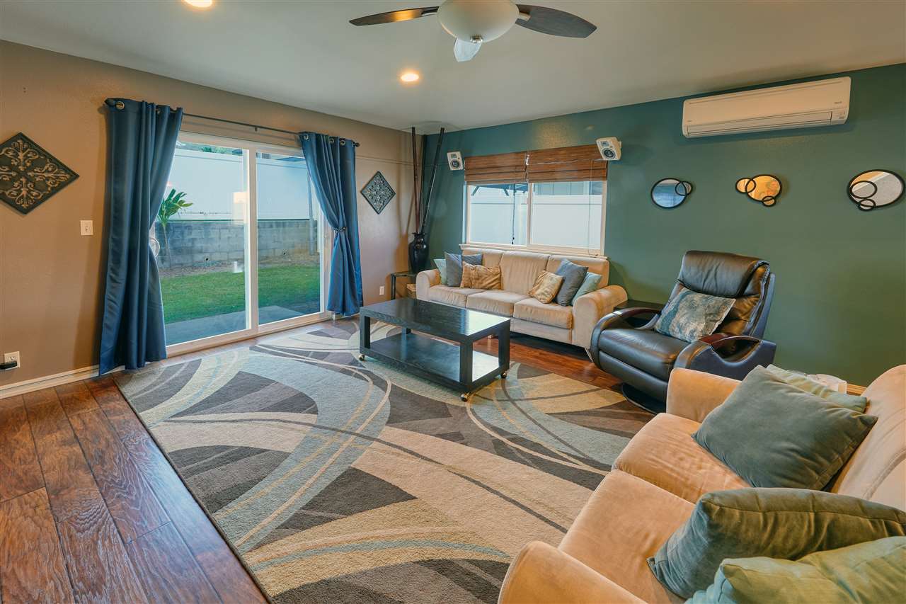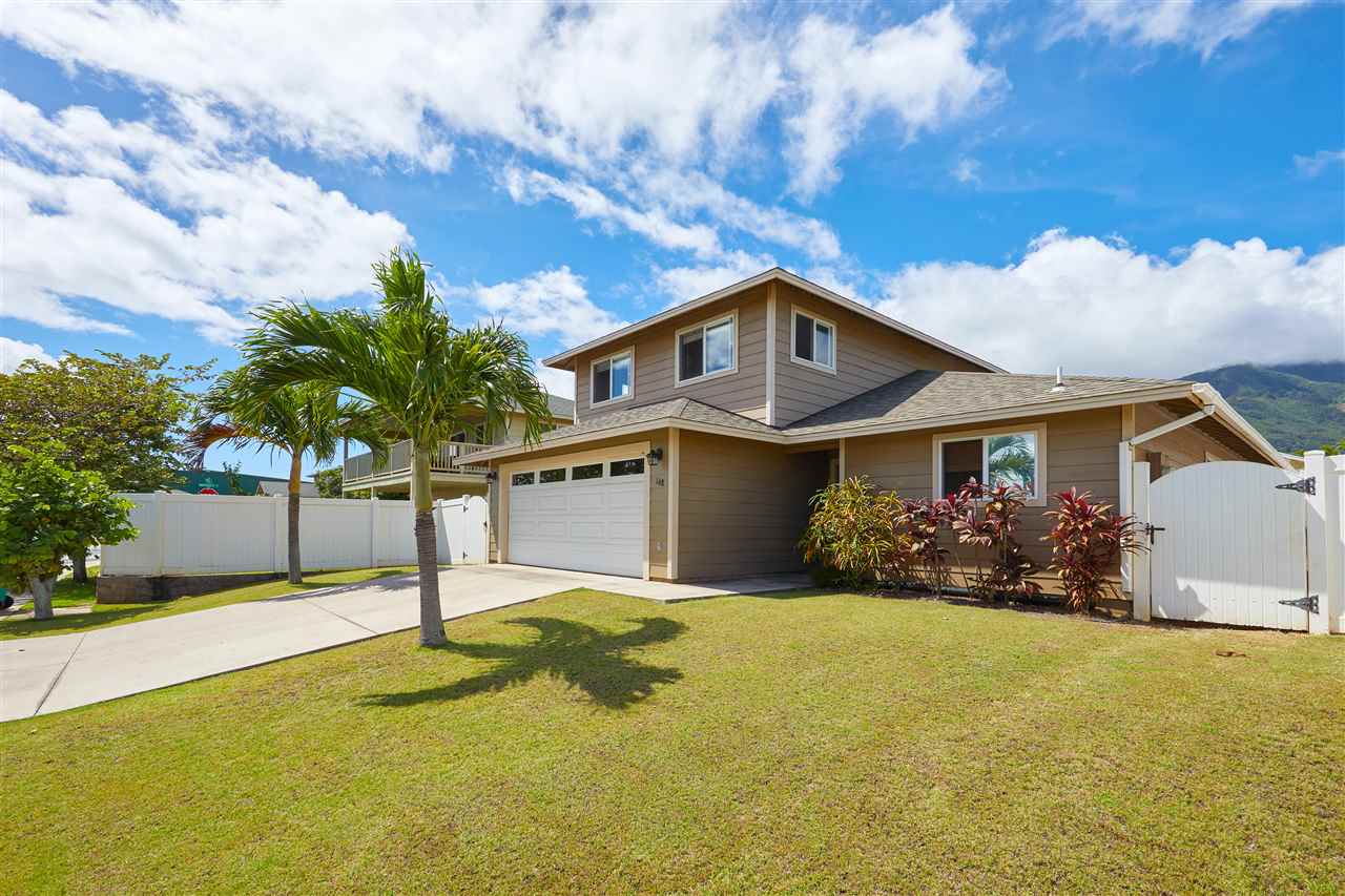 Wonderful value for this well cared for Wailuku Home! Spacious living area with the master bedroom on the first floor, central a/c upstairs with split system downstairs, bonus family room, wood laminate flooring and a great outdoor extended lanai area with pergola (included with sale) and a fully fenced yard. This home is move-in ready! Centrally located near schools, grocery stores and medical centers.