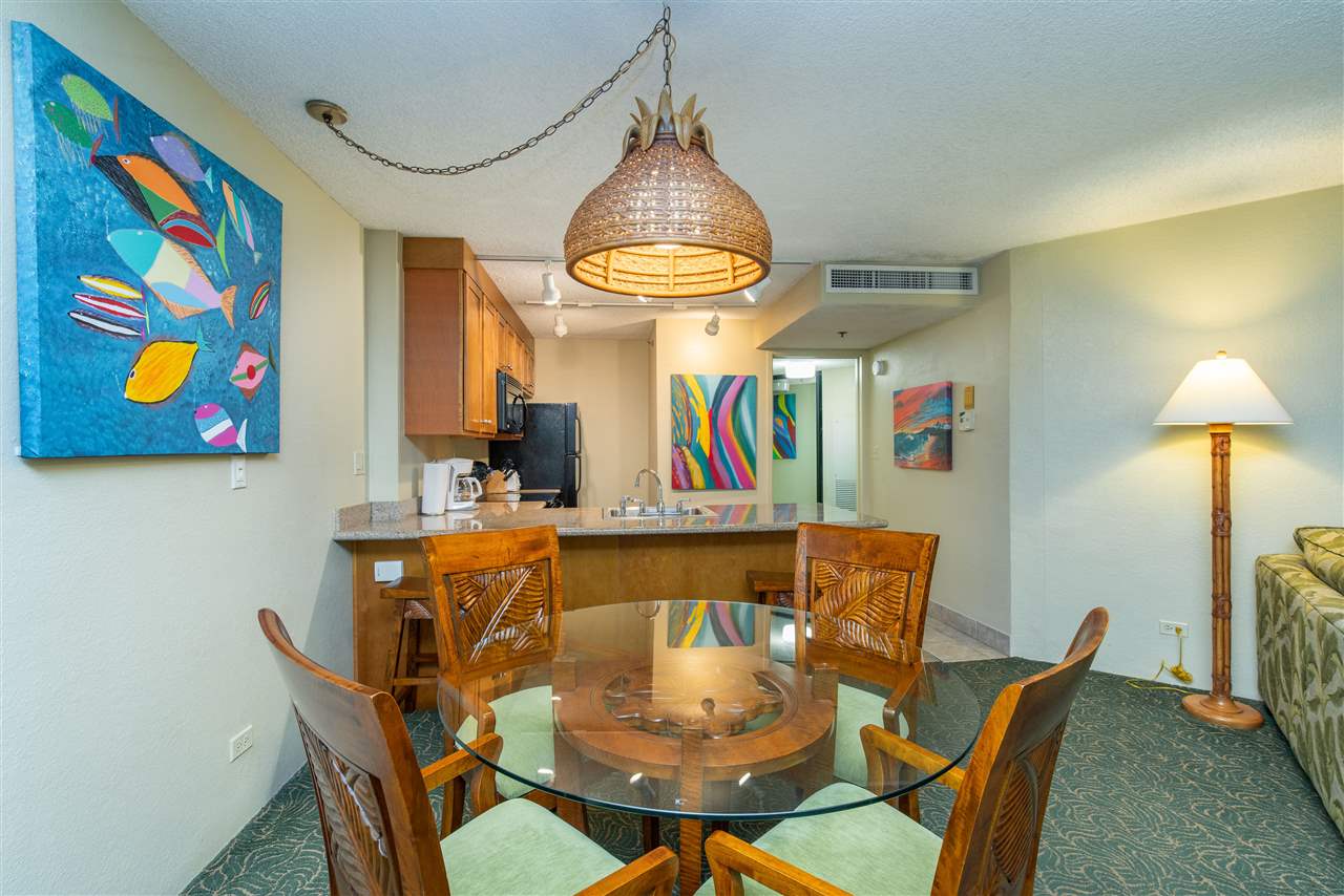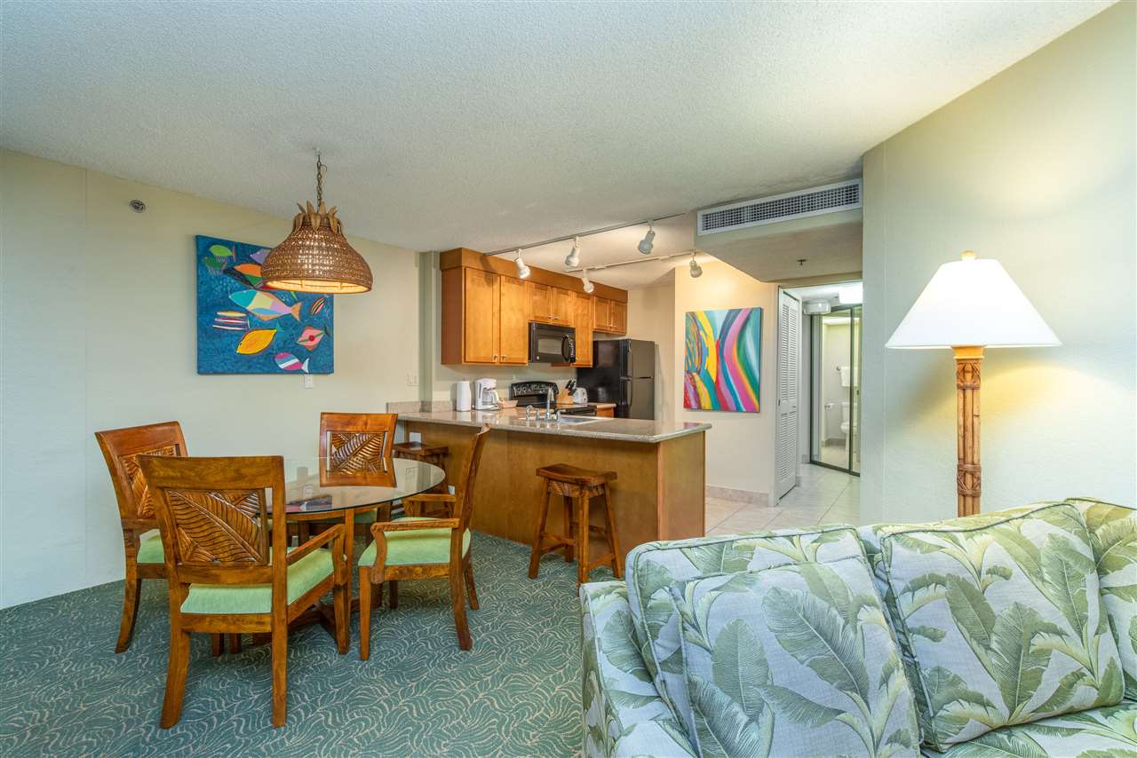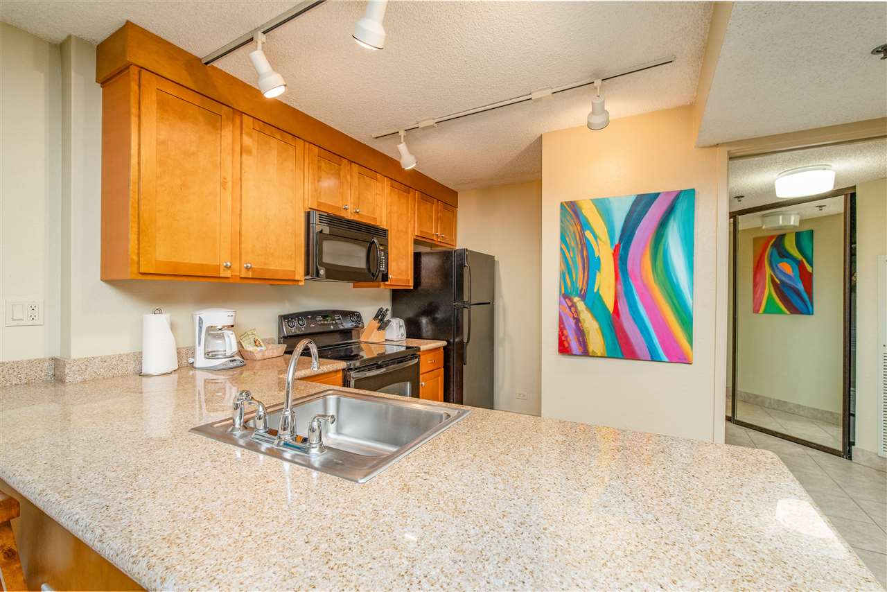 Kaanapali Shores 709, Outstanding ocean views within the courtyard location. Spacious C floor plan. Large kitchen boasts granite counter tops, custom cabinetry and all the comforts of home. If you are looking for incredible value on Maui's West Side, chose the Aston Kaanapali Shores Resort. This popular 10-acre condominium hotel boasts two swimming pools, two spa pools, saunas, fitness center, two tennis courts and a Pickle Ball Court. You can relax at the pool-side restaurant for breakfast, lunch or dinner. There are convenient gift shops, a food pantry store, and beauty salon located on the premises World class location with high vacation rental possibilities. Lay back and make Kaanapali Shores your Hawaiian getaway! This property has a history of high rental occupancy and income for the owners who want to participant in vacation rentals. Maintenance fees include all utilities, e.g electric (central A/C), water, sewer, trash, wi-fi access, cable TV. local phone service, storm, flood & general liability insurance. The maintenance fees also include a monthly contribution to the Capital Reserve Fund for major components of the building, e.g. roofs, painting, pools, spa and other amenities.