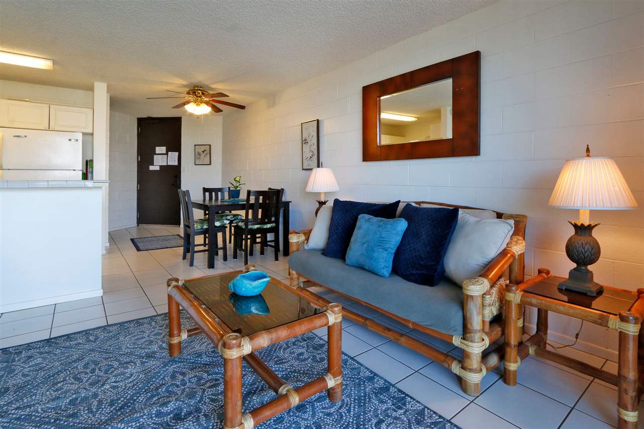 Views, Views, Views! Kauhale Makai Unit 312 is a third floor 2 bedroom, 2 bath condo with great ocean views. Features include an ocean front master bedroom suite, tile flooring throughout and is being offered fully furnished/turnkey. Kauhale Makai, also known as Village by the Sea, is a wonderful oceanfront complex located in Kihei. The large stretch of white sand beach and expansive grass area makes this complex an all time favorite with visitors. This is a short term rental building and maintenance fee includes electric, central AC and cable! Complex offers 2 elevators, pool, spa, BBQ grilling areas, volley ball, shuffle board and easy access to the white sand beach and park. Enjoy the local amenities right outside of your front door: tennis, paddle tennis, kayaking, kite boarding, paddle boarding, whale watching or just walking the beach! Close by and within walking distance to shopping, gym, banking, grocery, dining and more.