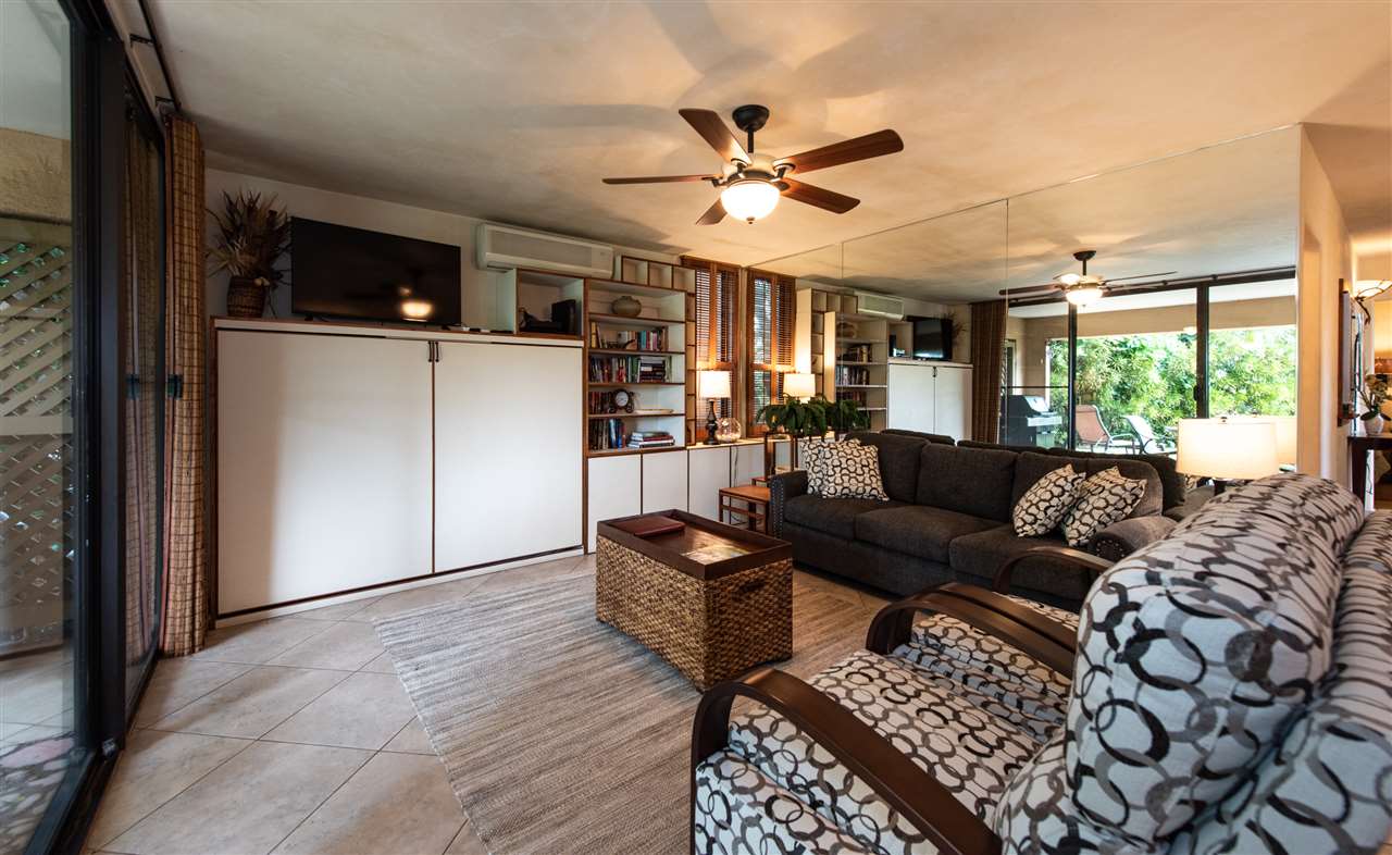 Beautifully updated 1 bedroom, 2 bath ground floor unit located in Wailea Ekahi. This unit was tastefully done with imperial plaster walls, tile throughout, bamboo closet doors, and plantation shutters. The open kitchen has granite counters and back splash, stainless steel appliances, wood cabinets with glass inlay, and crown molding. There is a Murphy bed in the living room for extra guests and it leads out to a tiled lanai area with a BBQ. The expanded master bedroom has its own private lanai. The master bathroom has a wood vanity with marble sink and granite counter, and a tiled shower with bench. The 2nd bathroom has a jetted tub and granite counter tops. This unit is turnkey and comes fully furnished. It has a large owner's storage closet that is perfect for all your beach gear including surfboards. Just a short stroll to the well-known Keawakapu Beach that is an excellent beach for swimming, snorkeling, and whale watching during the winter. Wailea Ekahi is a beachfront low-density property located at the entrance of the resort community of Wailea. Amenities include a beachfront pavilion with large pool, 3 additional swimming pool areas, BBQ, paddle tennis and shuffleboard courts, and tennis courts.