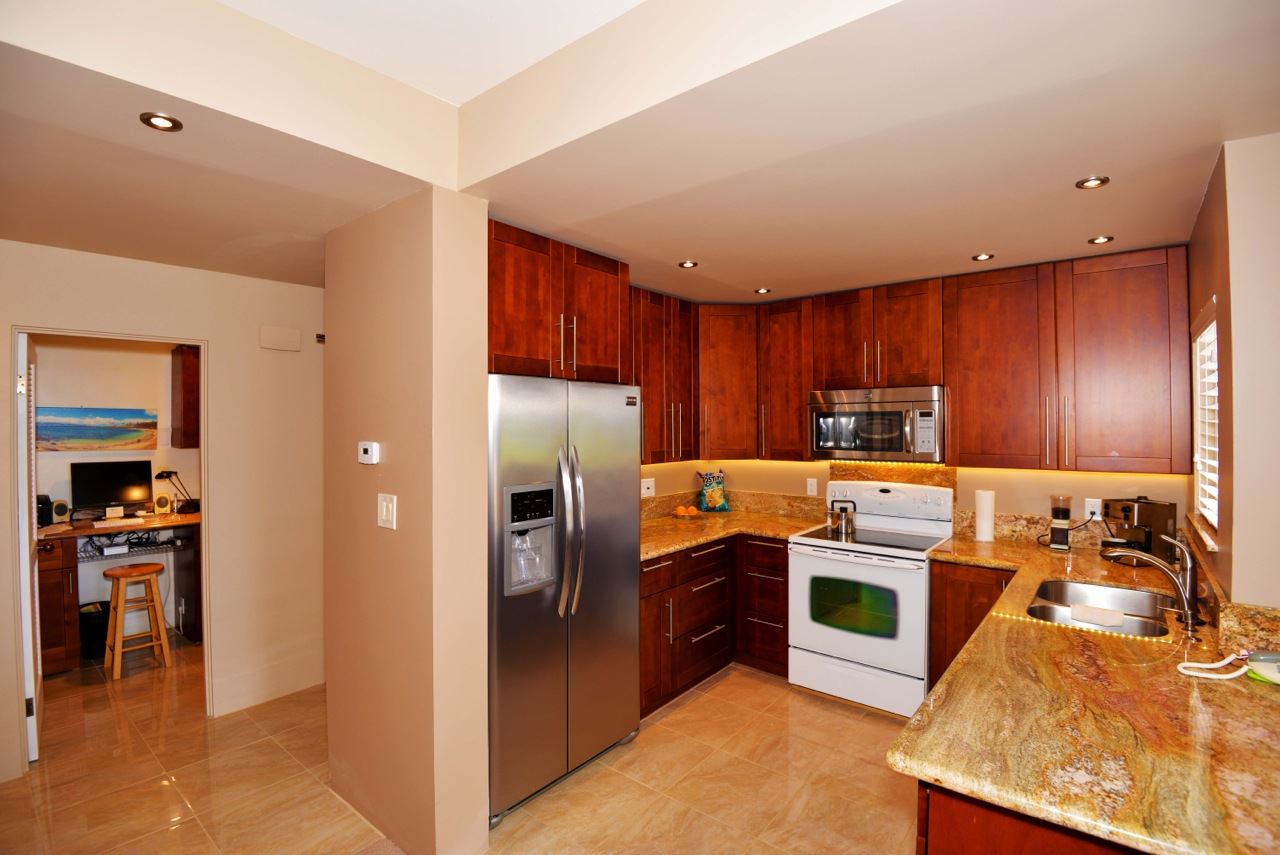 Enjoy this newly remodeled Golf Villa which features Crystal onyx flooring, soffit lighting, mesmerizing granite, and upscale finishes throughout every room. Unit 14T1,2 has two (2) separate entrances which offers rental options should you choose. Located on Kapalua Bay's Golf course, enjoy sweeping and dramatic views of the fairway, trees, ocean and island. Unit 141,2 is walking distance to Kapalua Bay, Napili Bay, The Bay Course, The Montage Residences, numerous walking trail and so much more. Owners and guests at Kapalua can take advantage of the free door to door shuttle anywhere within Kapalua, be it your favorite beach or restaurant. Property has been used as a private residence, but can be used as lucrative vacation rental. Easy to show with advance notice.
