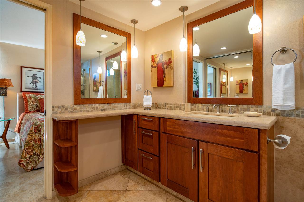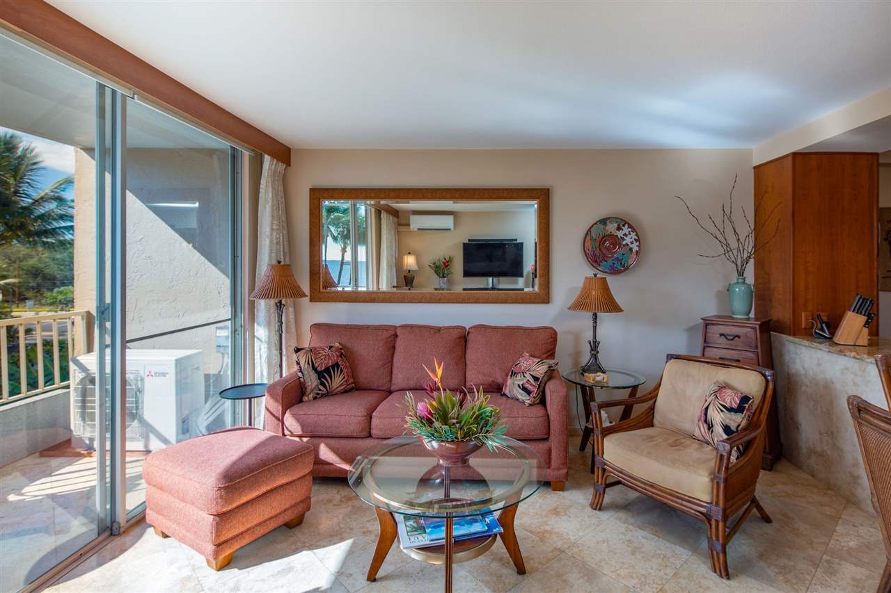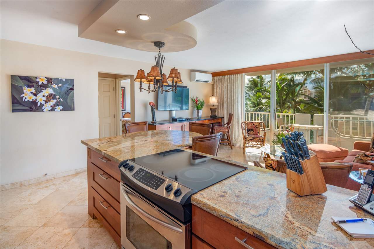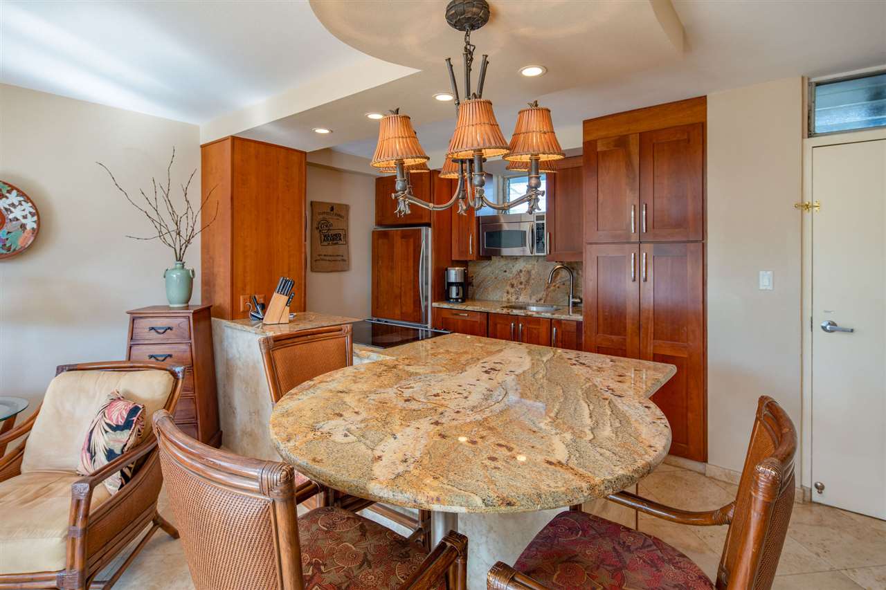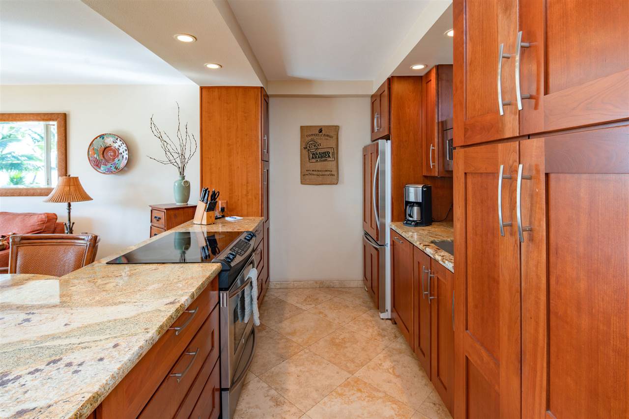 See why this professionally designed 1 bdrm, 2 bath condo with open floor plan, in the 8 stack at Nani Kai Hale, is the best on Sugar Beach! Hear and see the ocean from the living area, bedroom and private lanai. The interior floor plan was re-designed with timeless quality to maximize comfort, storage and style. Travertine tile, granite kitchen counters, 2 walk-in showers, a new dual zone ductless A/C system, tankless hot water heater, washer/dryer and much more. Attention to detail, quality fixtures & furnishings makes this your move in ready retirement dream or a superb rental property. Nani Kai Hale is a 46-unit oceanfront complex, well maintained including new exterior paint. The pool, ocean front BBQ and lawn area are great gathering places for family and friends. Central location makes access to the airport and all parts of Maui easy. Call to see this today!