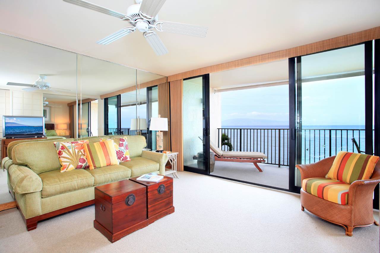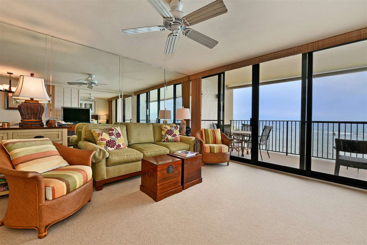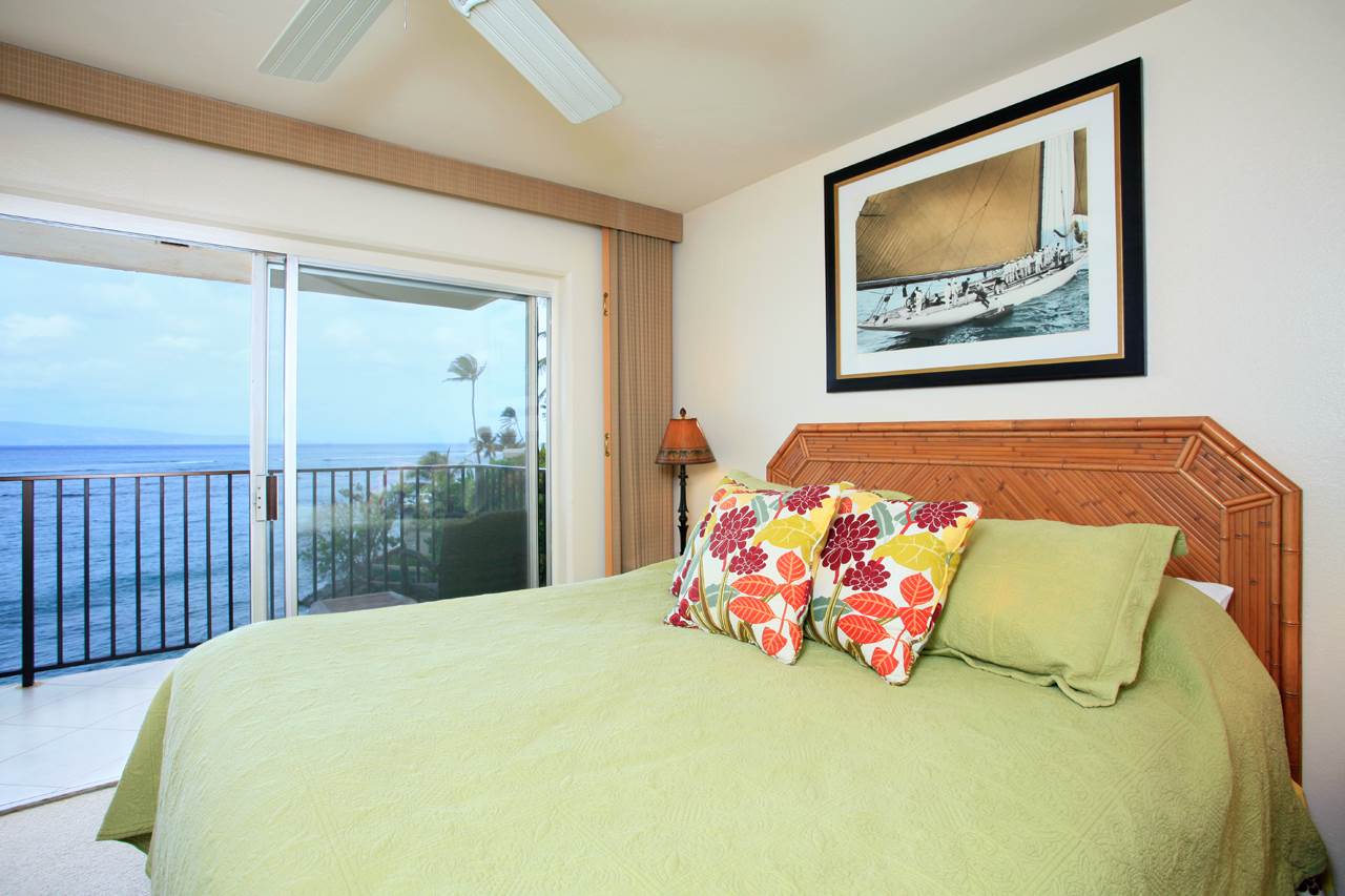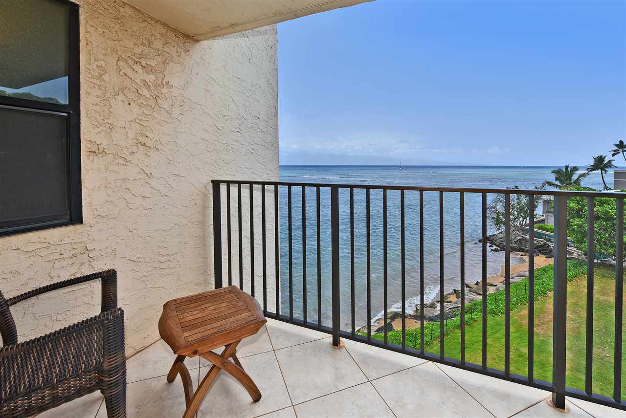 Ocean, ocean, ocean, that describes the views from every room in A404. Be sure to check out the 3D tour for A404 "House of Rainbows". Incredible oceanfront location, with two bedrooms, two bathrooms (with windows), two lanais, new sliding glass doors, highly upgraded interior, fully furnished. Sunset and ocean views from 2 lanais. As A404 is an end unit there are no guests walking past either lanai or bedroom. A404 is in a very busy vacation rental program with strong rental returns. This very private unit will be your oceanfront retreat and you will hear the soothing surf from both bedrooms. Both bathrooms have a window for additional sunlight and better ventilation. Trade wind breezes keep you refreshed year round. Underground parking, elevator, additional storage available only in 04 units. Pets allowed. Maintenance fees include electricity. Call you Realtor to view.