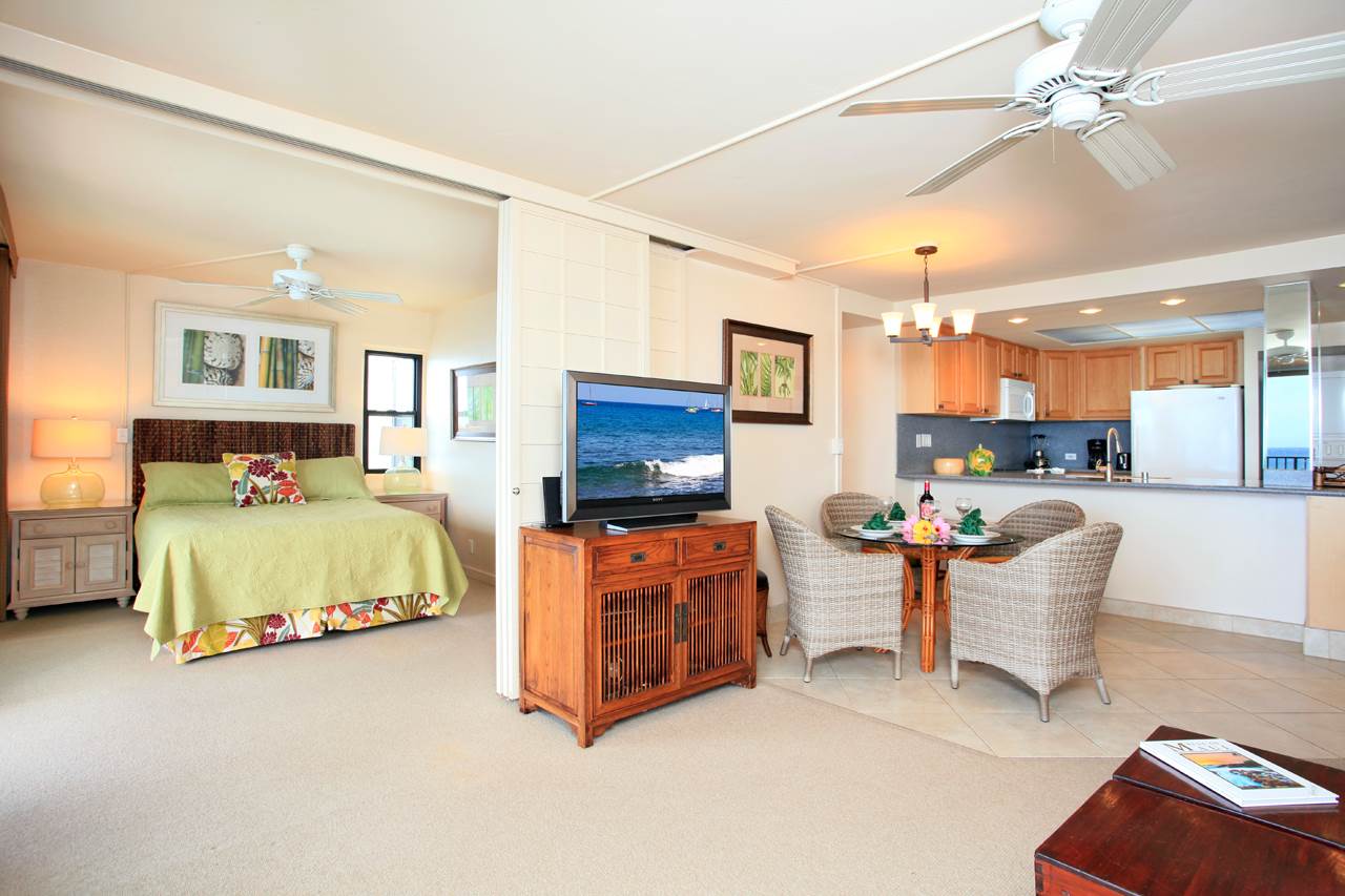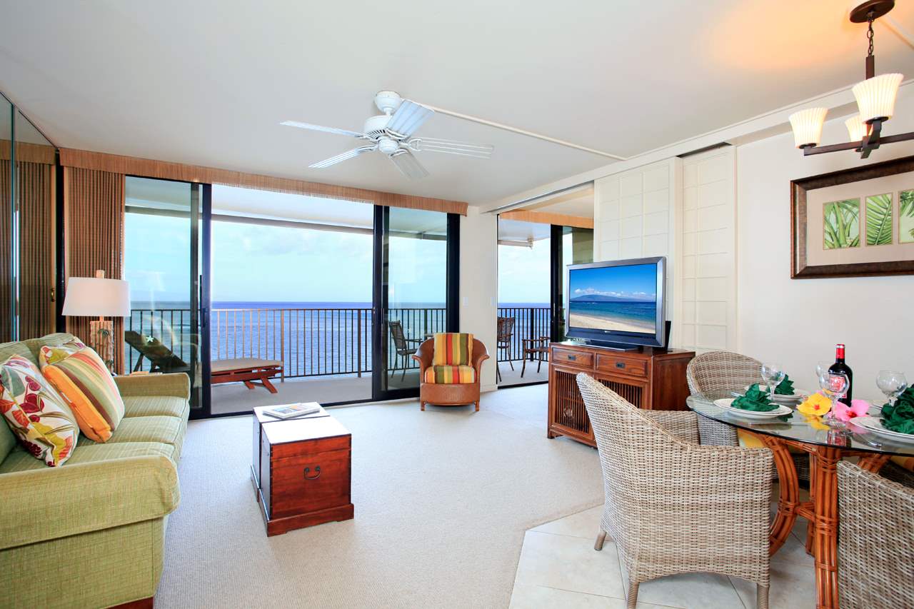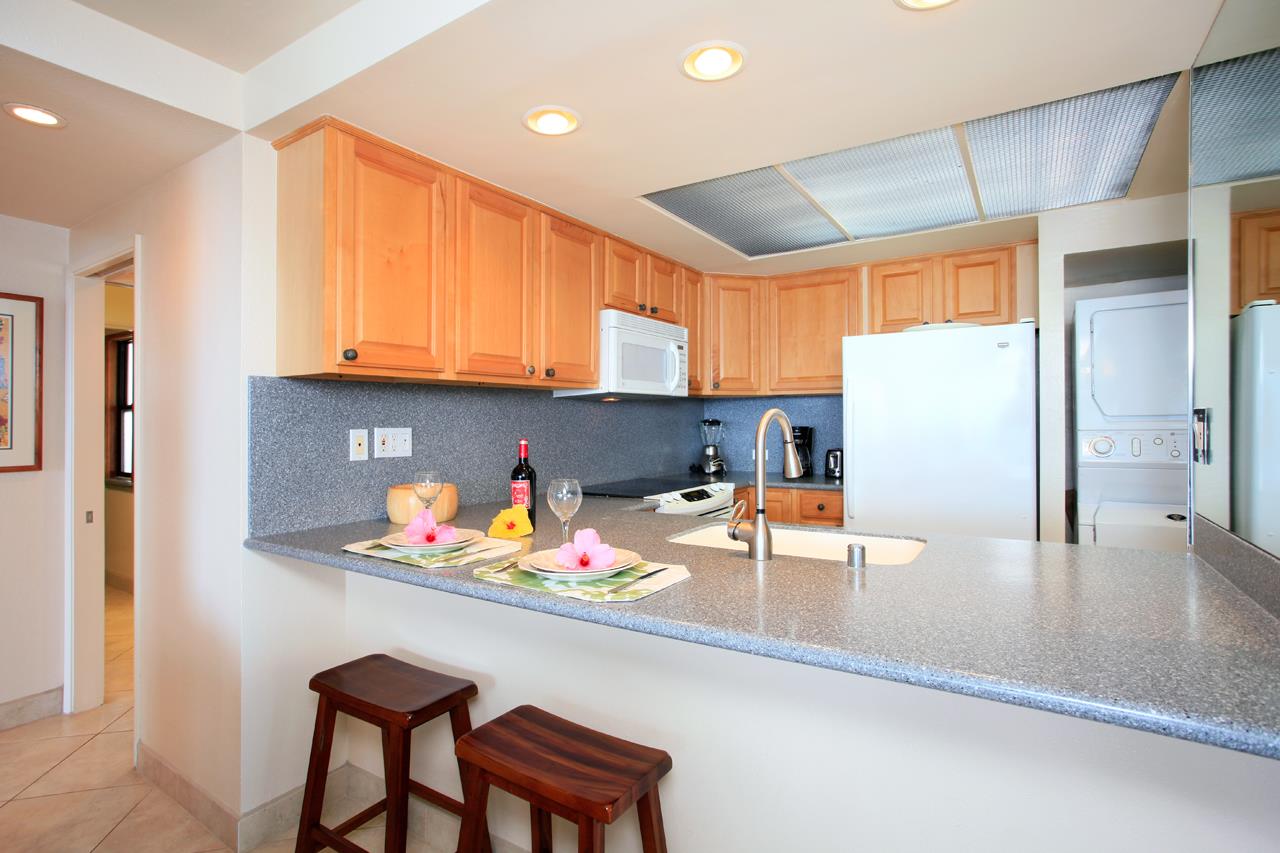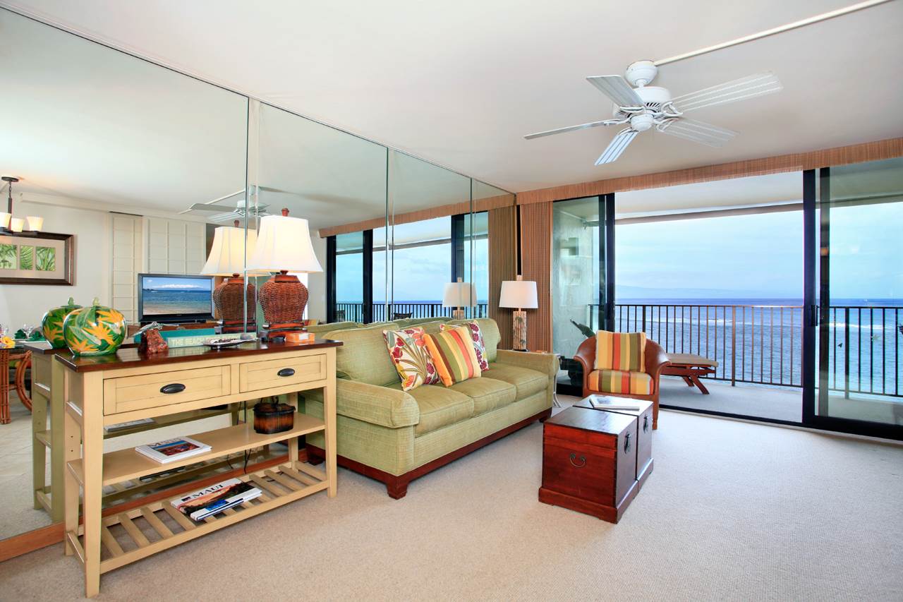 Ocean, ocean, ocean, that describes the views from every room in A404. Be sure to check out the 3D tour for A404 "House of Rainbows". Incredible oceanfront location, with two bedrooms, two bathrooms (with windows), two lanais, new sliding glass doors, highly upgraded interior, fully furnished. Sunset and ocean views from 2 lanais. As A404 is an end unit there are no guests walking past either lanai or bedroom. A404 is in a very busy vacation rental program with strong rental returns. This very private unit will be your oceanfront retreat and you will hear the soothing surf from both bedrooms. Both bathrooms have a window for additional sunlight and better ventilation. Trade wind breezes keep you refreshed year round. Underground parking, elevator, additional storage available only in 04 units. Pets allowed. Maintenance fees include electricity. Call you Realtor to view.