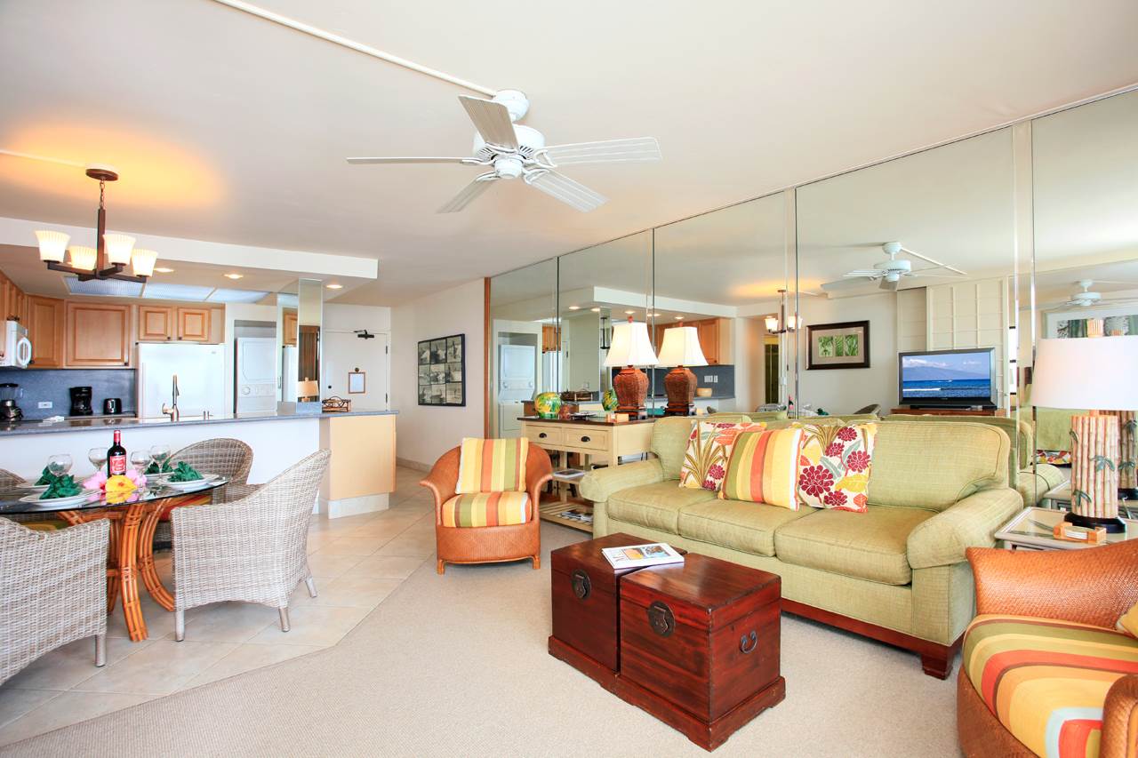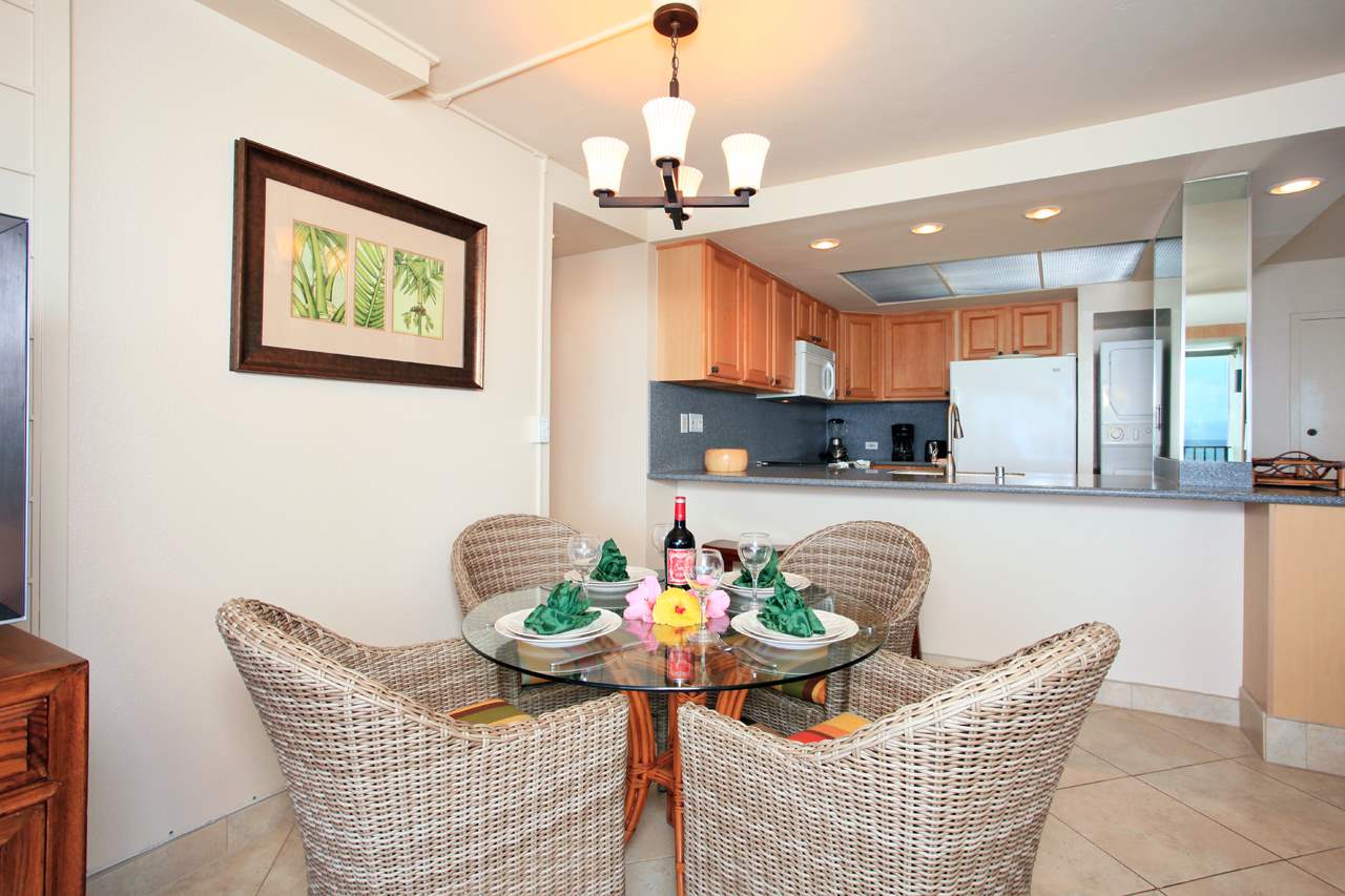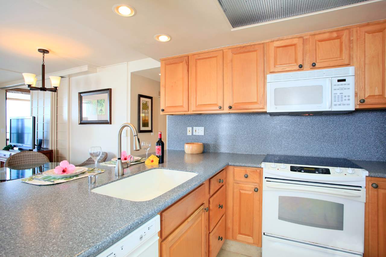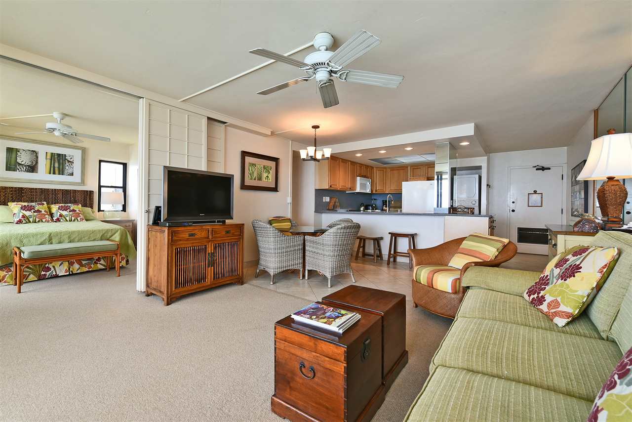 Ocean, ocean, ocean, that describes the views from every room in A404. Be sure to check out the 3D tour for A404 "House of Rainbows". Incredible oceanfront location, with two bedrooms, two bathrooms (with windows), two lanais, new sliding glass doors, highly upgraded interior, fully furnished. Sunset and ocean views from 2 lanais. As A404 is an end unit there are no guests walking past either lanai or bedroom. A404 is in a very busy vacation rental program with strong rental returns. This very private unit will be your oceanfront retreat and you will hear the soothing surf from both bedrooms. Both bathrooms have a window for additional sunlight and better ventilation. Trade wind breezes keep you refreshed year round. Underground parking, elevator, additional storage available only in 04 units. Pets allowed. Maintenance fees include electricity. Call you Realtor to view.