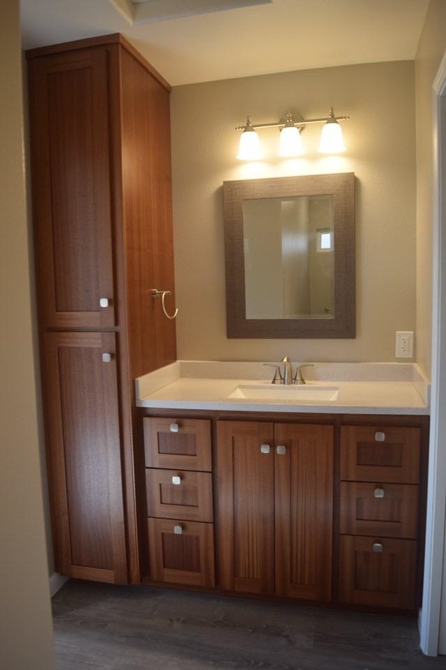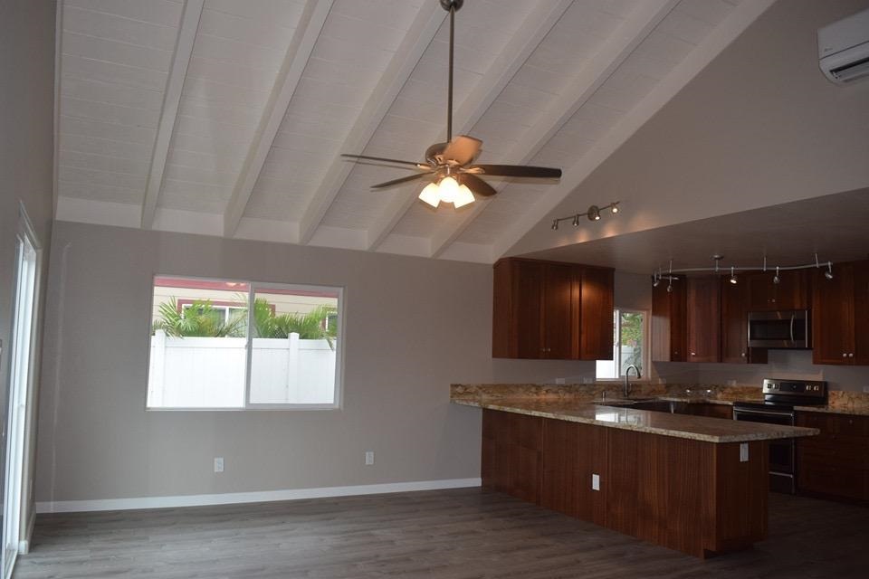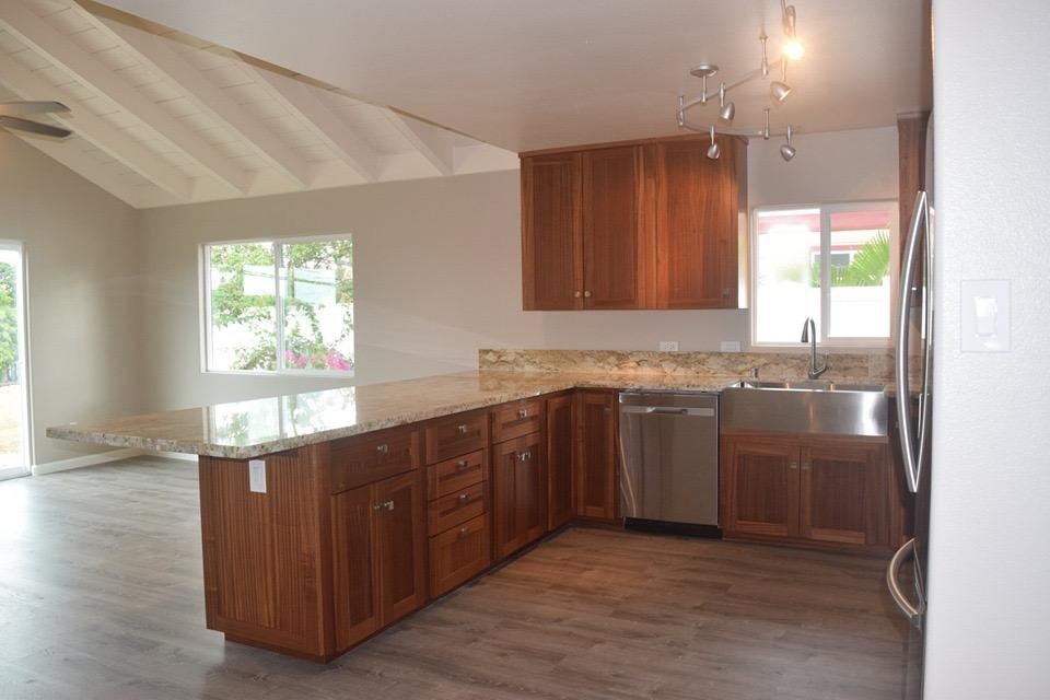 A rare opportunity to acquire a brand new construction 3 bedroom/2.5 bathroom home in a low traffic established neighborhood. Amenities abound in this custom home. The open and spacious living area is crowned by a 16' wood beamed vaulted ceiling. The same high vaulted ceiling continues into the extra large master suite that comes complete with two separate closets, one being a large walk-in. The spacious master bath features two separate vanities, private toilet room, and a walk-in shower. The locally built custom Sapele wood kitchen cabinets with granite counters is a real crowd pleaser.