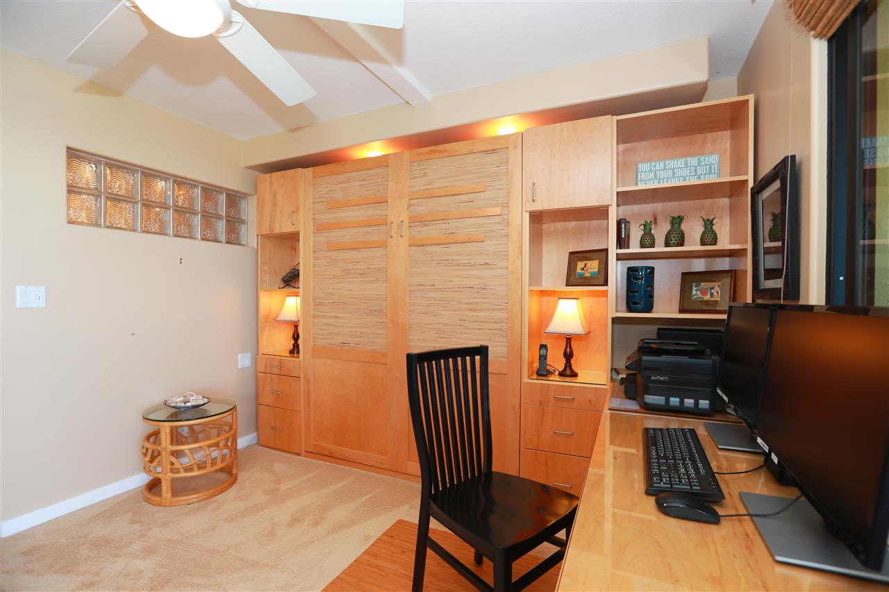 One of the best highly customized units at Hololani, with stunning views of the ocean and the island of Molokai. Fleetwood lanai doors, sun screens, black out drape and TV sets were installed in 2013. In 2015 the condo was improved by a custom made Murphy bed with desk, new carpet and padding, new blinds and memory foam mattress. New appliance package was purchased in Nov 2019. Hololani is a low density development located on Kahana Bay, approximately half way between Kaanapali and Kapalua and in short distance to a variety of small restaurants and shops. Please note the fresh look for Hololani, with new paint color scheme for the exterior, remodeled pool and beautiful ocean frontage. Hololani is one of the very few properties that offers garage parking and stall #33, that is assigned to unit A503, allows for two cars to be parked in tandem. Hololani is a pet friendly property. All utilities ( electricity, water, trash pick up, cable TV and internet) and common grounds maintenance are included in the maintenance fee.