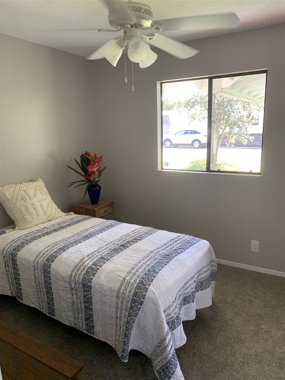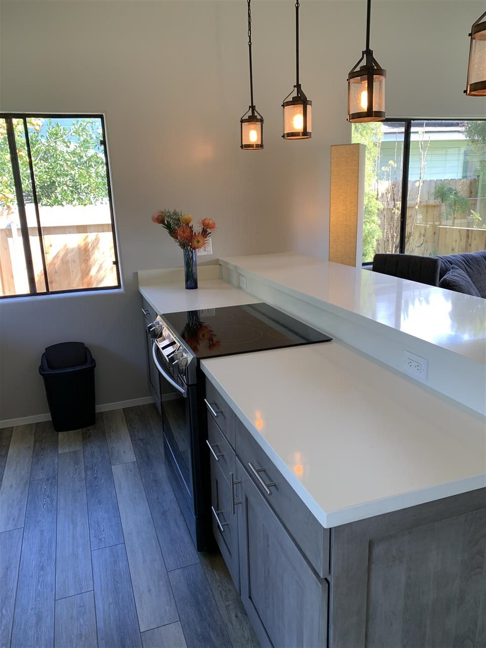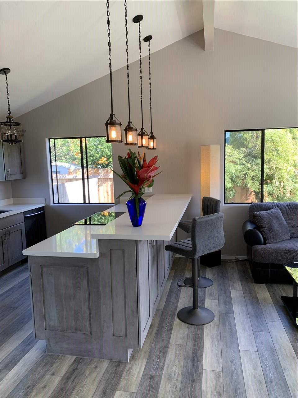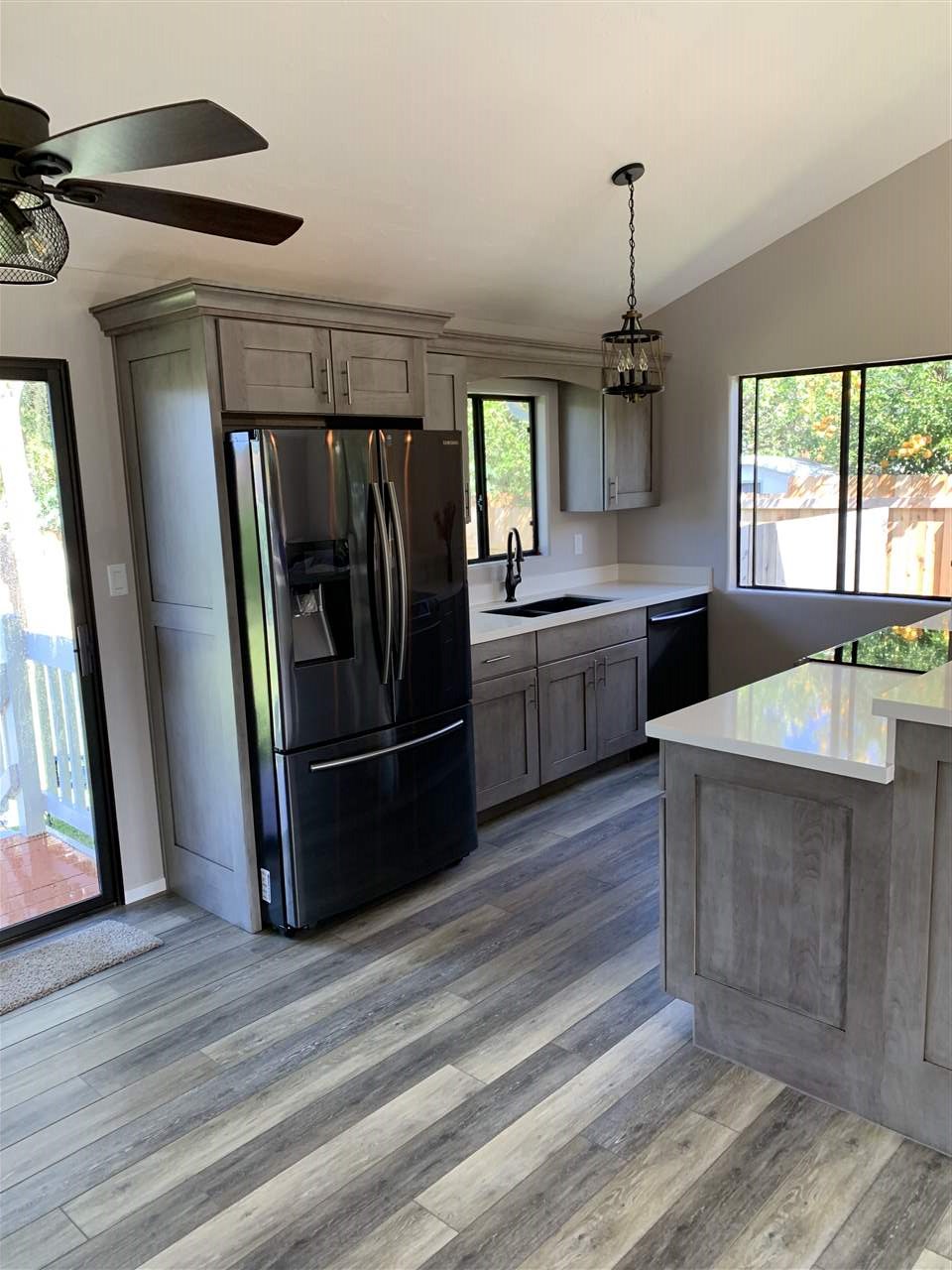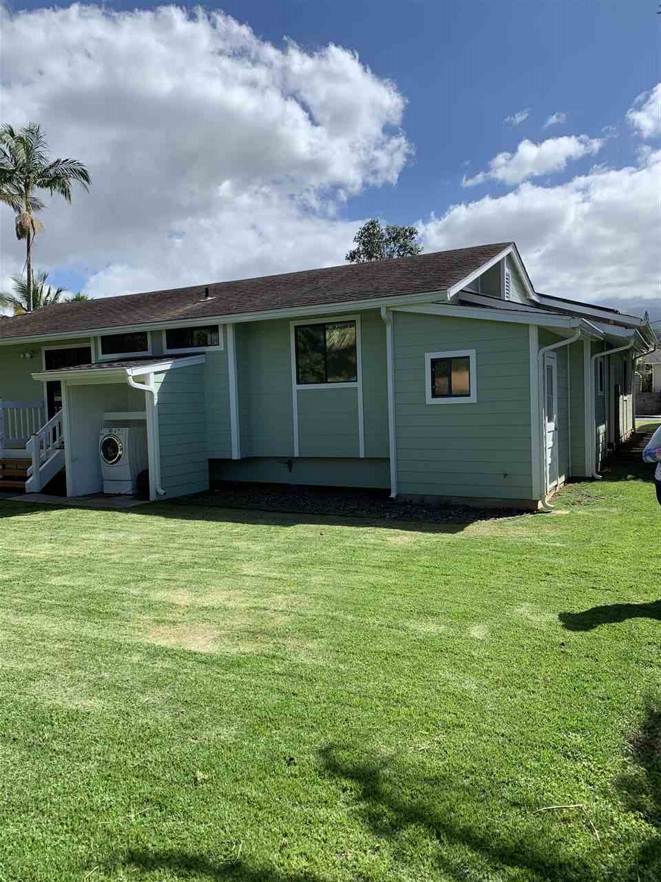 Live Upcountry! This beautifully renovated 3 bdrm. 2.5 bath home is in a great location. This home is VERY clean and has just had a new roof installed. Enjoy beautiful upcountry weather with easy walking distance to all the shops and restaurants in Makawao. The vaulted ceiling creates a spacious feel in the kitchen, dining, and living room. The new flooring in the common area is weathered wood look vinyl. The kitchen boasts solid wood cabinets with soft close drawers, Corian countertops, and all new Samsung appliances include refrigerator with low drawer freezer, dishwasher, and a glass top 5 burner range with oven. The master bedroom has an ensuite full bathroom, with ceiling fans and recessed lighting throughout the home, and comfy new carpet in the bedrooms and hallway. The 2 car garage has a large sq footage loft for plenty of storage in addition to the storage room off the back corner of the home. There is also a solar water system. The back yard is fully fenced with lots of privacy that allows for outdoor entertaining.